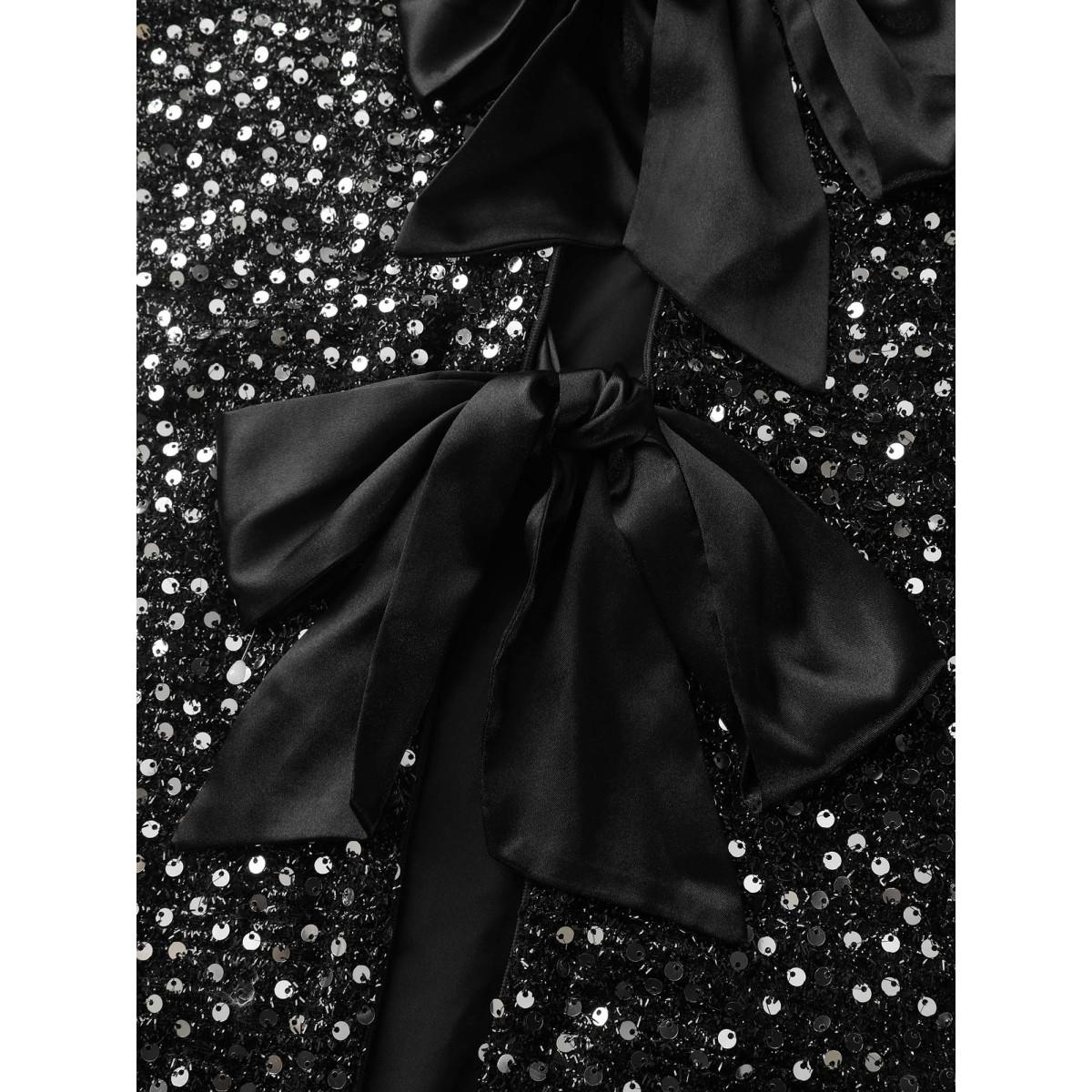 Plus Size Sequin Bowtie Cropped Coat Women Black Party&Cocktail Tie knot Ladies Party Winter Coats BloomChic 30/6X Product Image