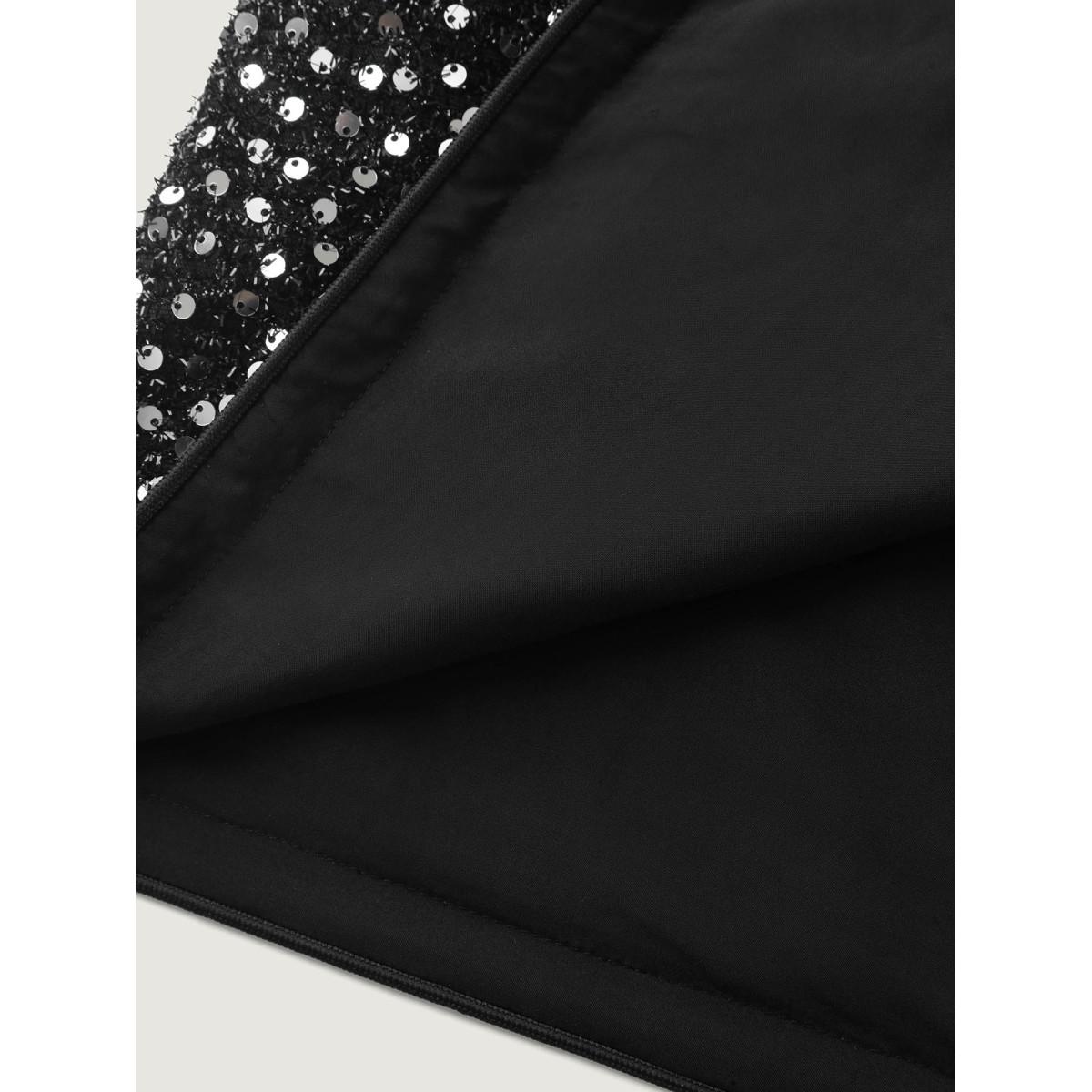 Plus Size Plain Sequin Button Through Plicated Detail Coat Women Black Casual Sequin Ladies Dailywear Winter Coats BloomChic 26/4X