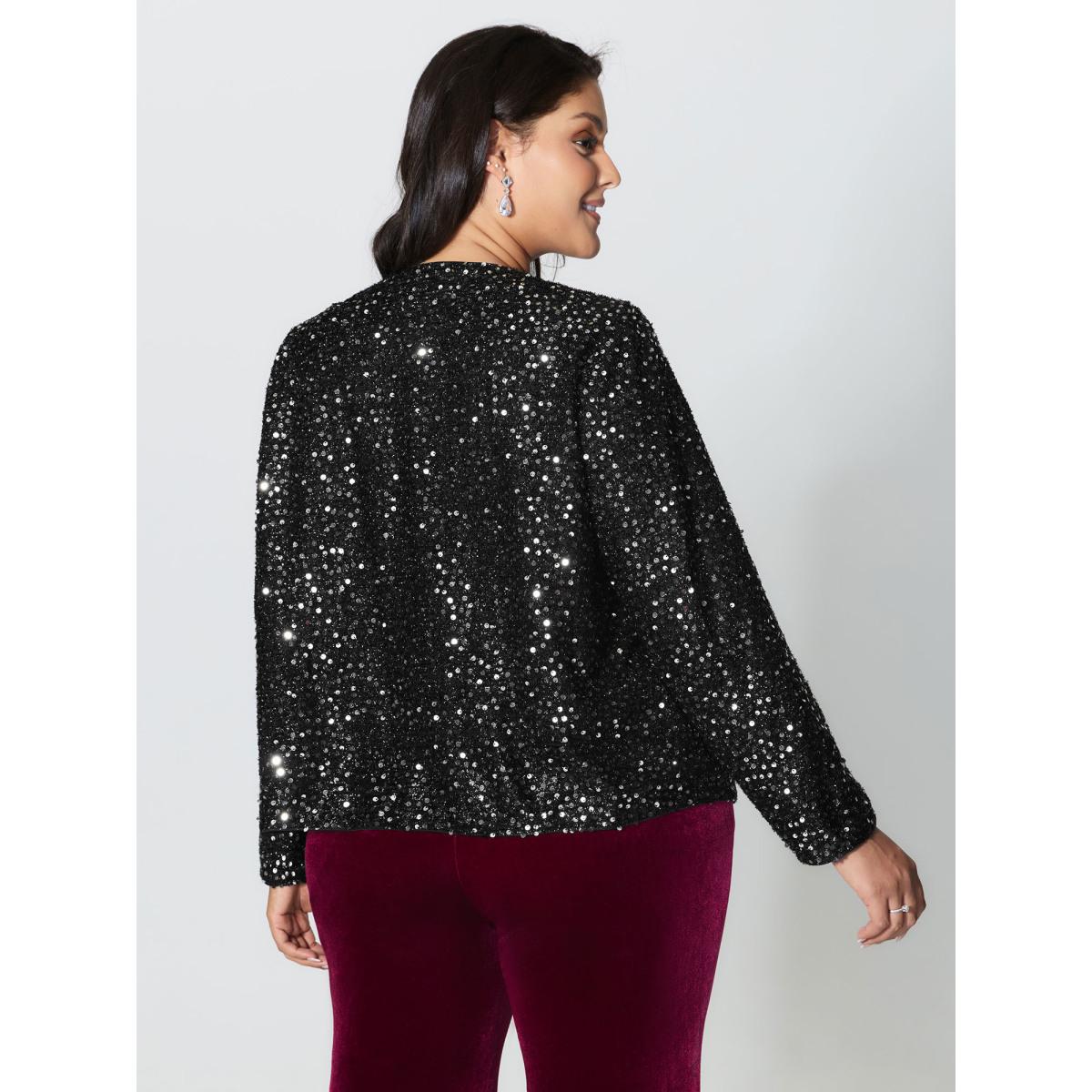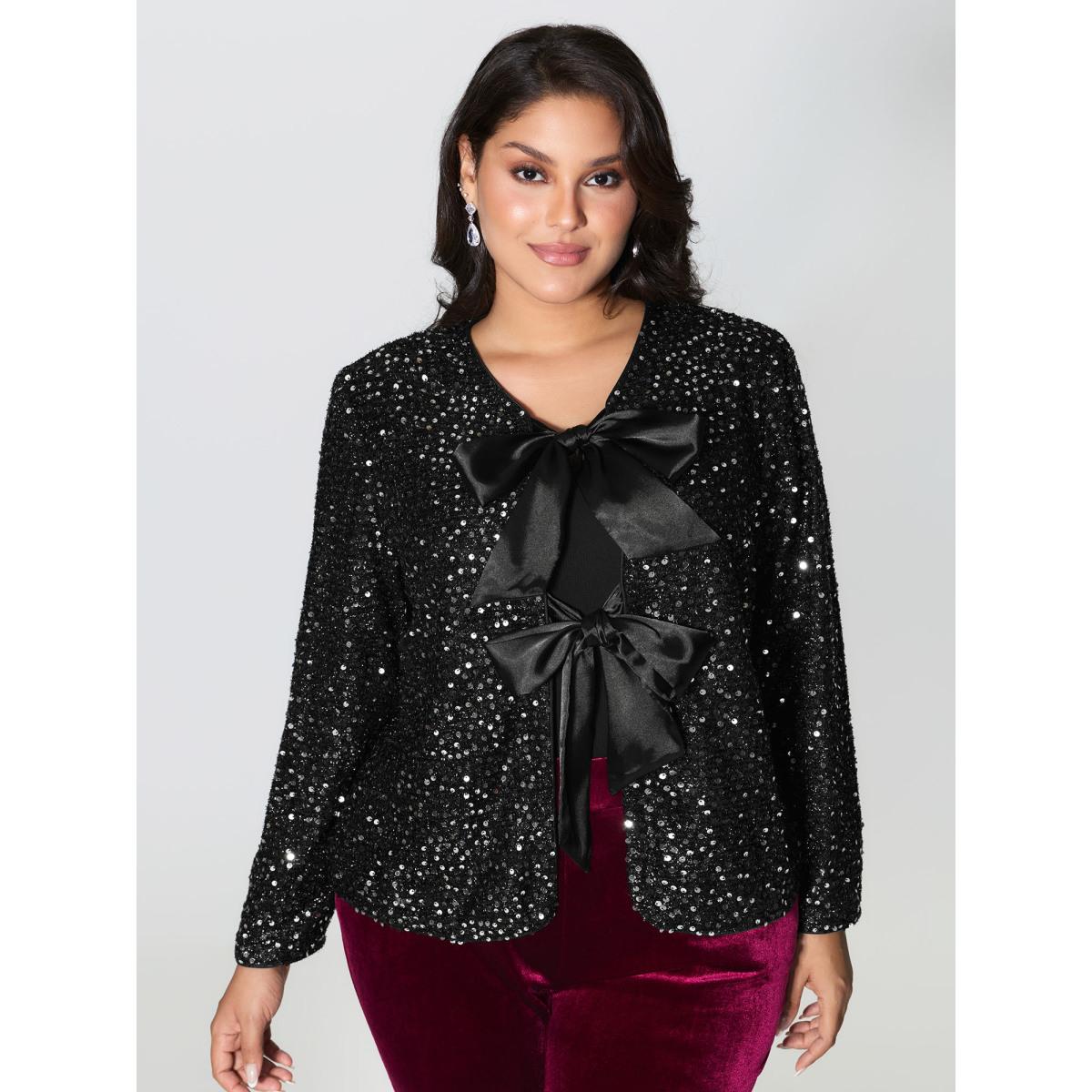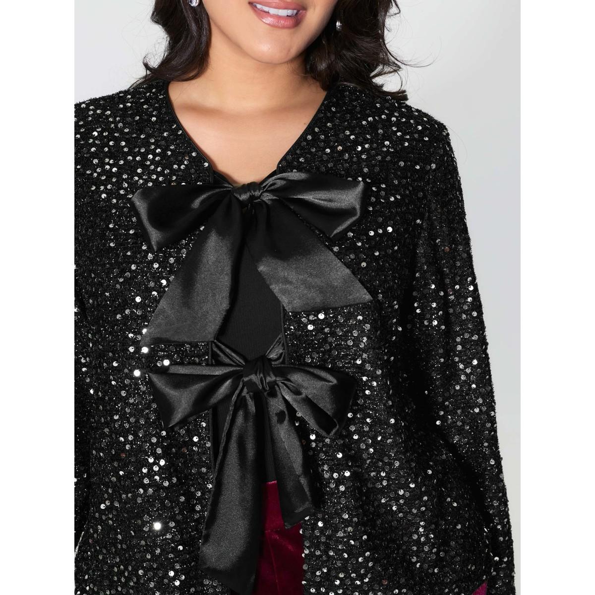 Plus Size Sequin Bowtie Cropped Coat Women Black Party&Cocktail Tie knot Ladies Party Winter Coats BloomChic 30/6X