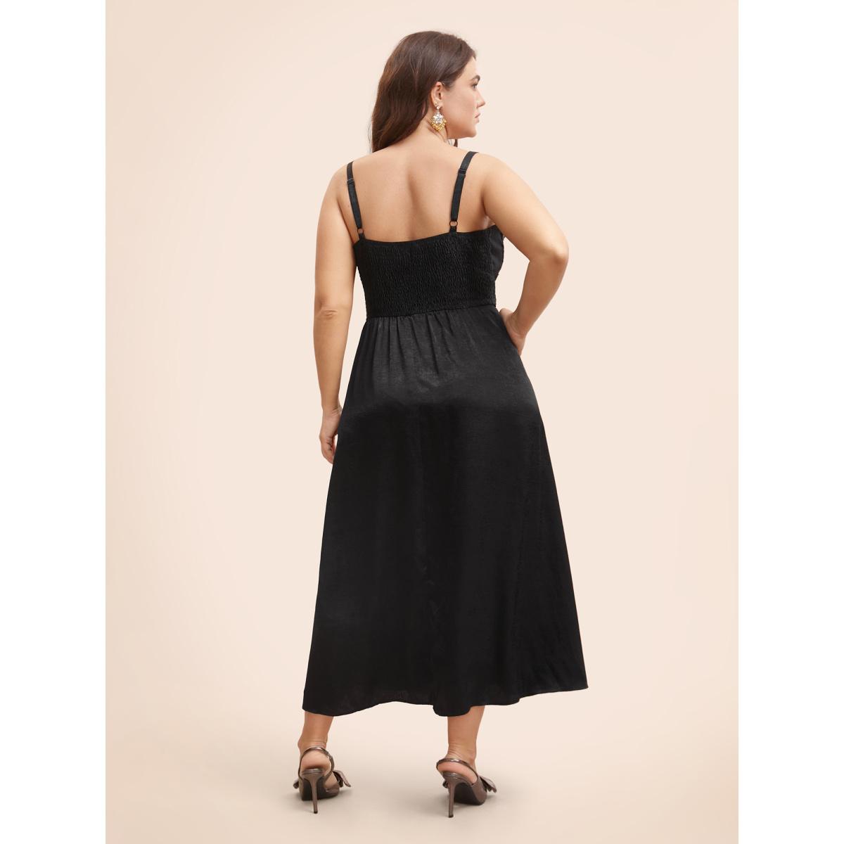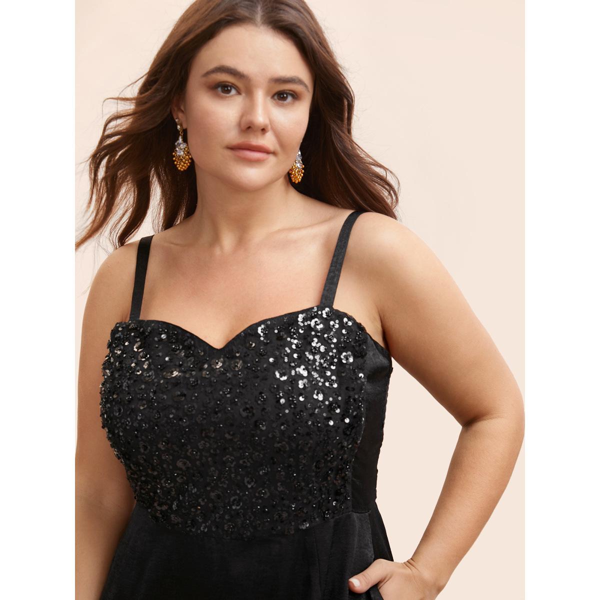 Plus Size Sequin Patchwork Split Hem Cami Dress Black Women Cocktail Texture Heart neckline Sleeveless Curvy BloomChic 14-16/1X