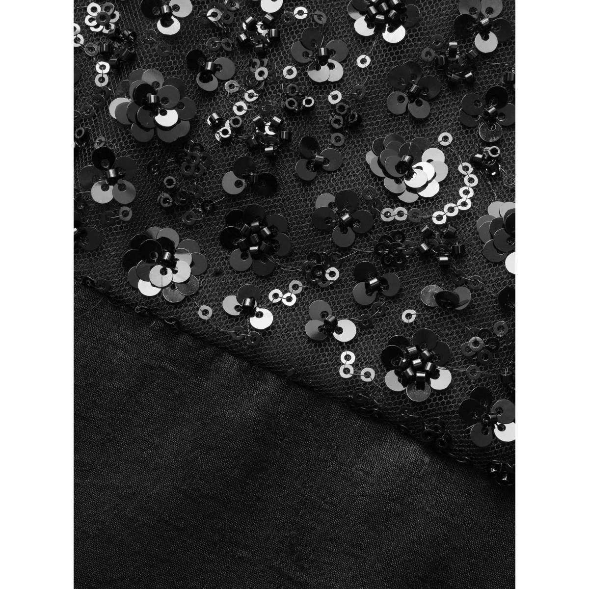 Plus Size Sequin Patchwork Split Hem Cami Dress Black Women Cocktail Texture Heart neckline Sleeveless Curvy BloomChic 14-16/1X Product Image