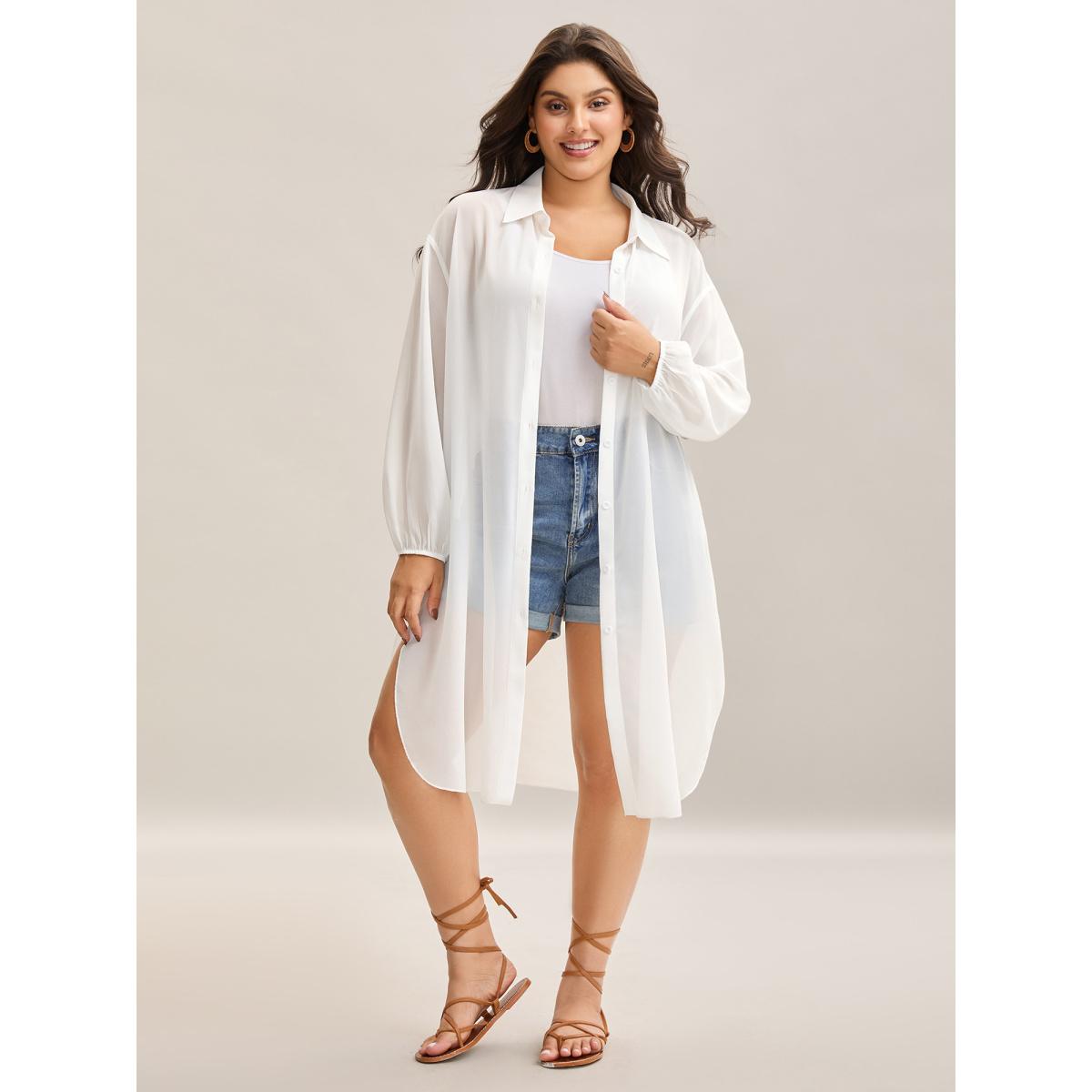 Plus Size Sheer Long Shirt Kimono-Style Cardigan Women WhiteSmoke Resort See through Loose Vacation Kimonos BloomChic 18-20/2X