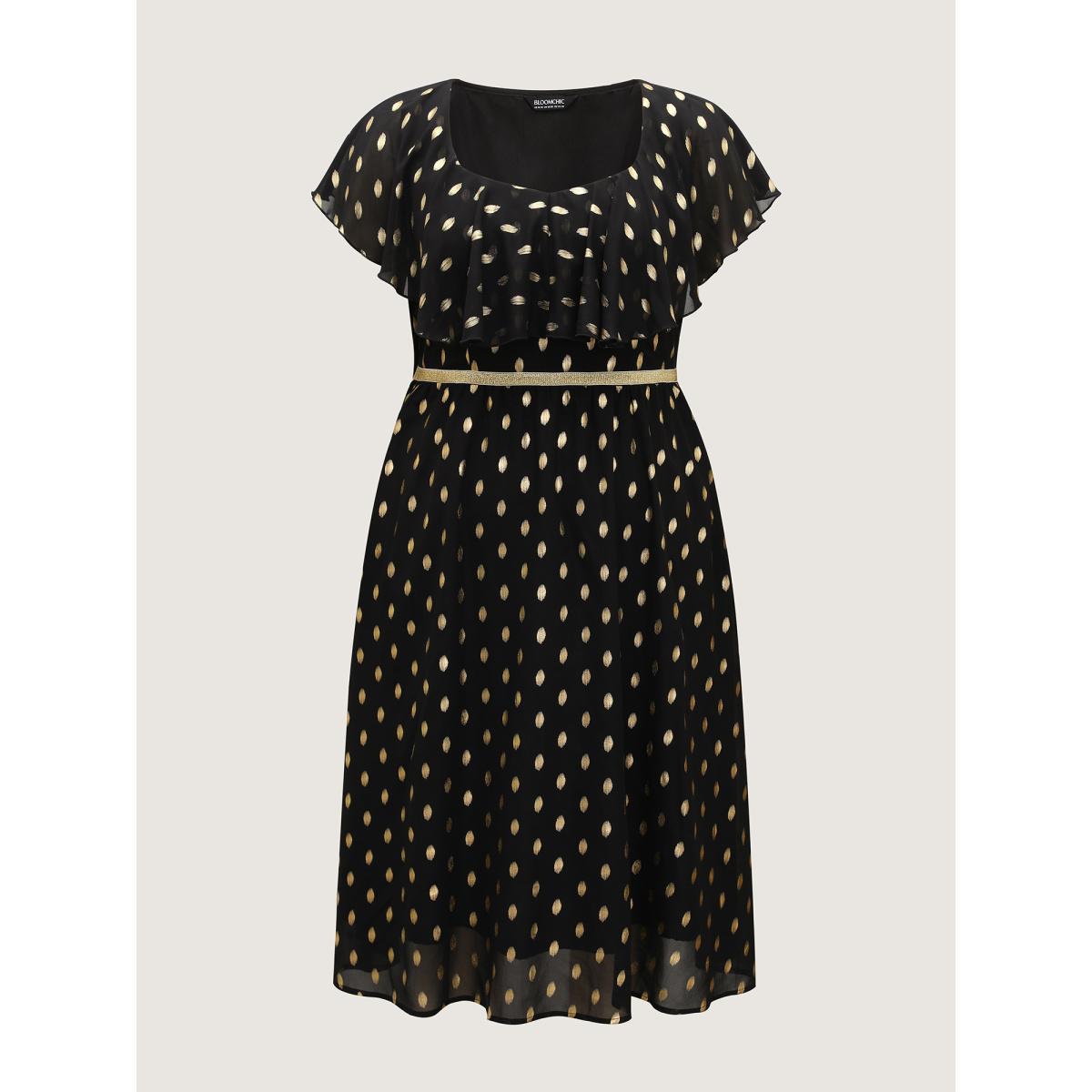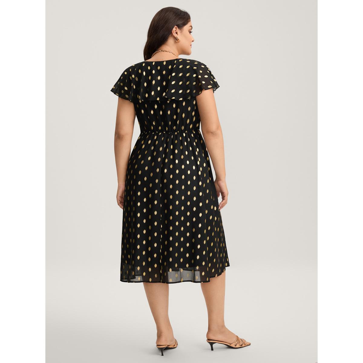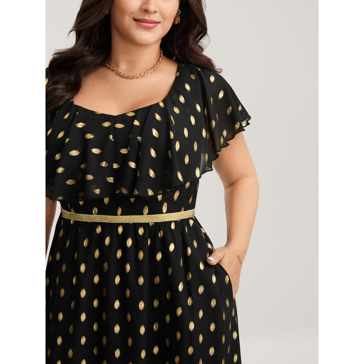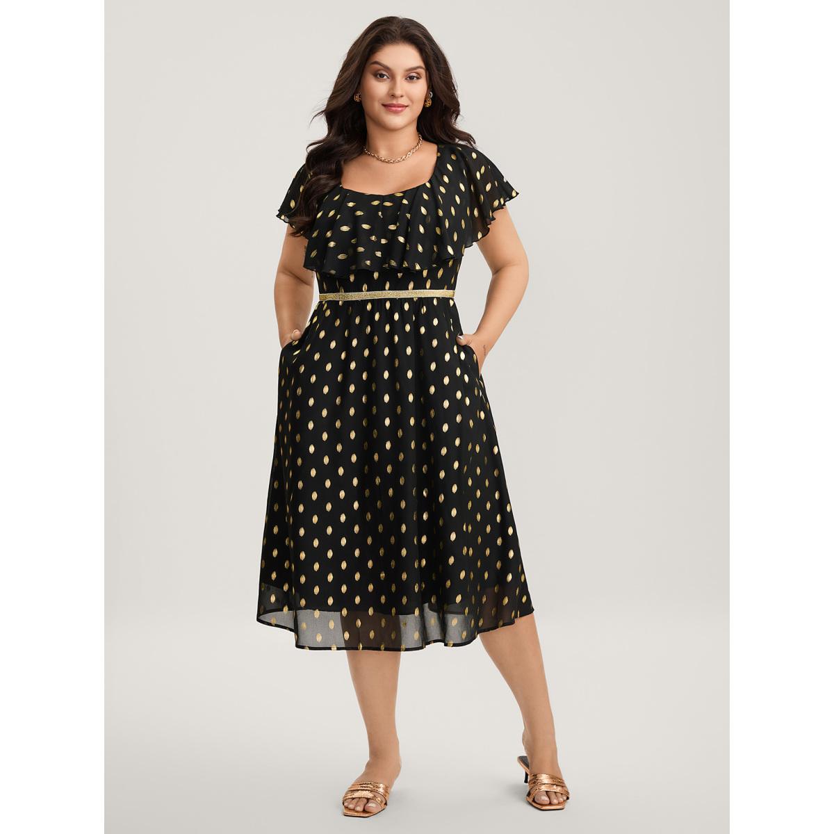 Plus Size Shimmery Polka Dot Stretchy Waist Midi Dress BlackFlower Women Party Curvy Bloomchic 14-16/1X