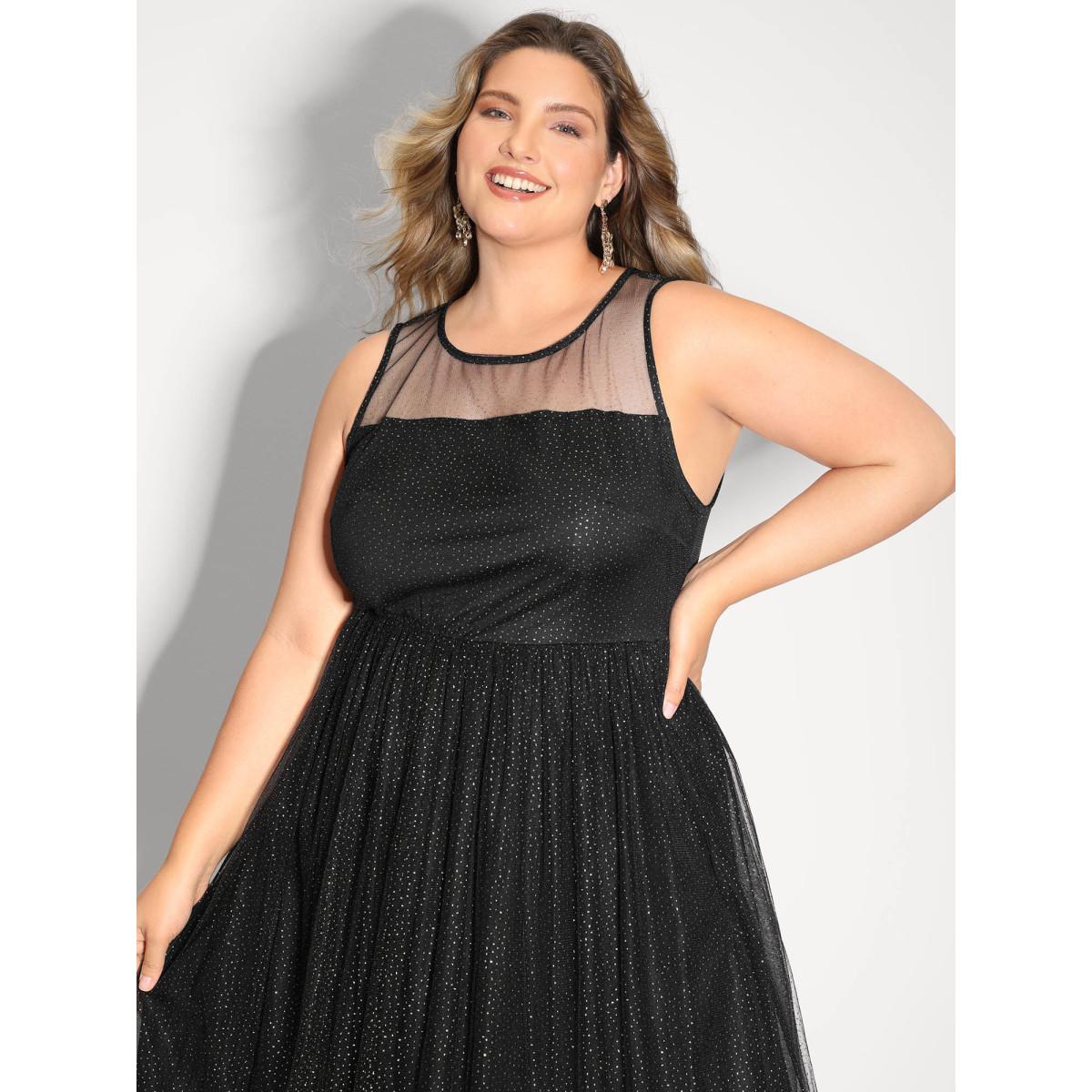 Plus Size Round Neck Sequin Mesh Tank Dress Black Women Cocktail Texture Round Neck Sleeveless Curvy BloomChic 18-20/2X