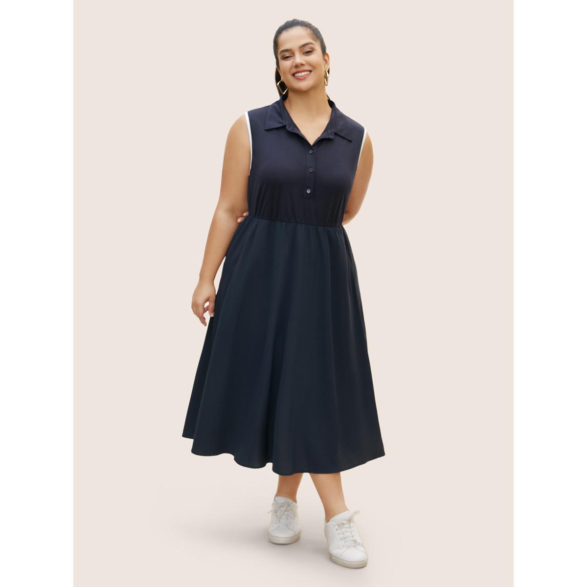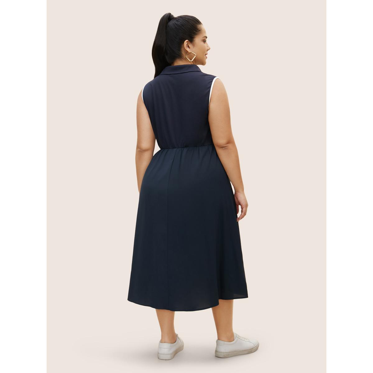 Plus Size Shirt Collar Contrast Trim Button Up Dress Navy Women Casual Contrast Shirt collar Sleeveless Curvy BloomChic 10/M
