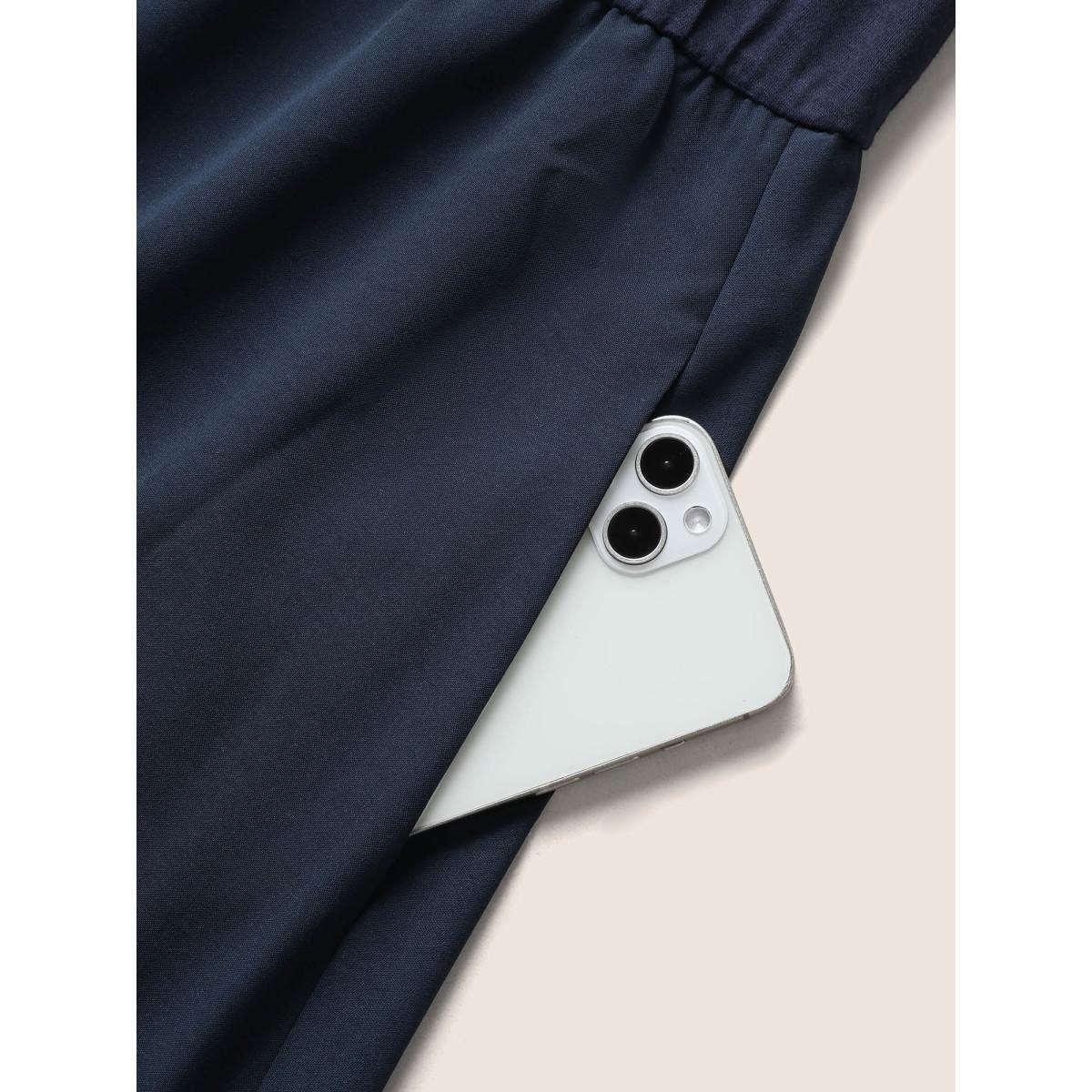 Plus Size Navy Solid Roll Sleeve Button Down Drawstring Blouse Women Office Long Sleeve V-neck Office Blouses BloomChic 18-20/2X