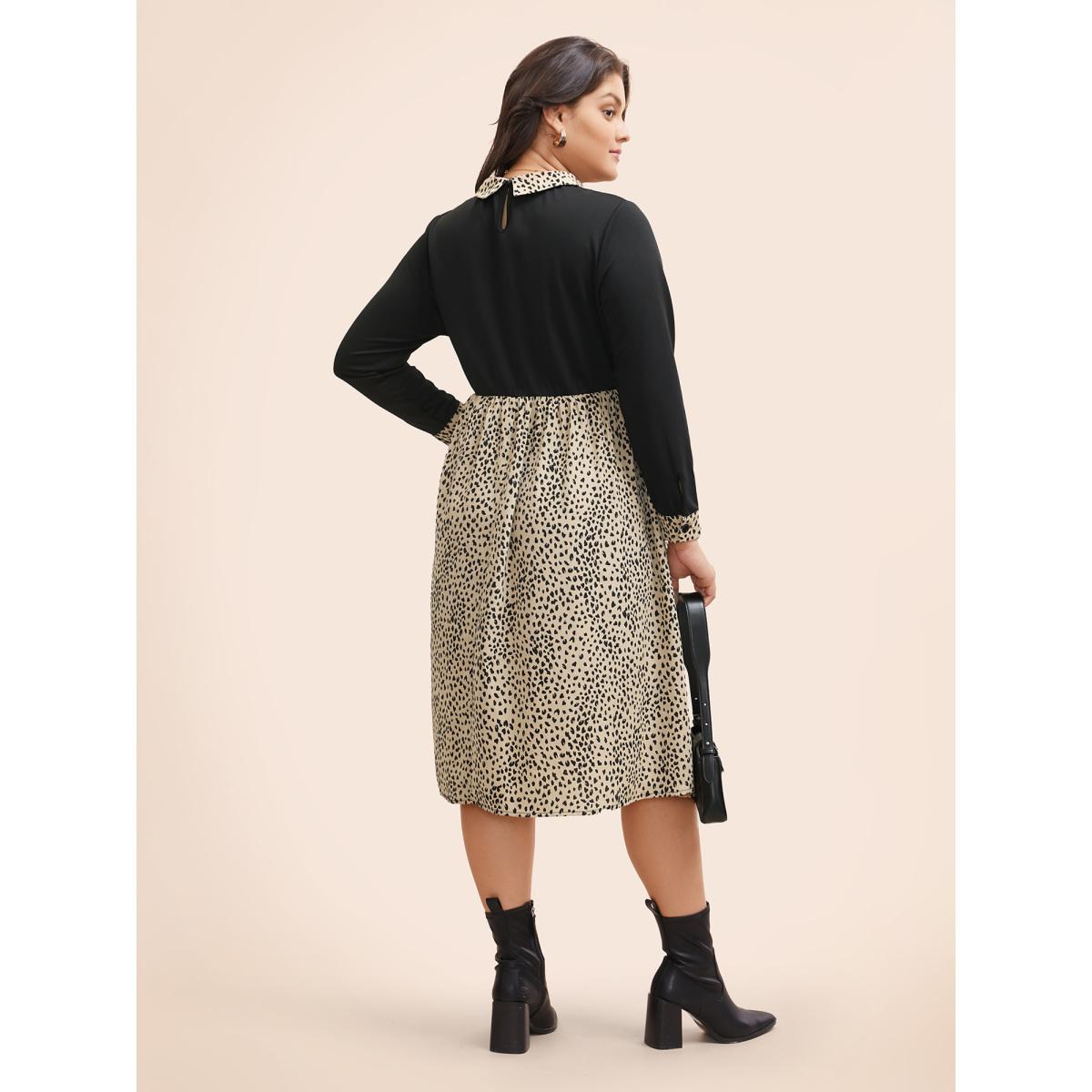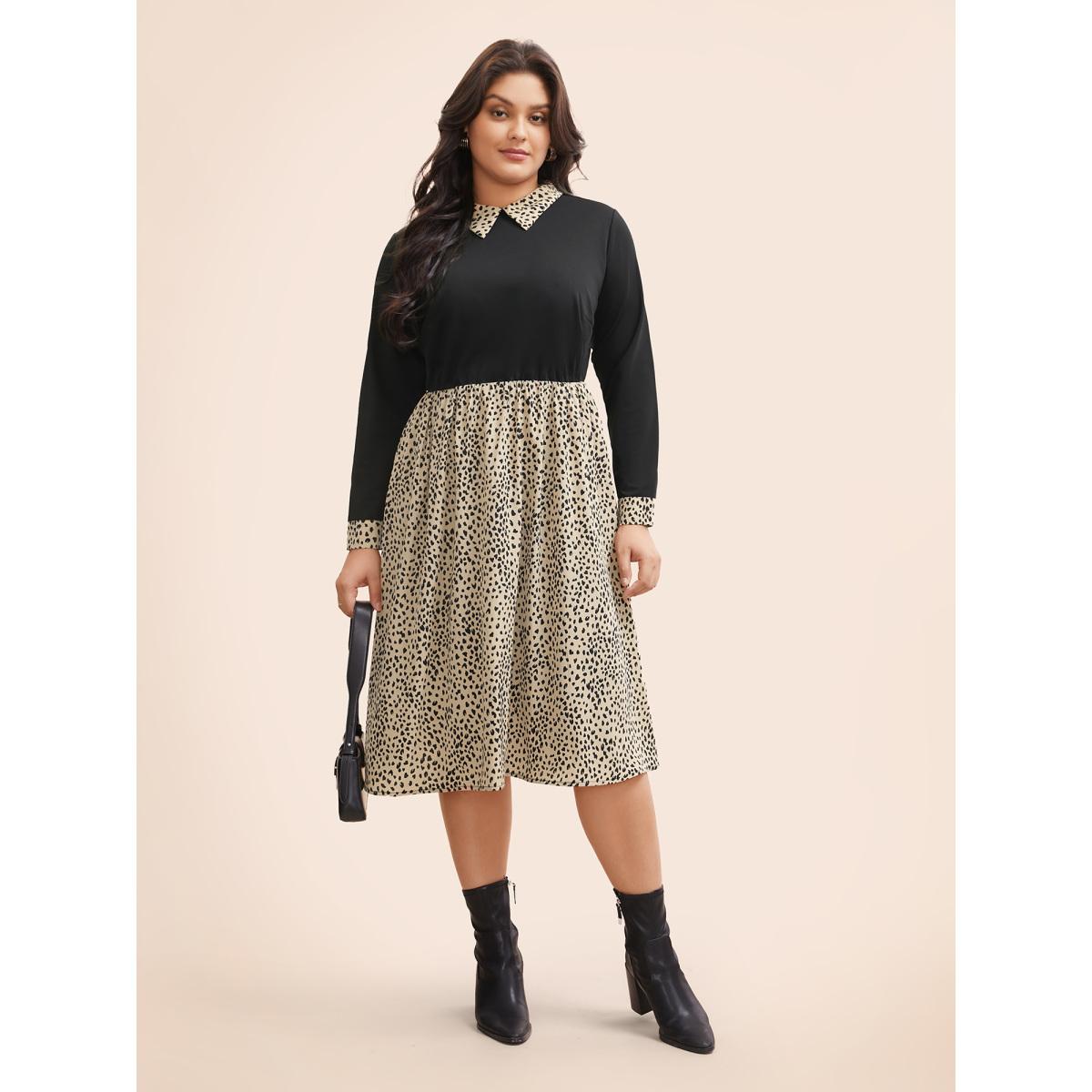 Plus Size Shirt Collar Leopard Print Patchwork Dress Tan Women At the Office Patchwork Shirt collar Long Sleeve Curvy BloomChic 26/4X