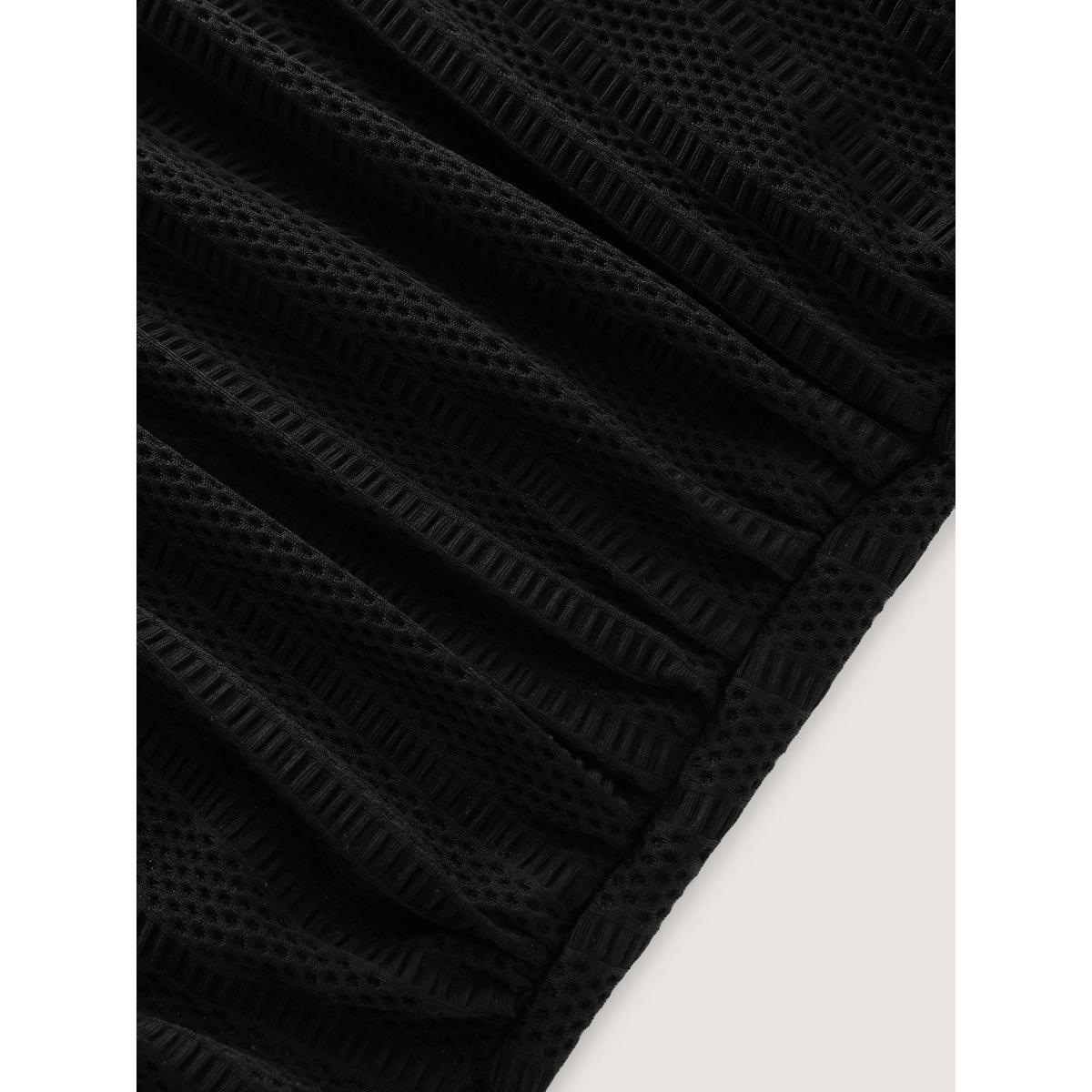 Plus Size Shrink Pleat Tummy-Control One-Piece Swimsuit Women's Swimwear Black Resort Texture Curve Bathing Suits High stretch One Pieces BloomChic 12/L