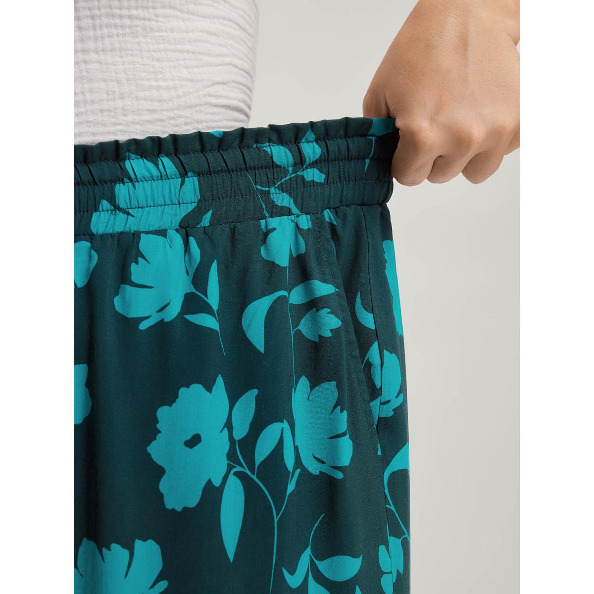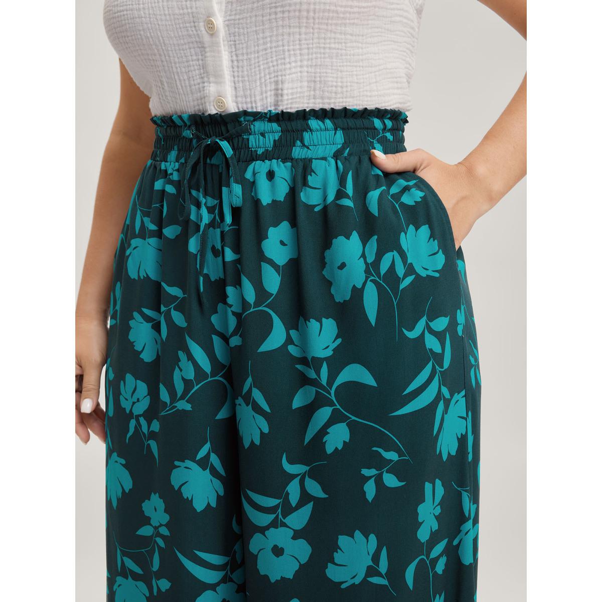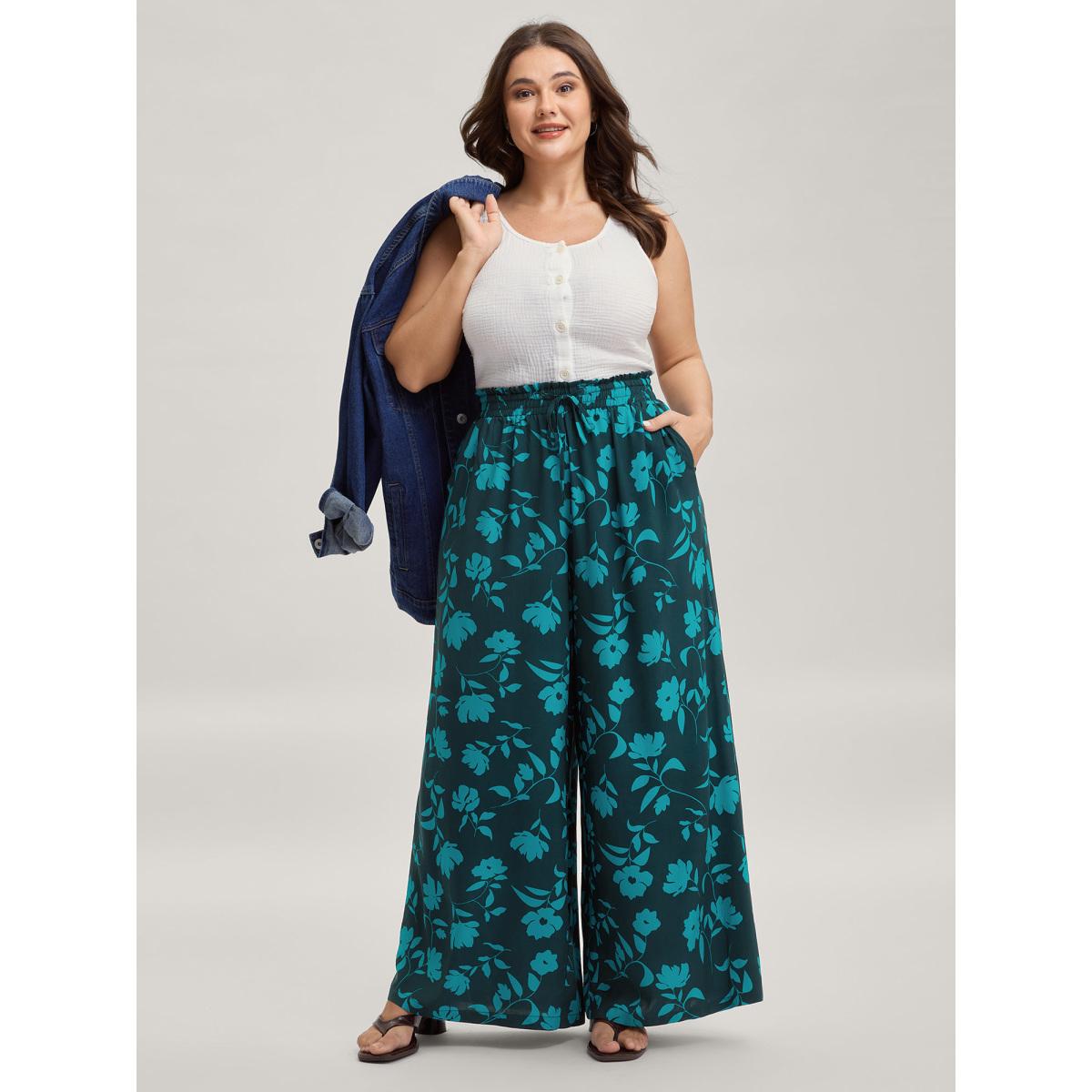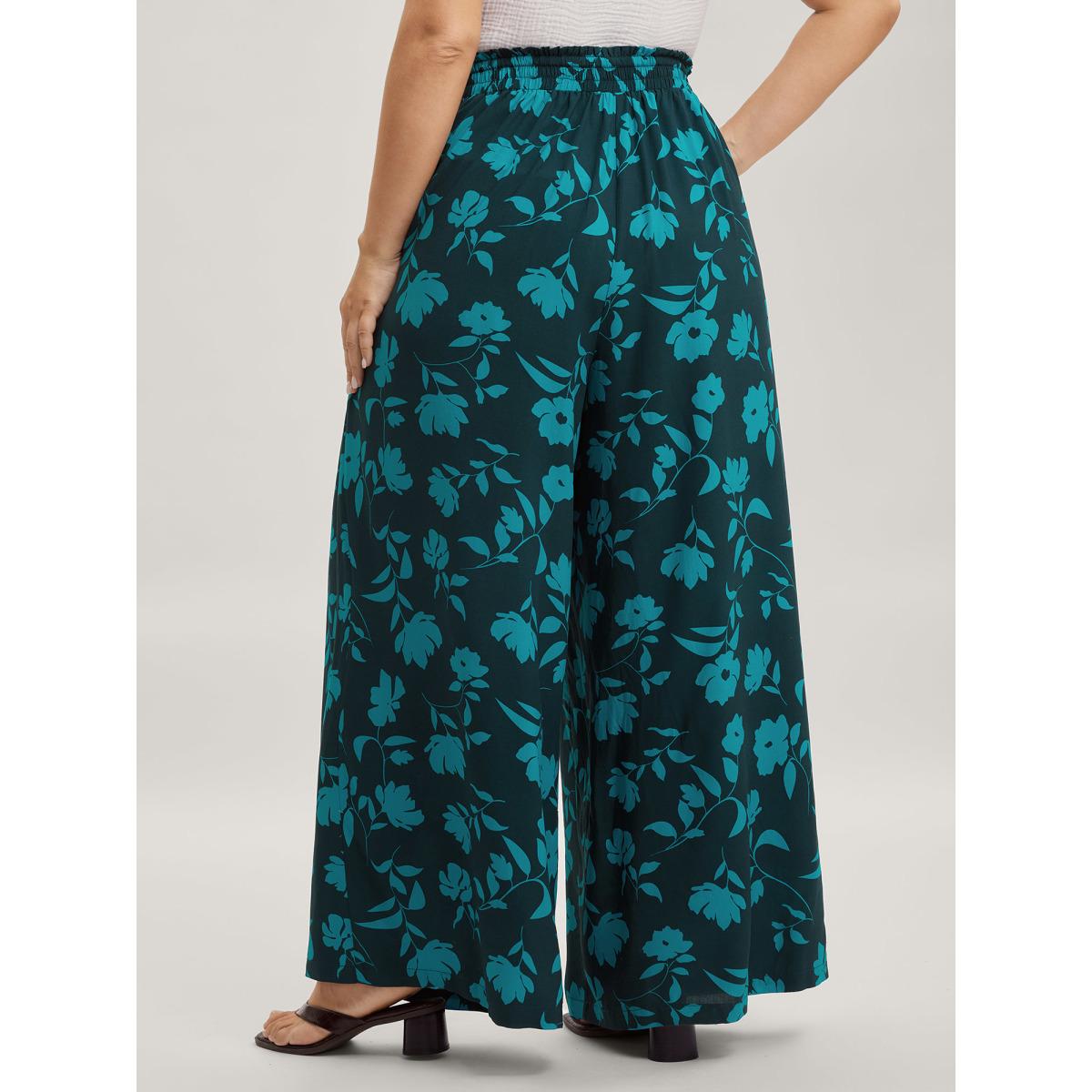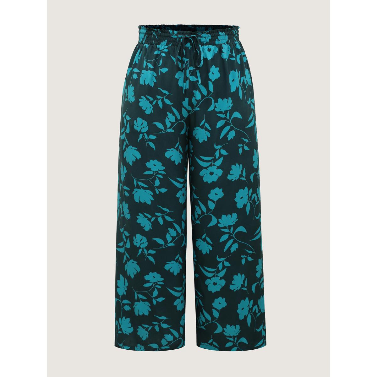 Plus Size Silhouette Floral Print Drawstring Wide-Leg Pants Women Mediumblue Timeless Loose Mid Rise Elegant Pants BloomChic 22-24/3X