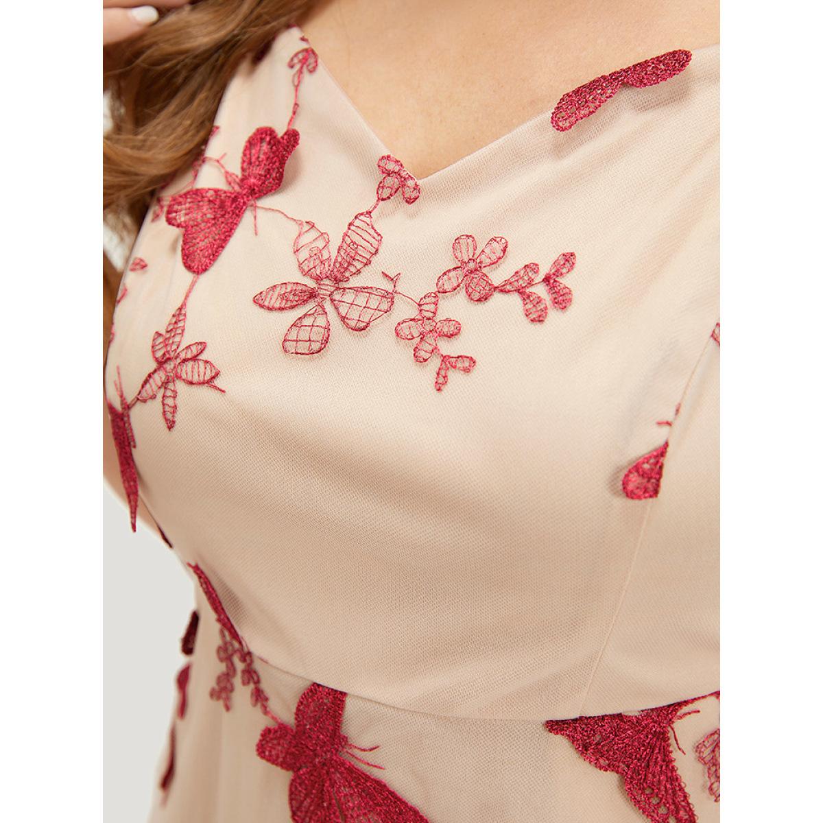 Plus Size Floral Embroidered Spliced Mesh Maxi Dress Beige Women Round Neck Sleeveless Curvy BloomChic 26/4X