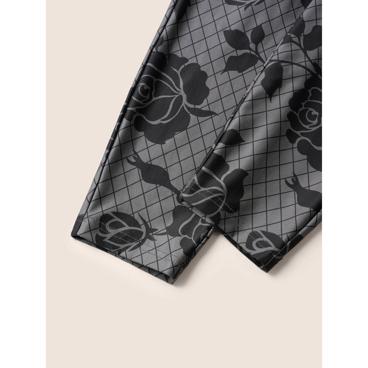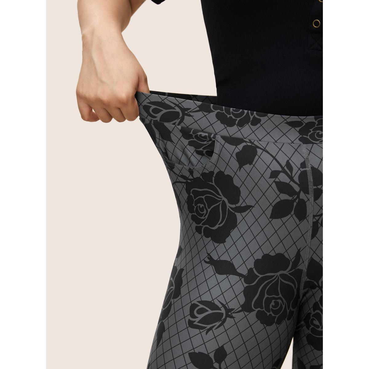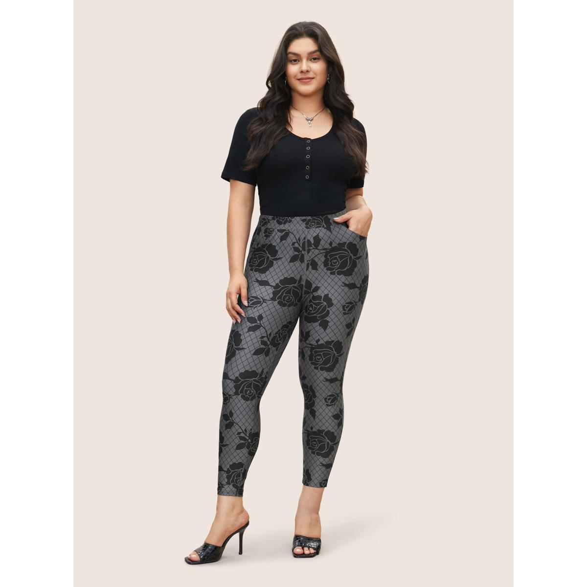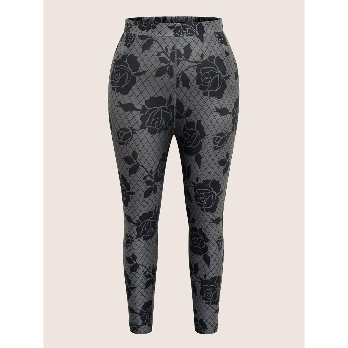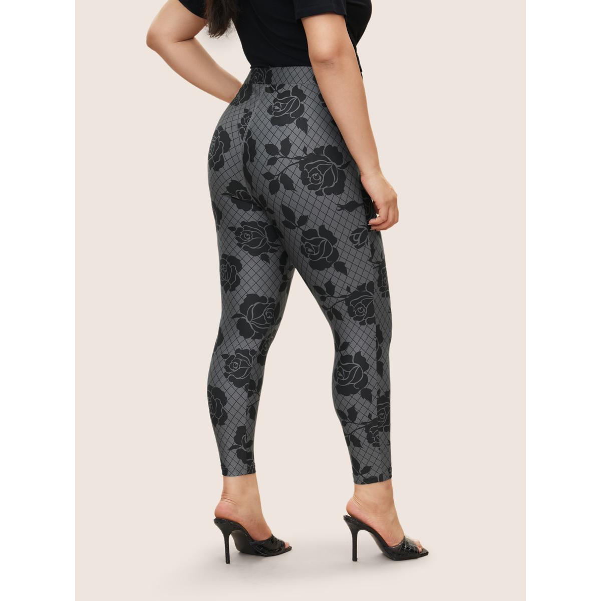 Plus Size Skinny Rose Print High Rise Leggings Women DimGray At the Office High stretch Skinny High Rise Office Leggings BloomChic 22-24/3X