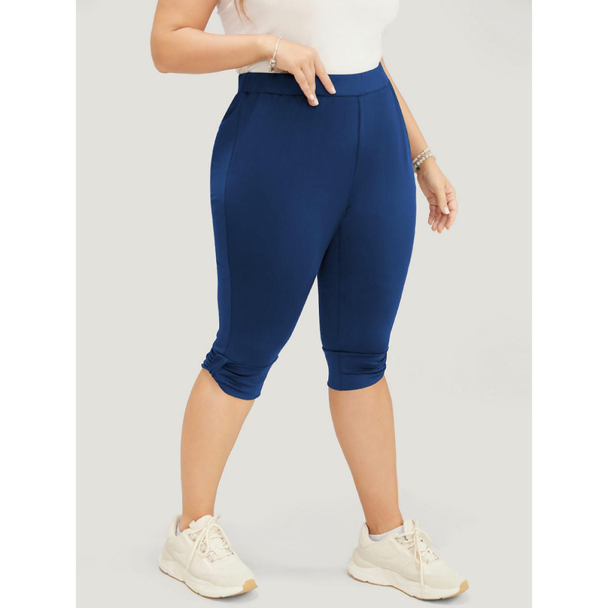 Plus Size Skinny Ruched Detail Knee Leggings Women Navy Casual High stretch Skinny High Rise Dailywear Leggings BloomChic 18-20/2X