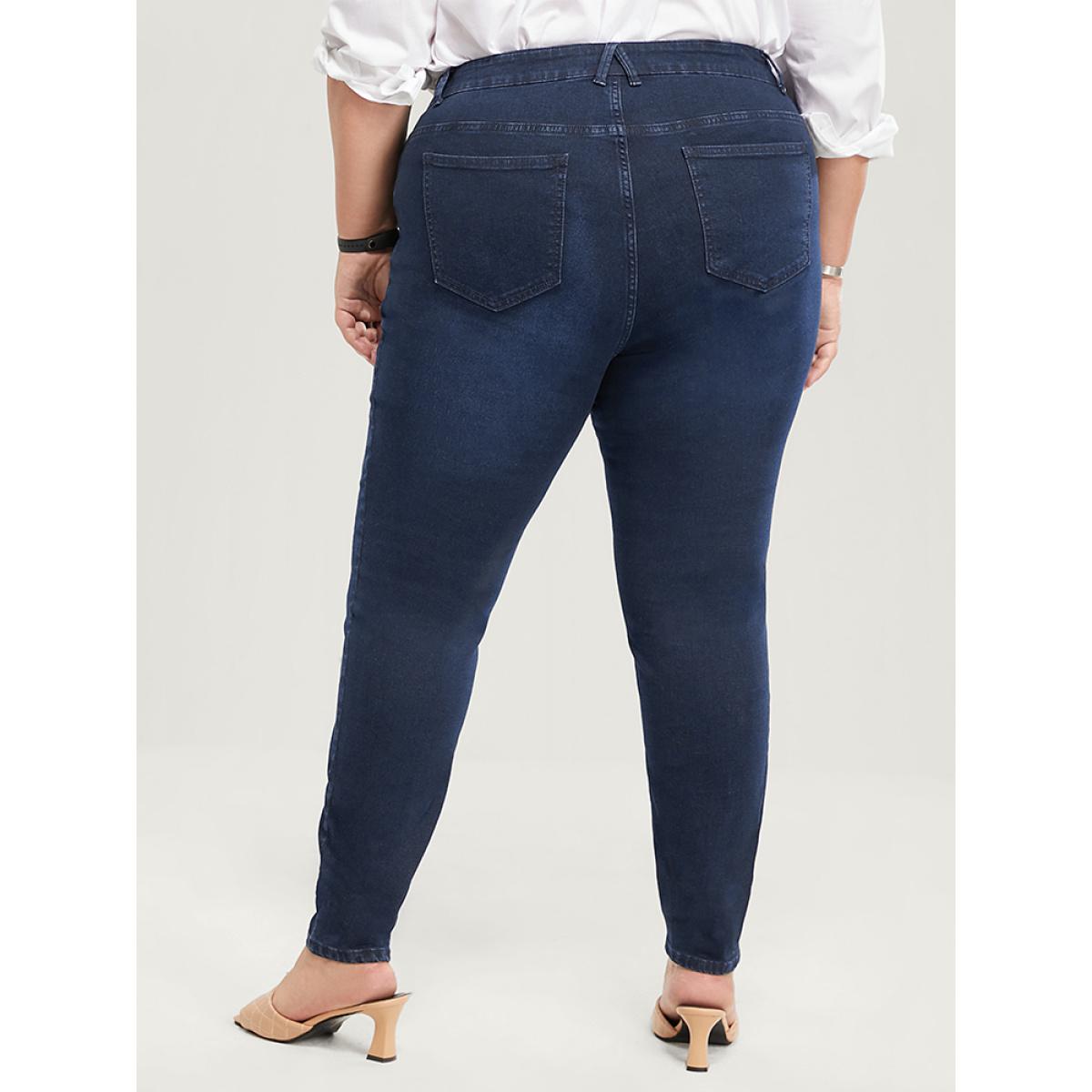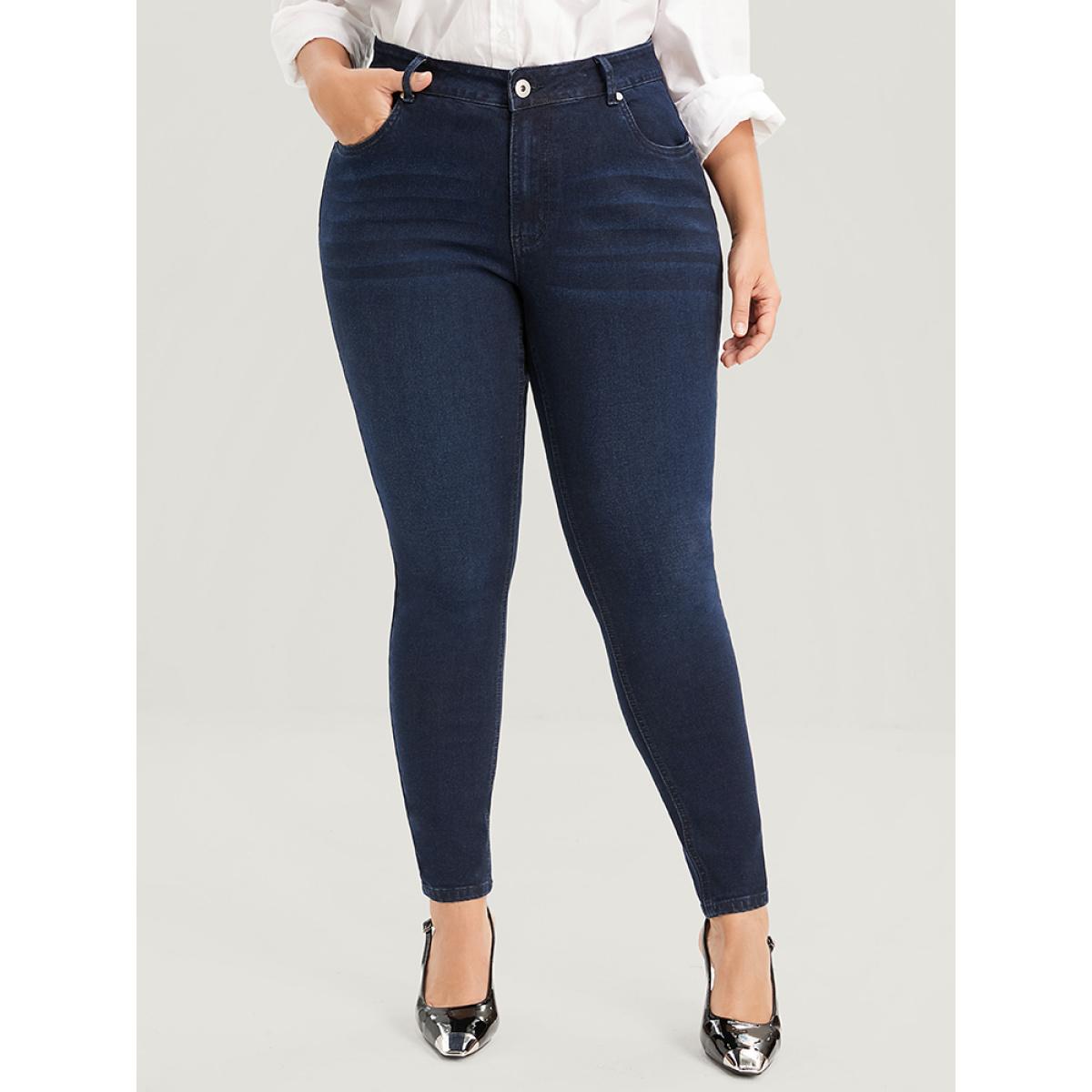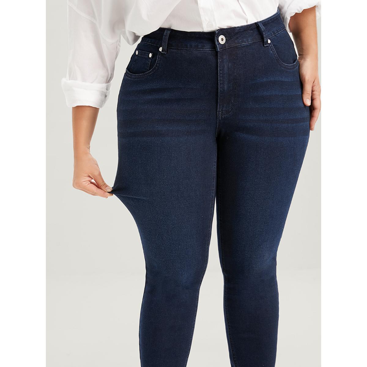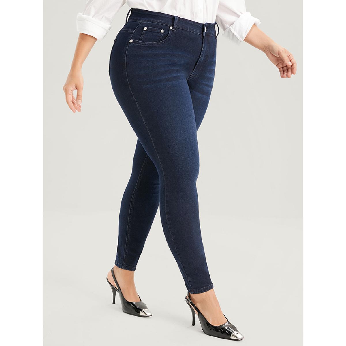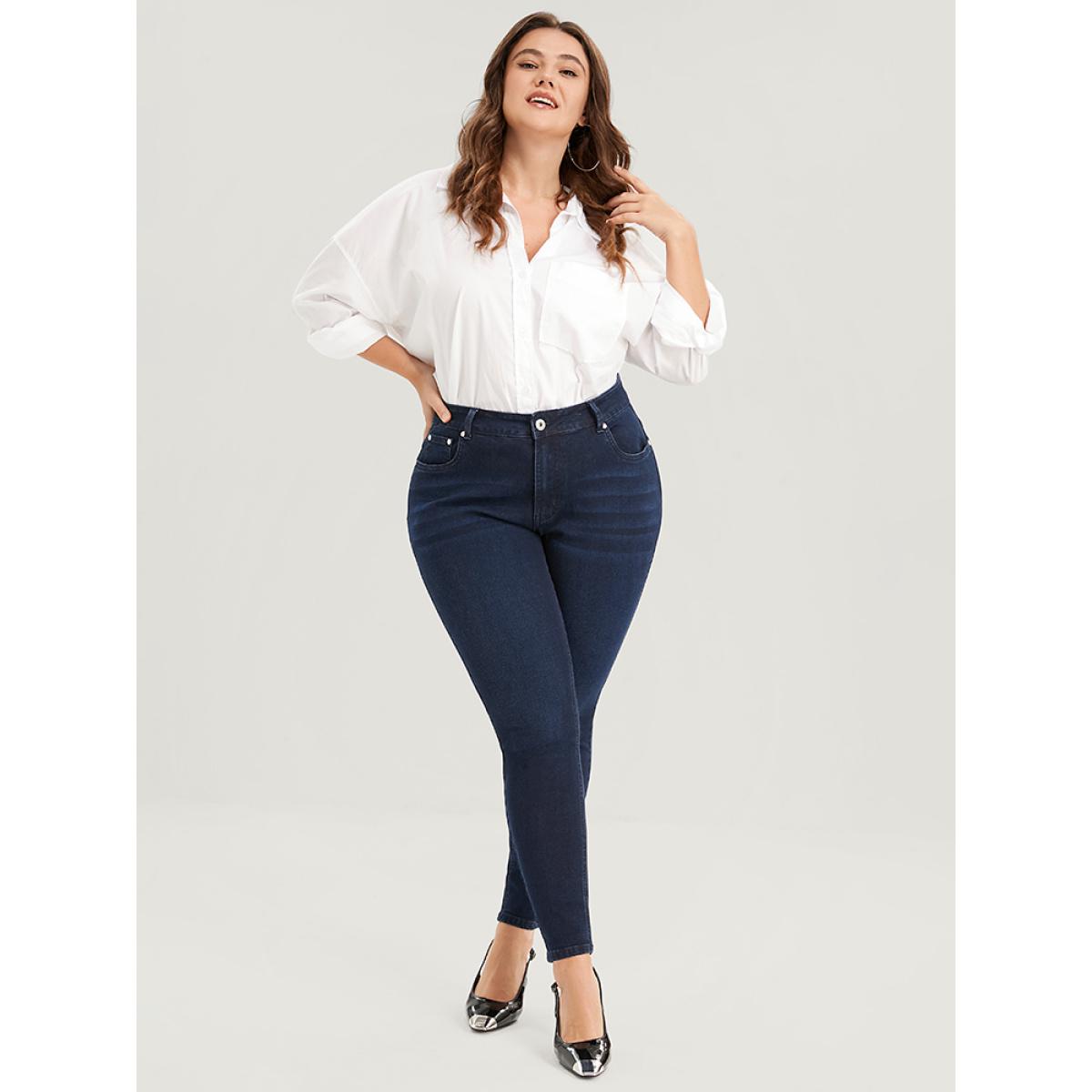 Plus Size Skinny Very Stretchy High Rise Dark Wash Sculpt Waist Full Jeans Women Navy Office Plain High stretch Pocket Jeans BloomChic 16/1X