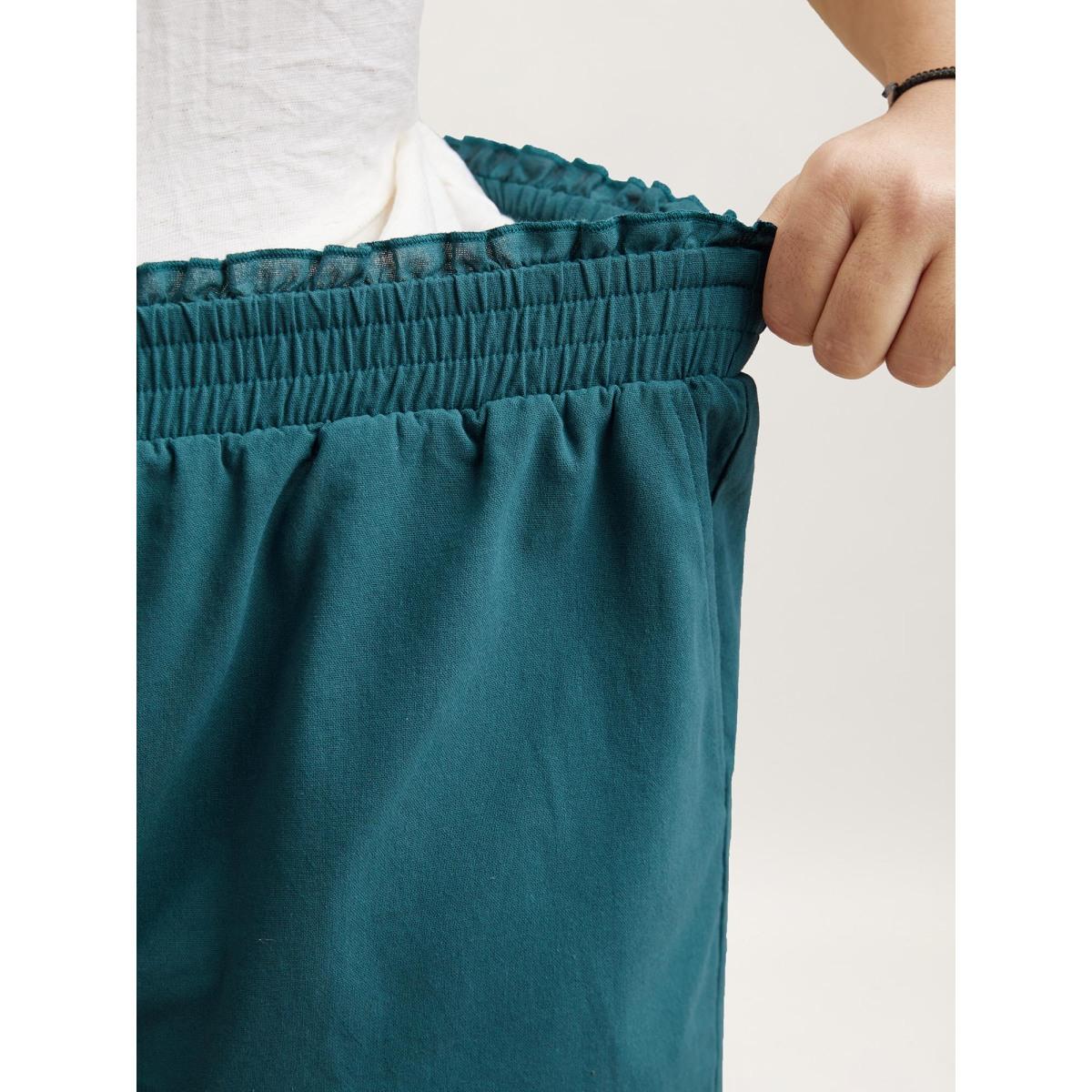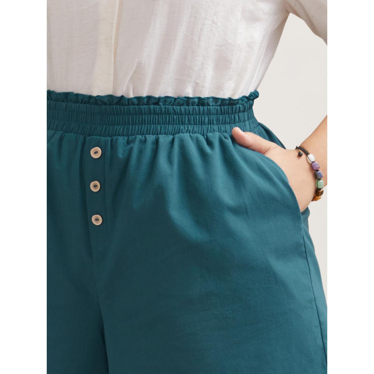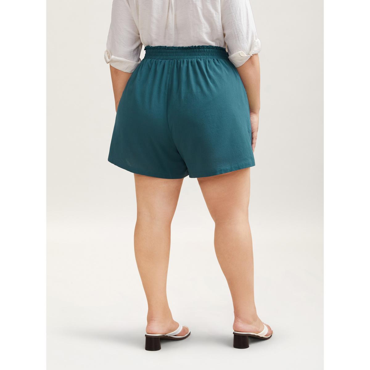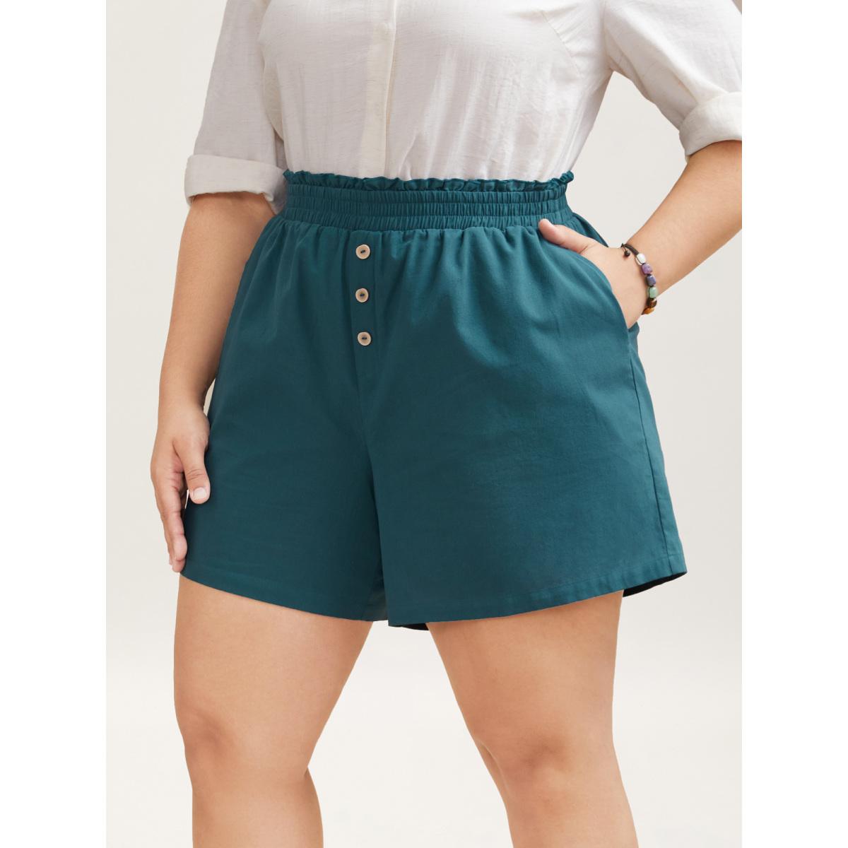 Plus Size Smocked Waist Buckle Button Shorts Women Aegean Casual Button Everyday Shorts BloomChic 22-24/3X