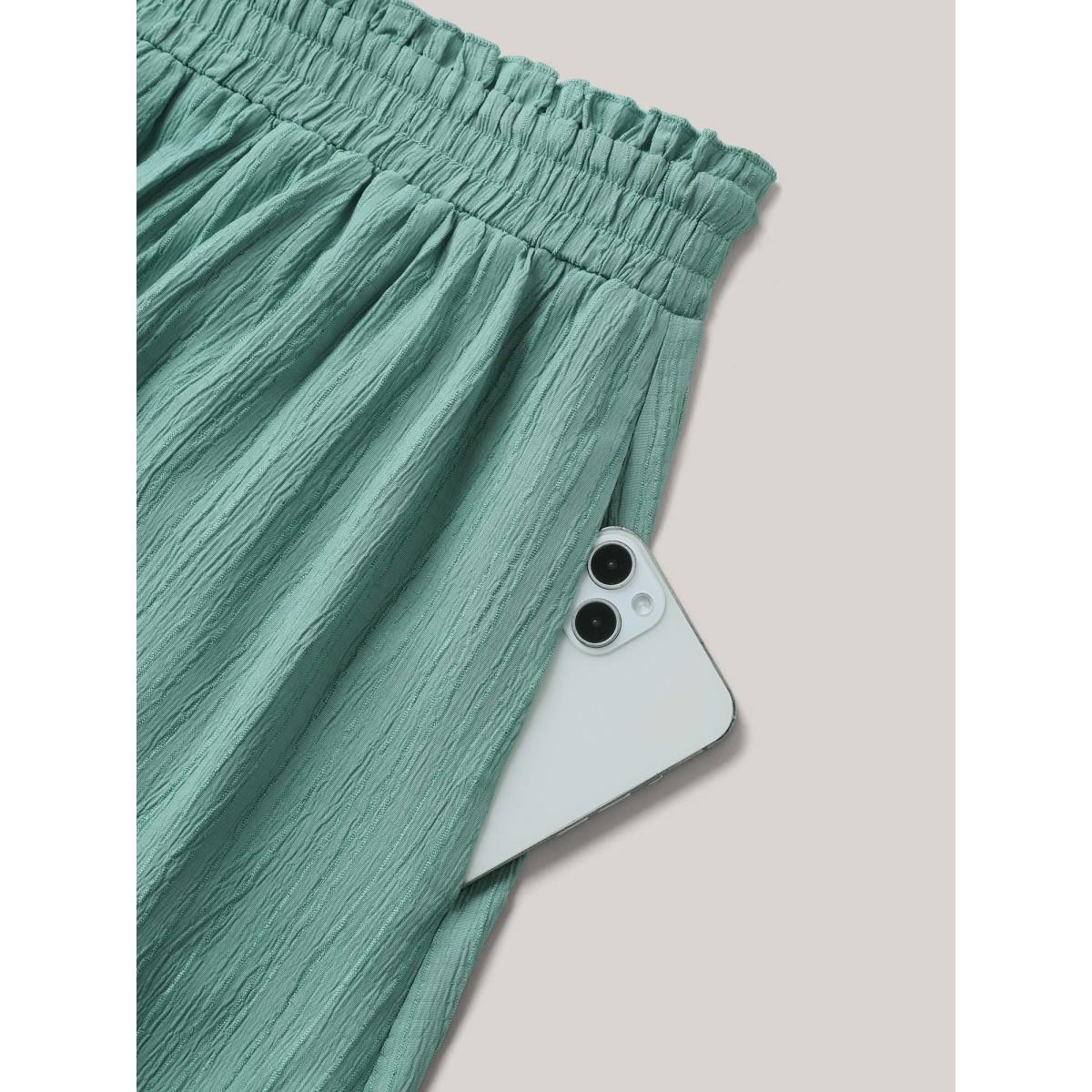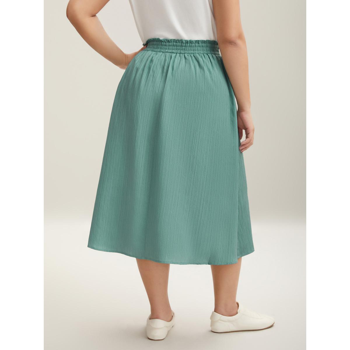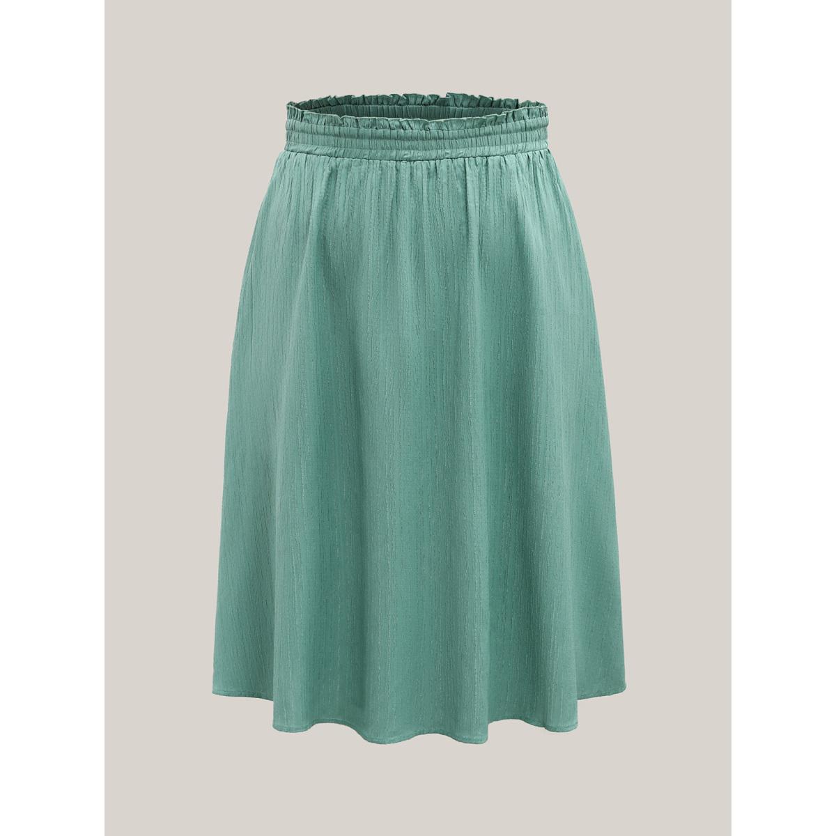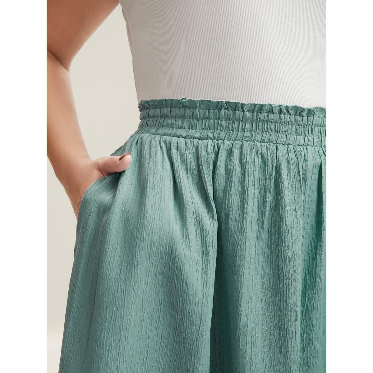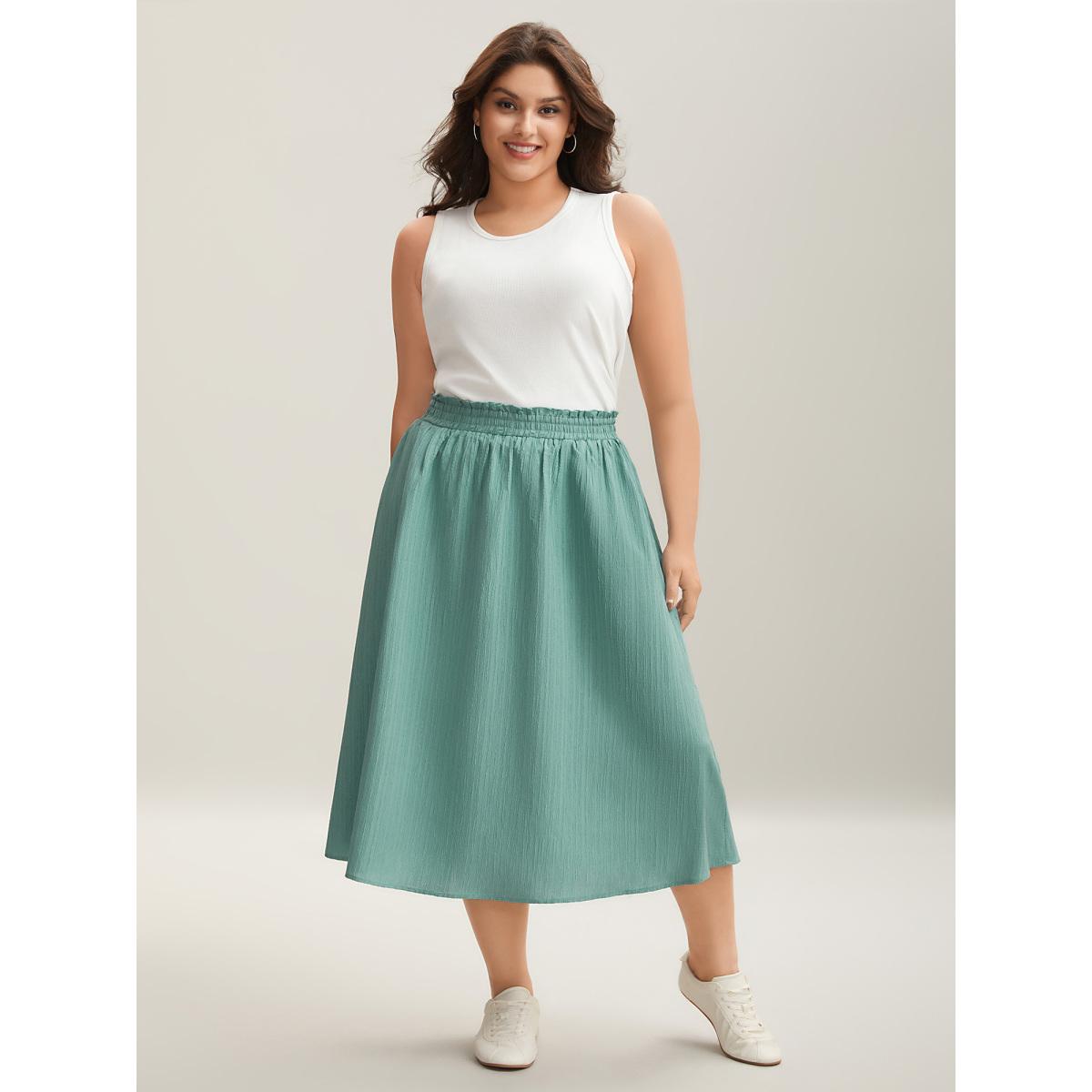 Plus Size Smocked Waist Textured Pleated Midi Skirt Women Mint Elegant Texture Bodycon Low stretch Side seam pocket Everyday Skirts BloomChic 26/4X