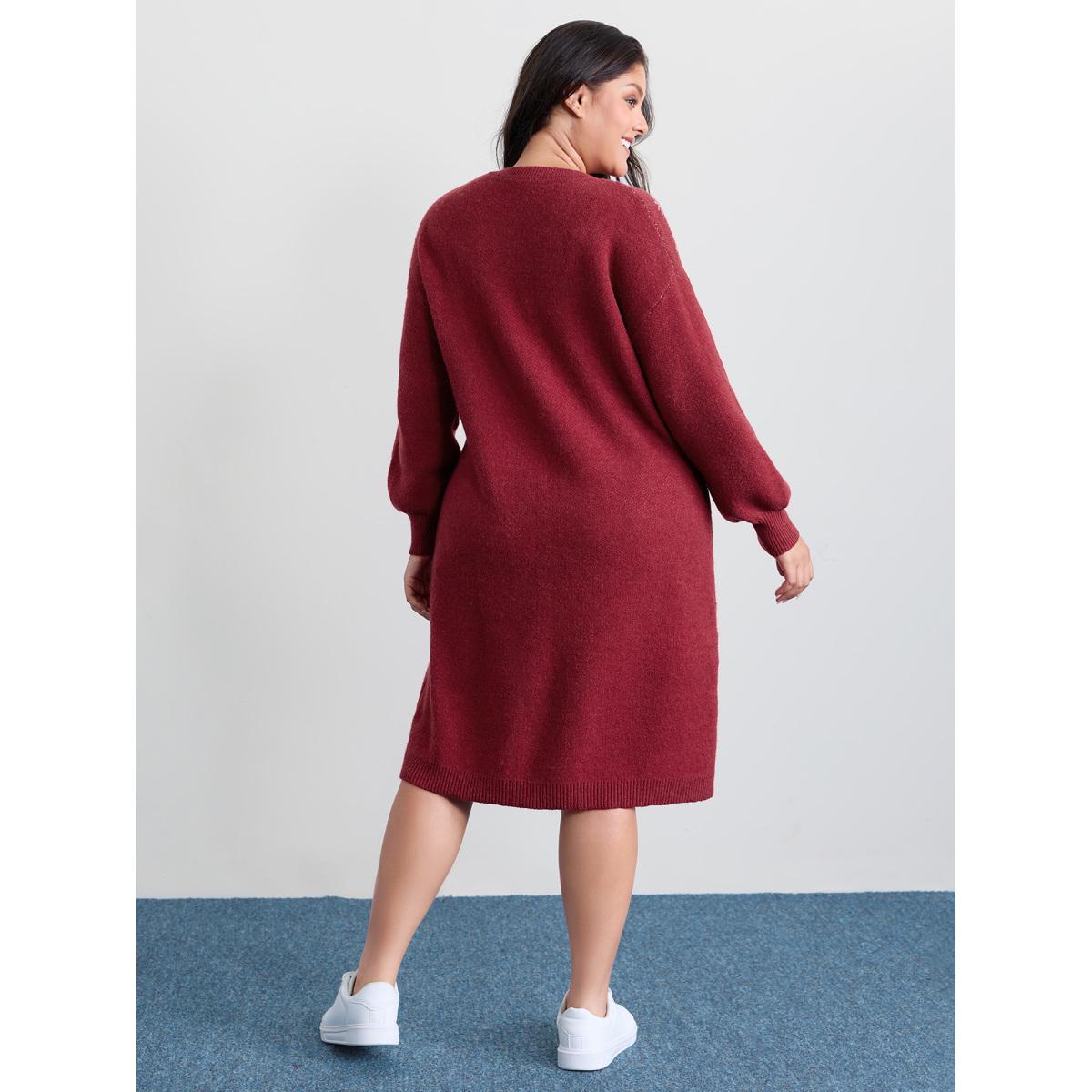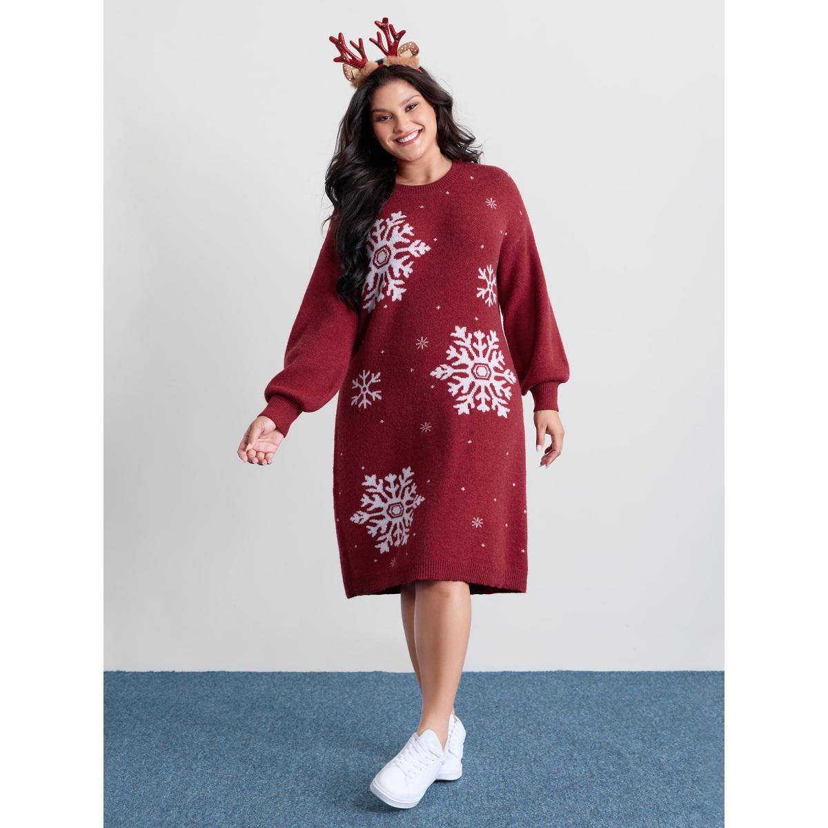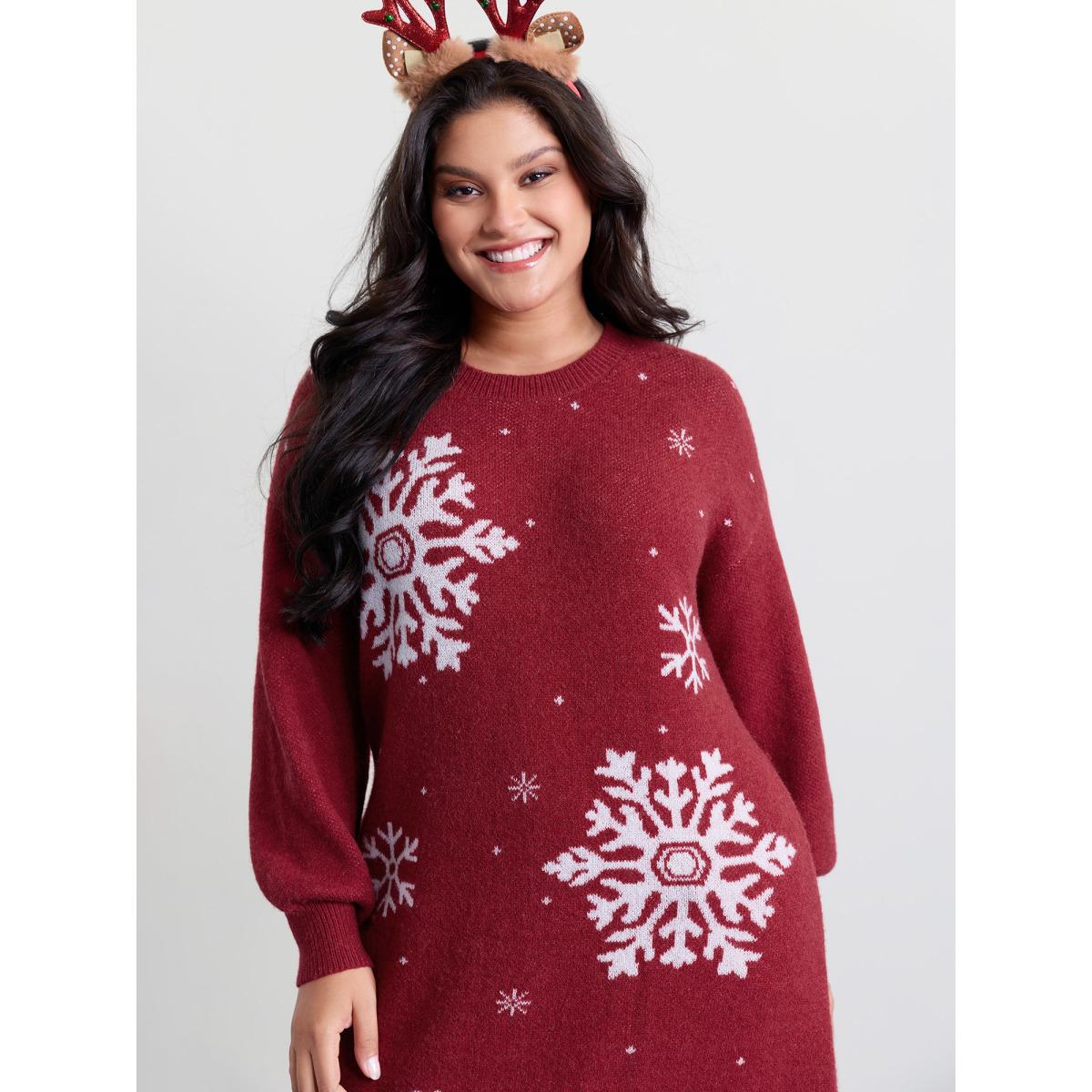 Plus Size Snowflake Pattern Drop Shoulder Sweater Dress Scarlet Women Leisure Loose Long Sleeve Casual Sweater Dresses BloomChic 18-20/2X