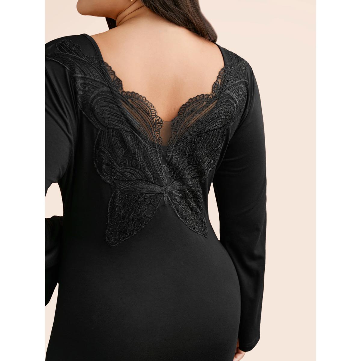 Plus Size Soft Butterfly Cutout Mesh Maxi Dress Black Women Cocktail Texture Party Curvy Bloomchic 12/L