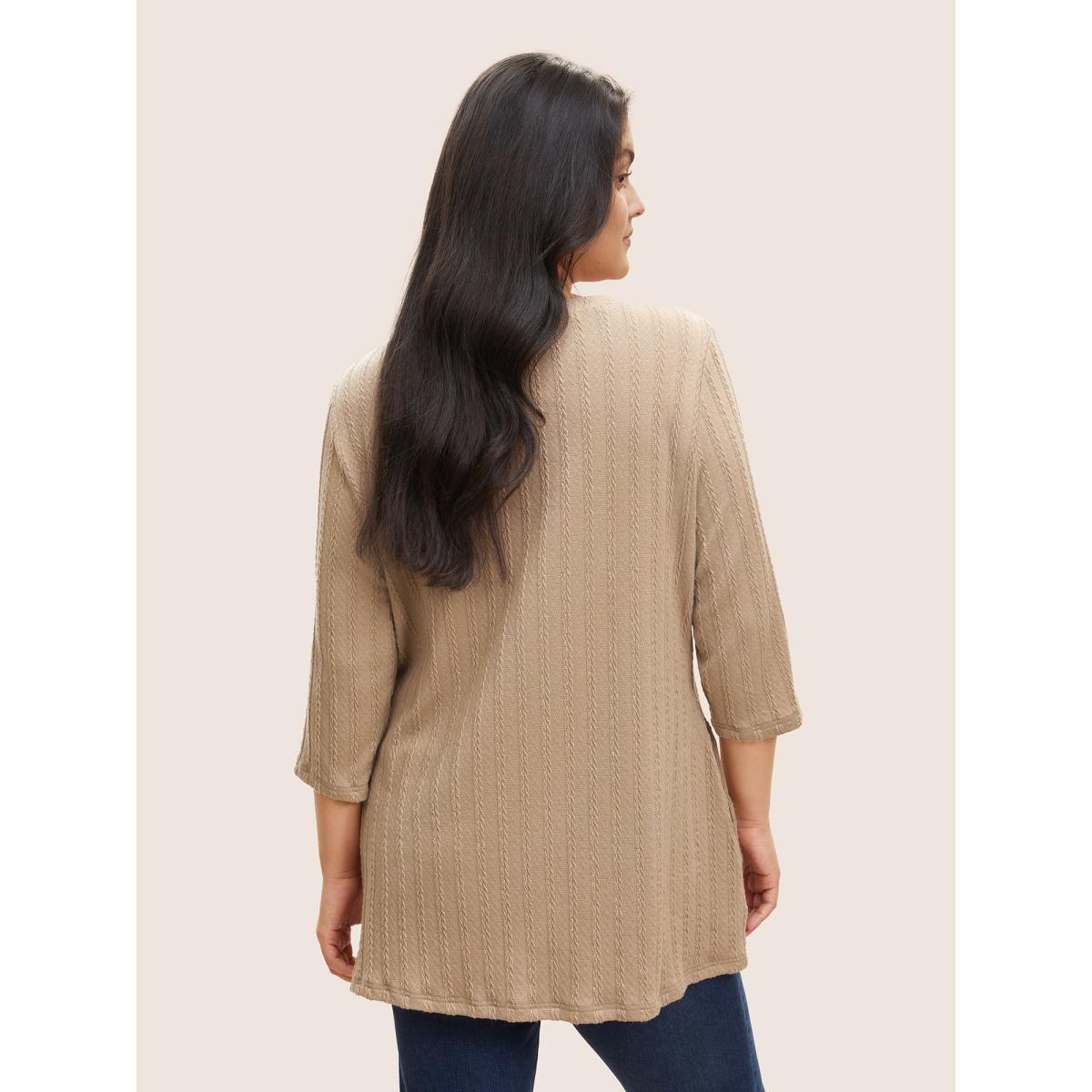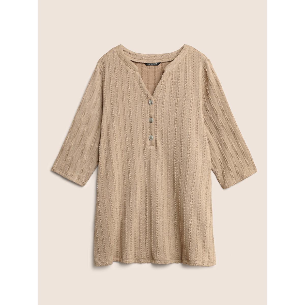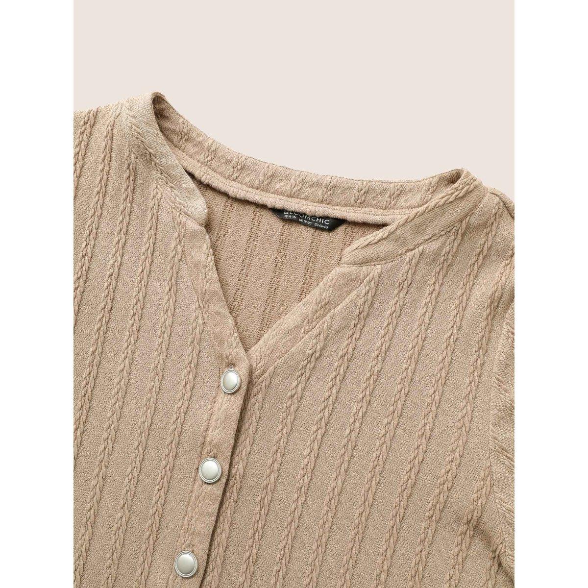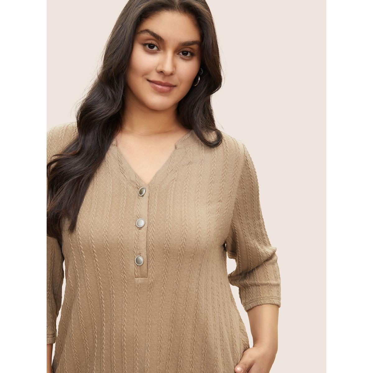 Plus Size Soldi Cable Knit Pocket Button Up T-shirt LightBrown Women Casual Non Plain V-neck Everyday T-shirts BloomChic 10/M
