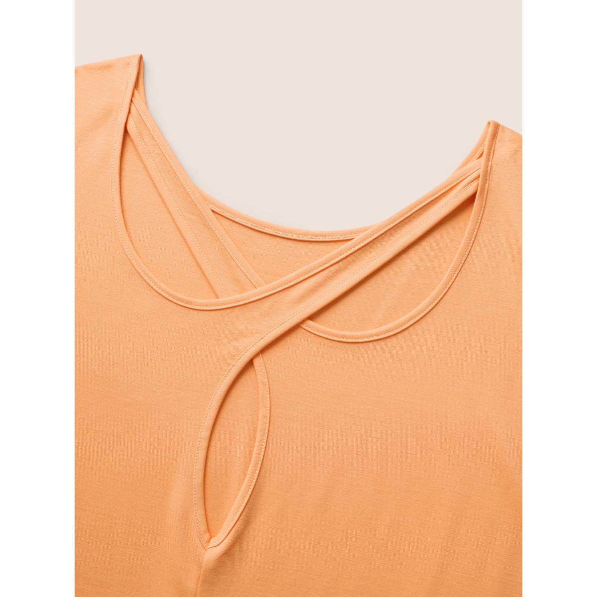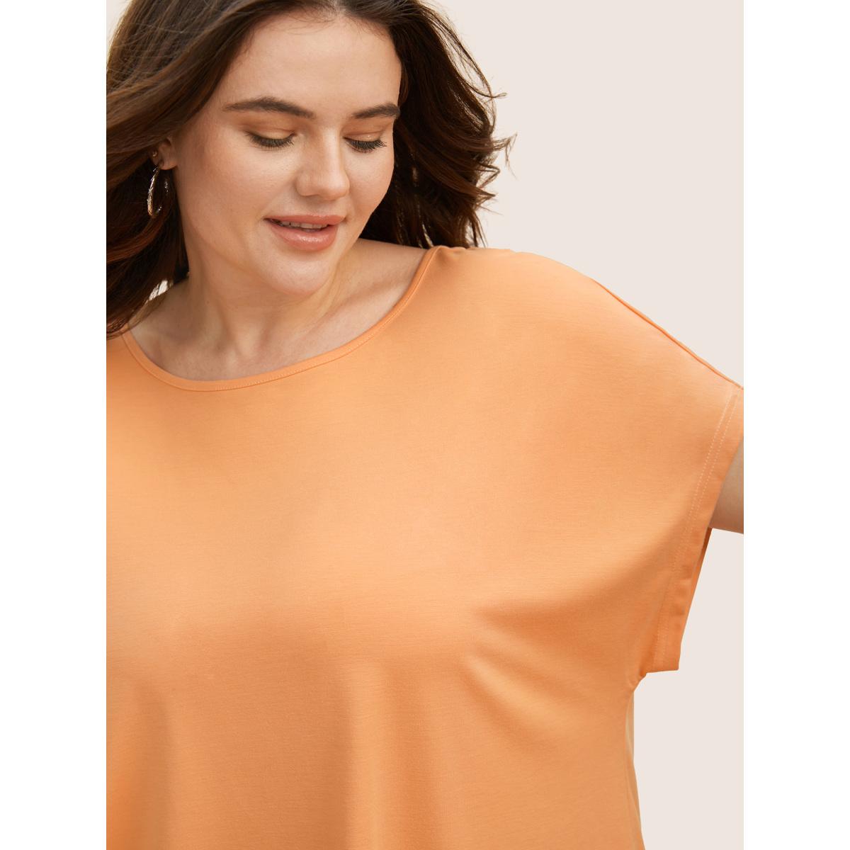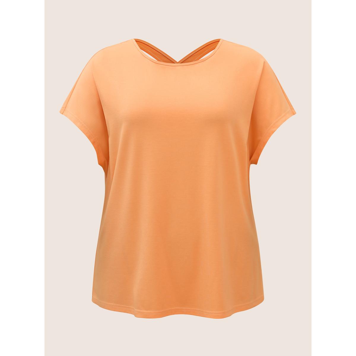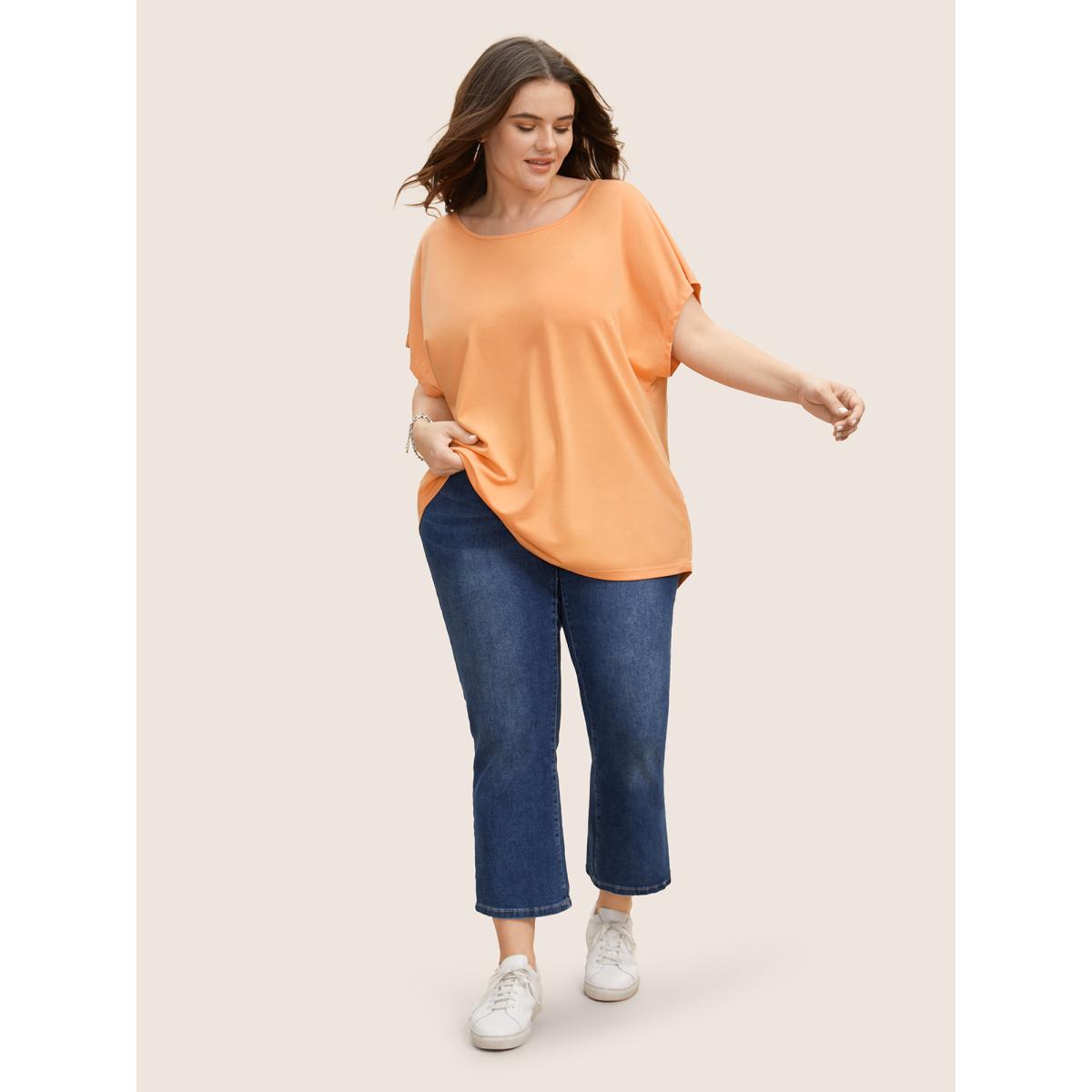 Plus Size Solid Boat Neck Cut Out Dolman Sleeve T-shirt Lightorange Women Casual Cut-Out Boat Neck Everyday T-shirts BloomChic 30/6X