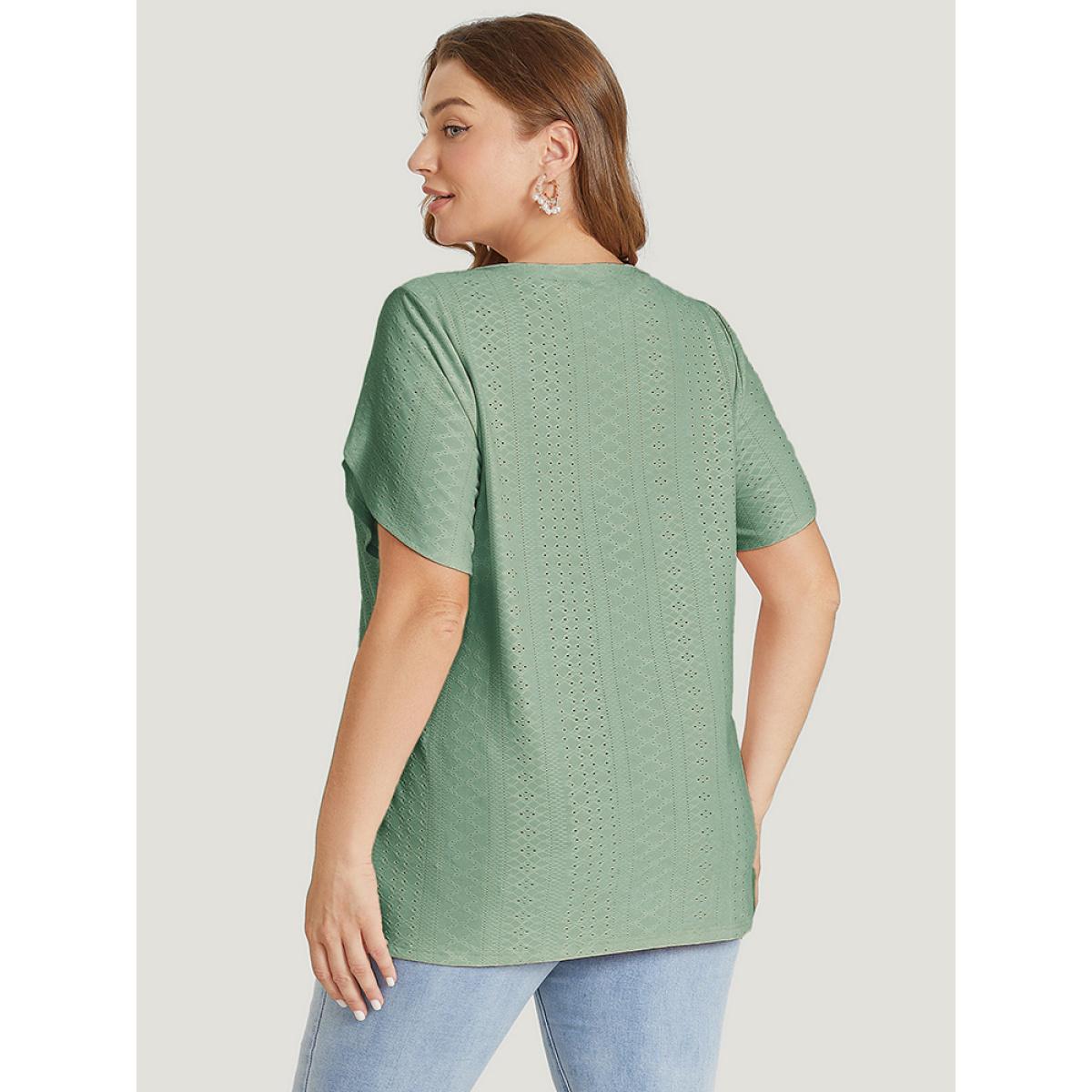Plus Size Solid Broderie Anglaise Split Sleeve T-shirt Mint Women Elegant Slit Plain V-neck Dailywear T-shirts BloomChic 10/M
