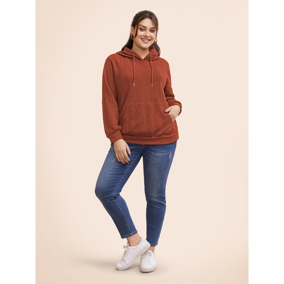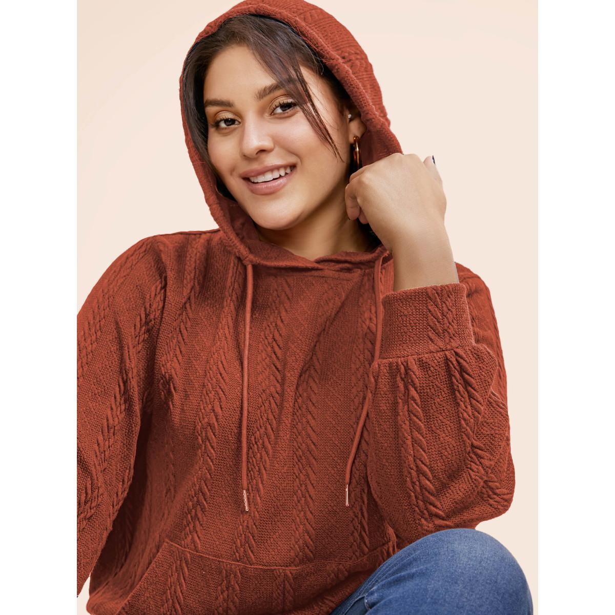 Plus Size Solid Cable Knit Hooded Drawstring Sweatshirt Women Rust Casual Texture Hooded Everyday Sweatshirts BloomChic 30/6X