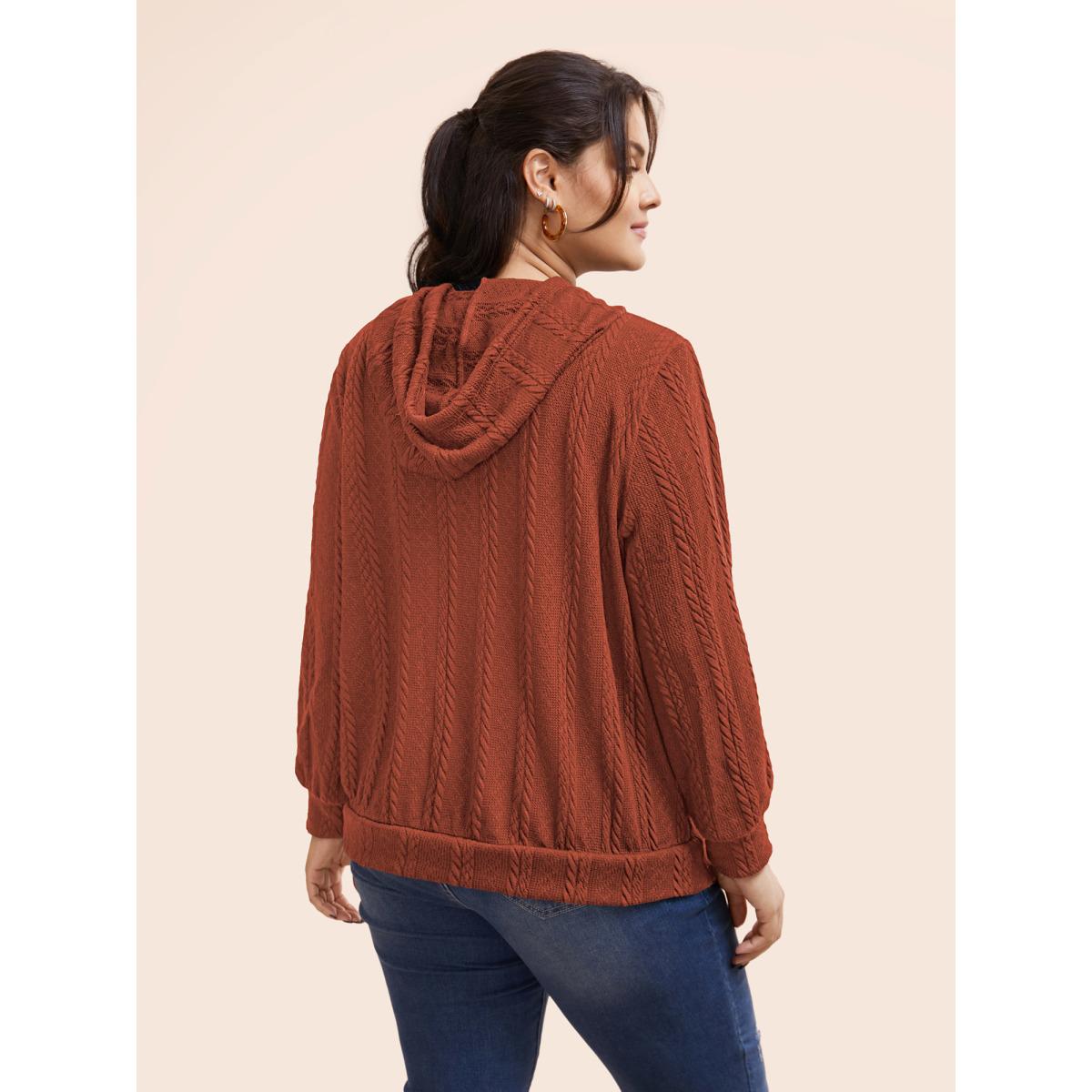 Plus Size Solid Cable Knit Hooded Drawstring Sweatshirt Women Rust Casual Texture Hooded Everyday Sweatshirts BloomChic 30/6X Product Image