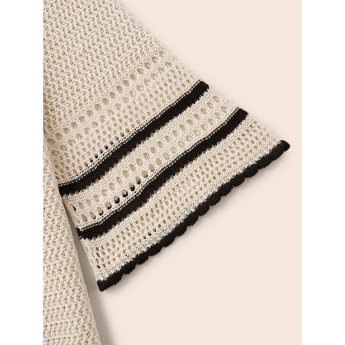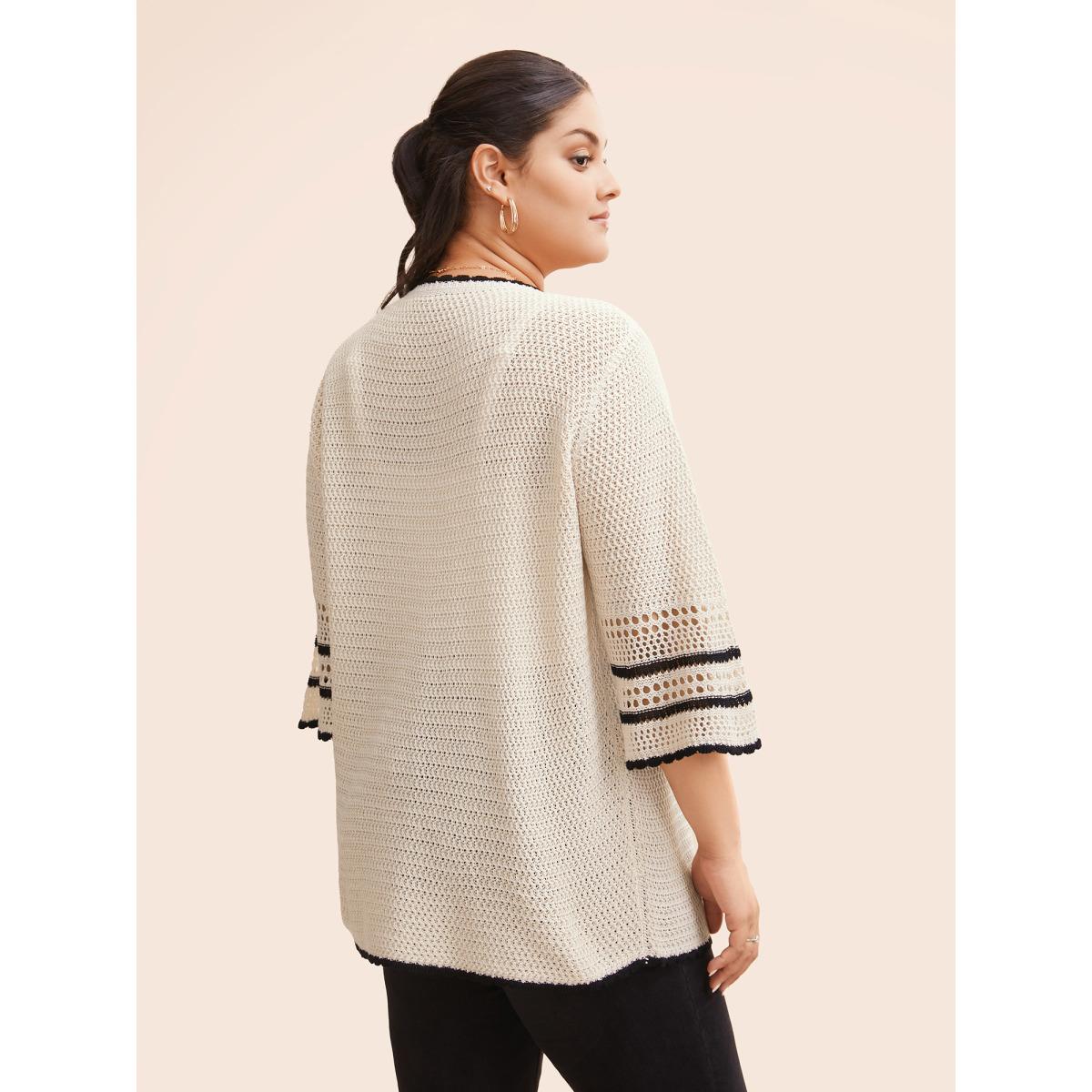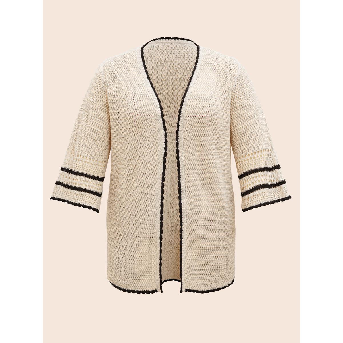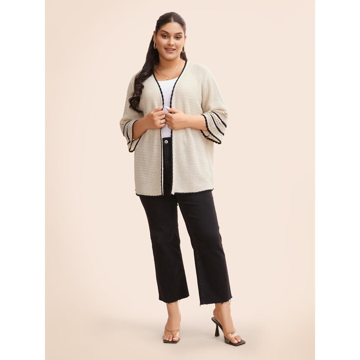 Plus Size Solid Contrast Trim Bell Sleeve Cardigan Apricot Women Leisure Loose Elbow-length sleeve Casual Cardigans BloomChic 22-24/3X