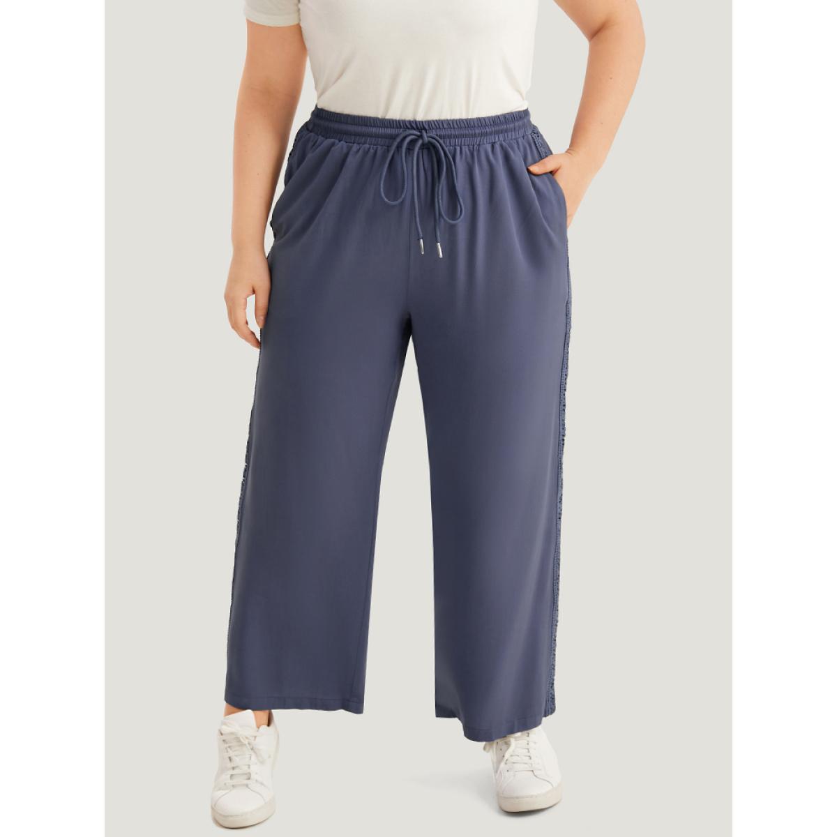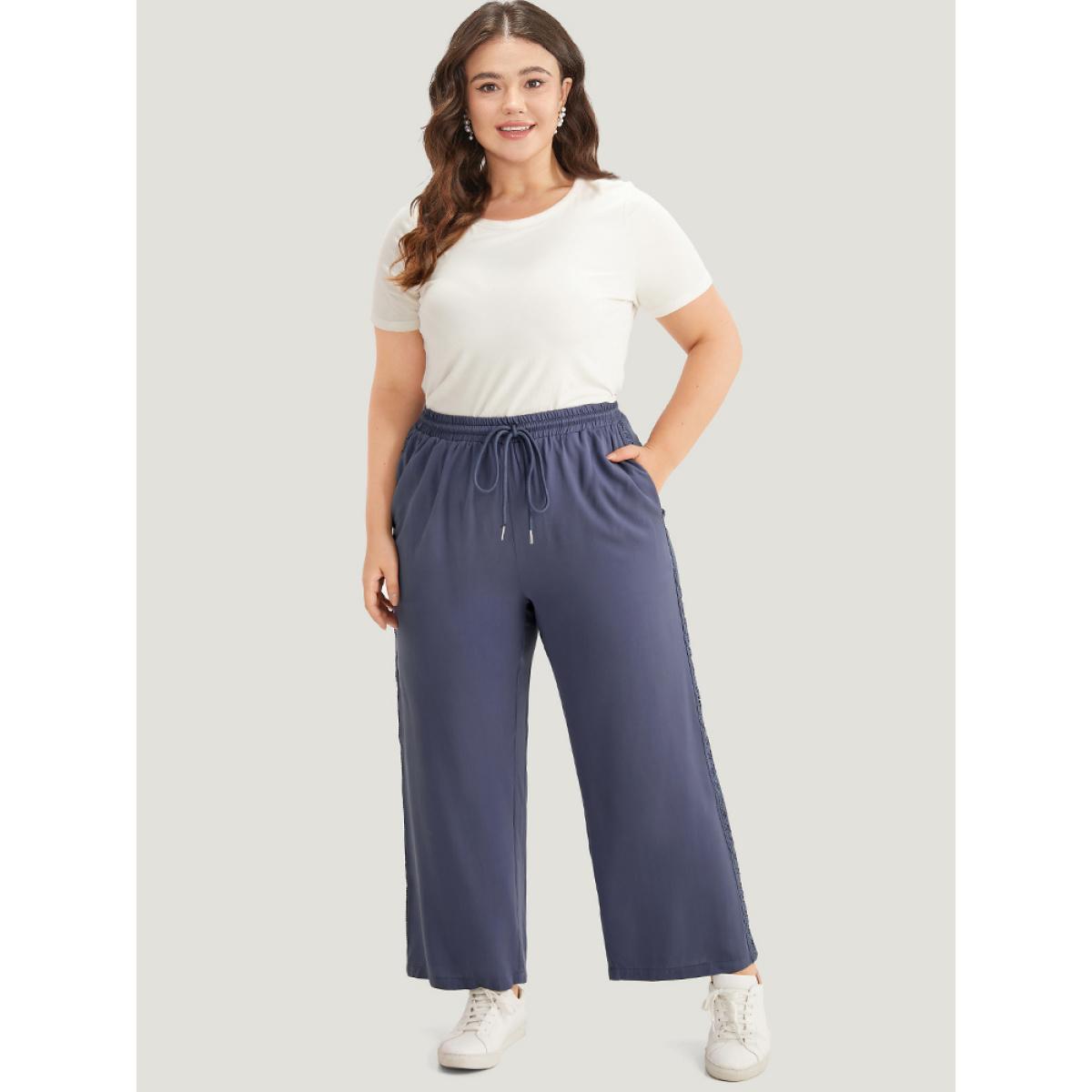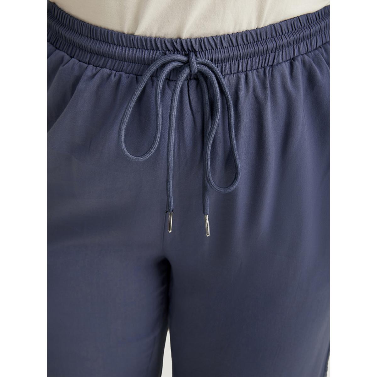 Plus Size Solid Drawstring Pocket Elastic Waist Pants Women Indigo Casual Straight Leg High Rise Dailywear Pants BloomChic 22-24/3X