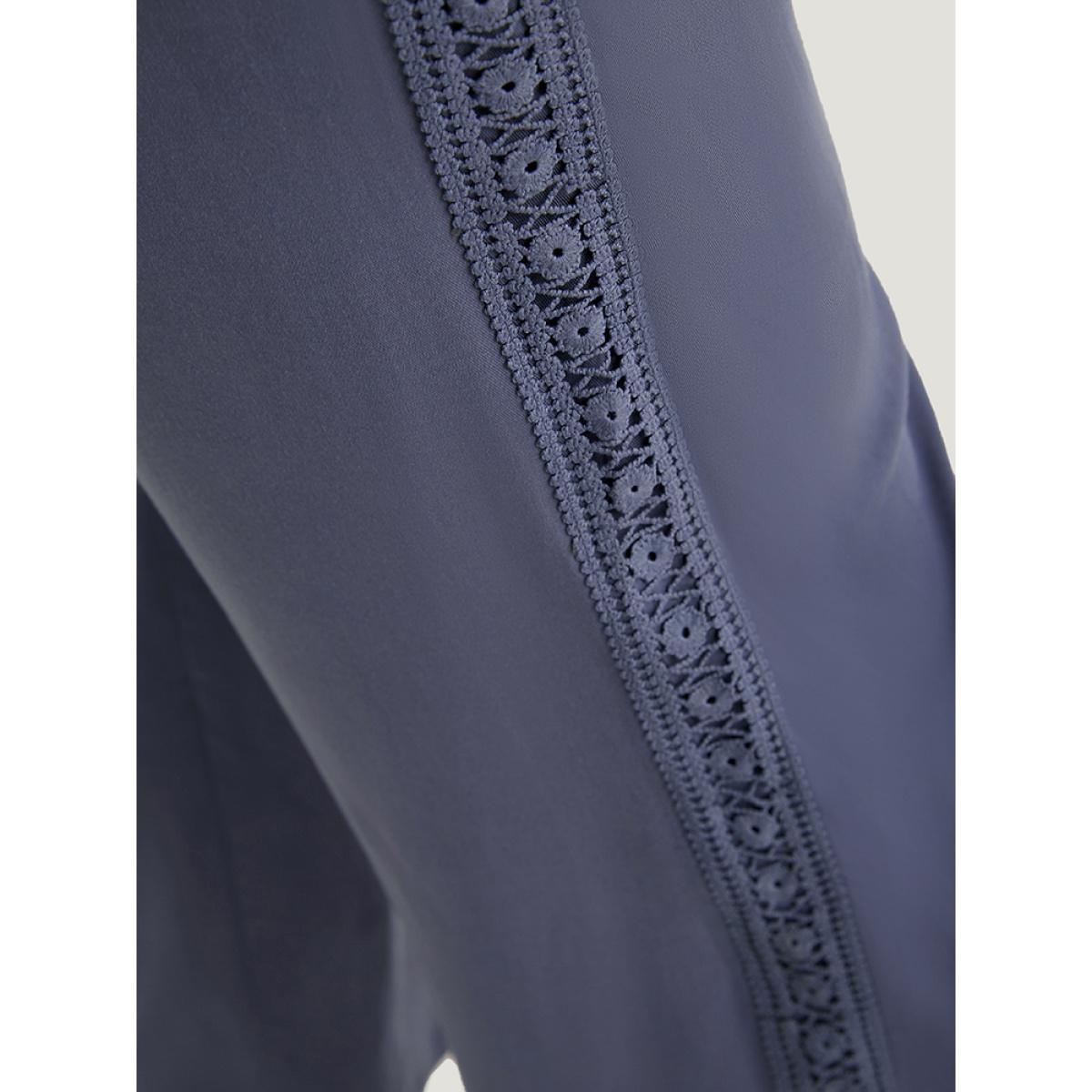 Plus Size Solid Crochet Lace Knotted Elastic Waist Pants Women Stone Casual Wide Leg High Rise Dailywear Pants BloomChic 12/L