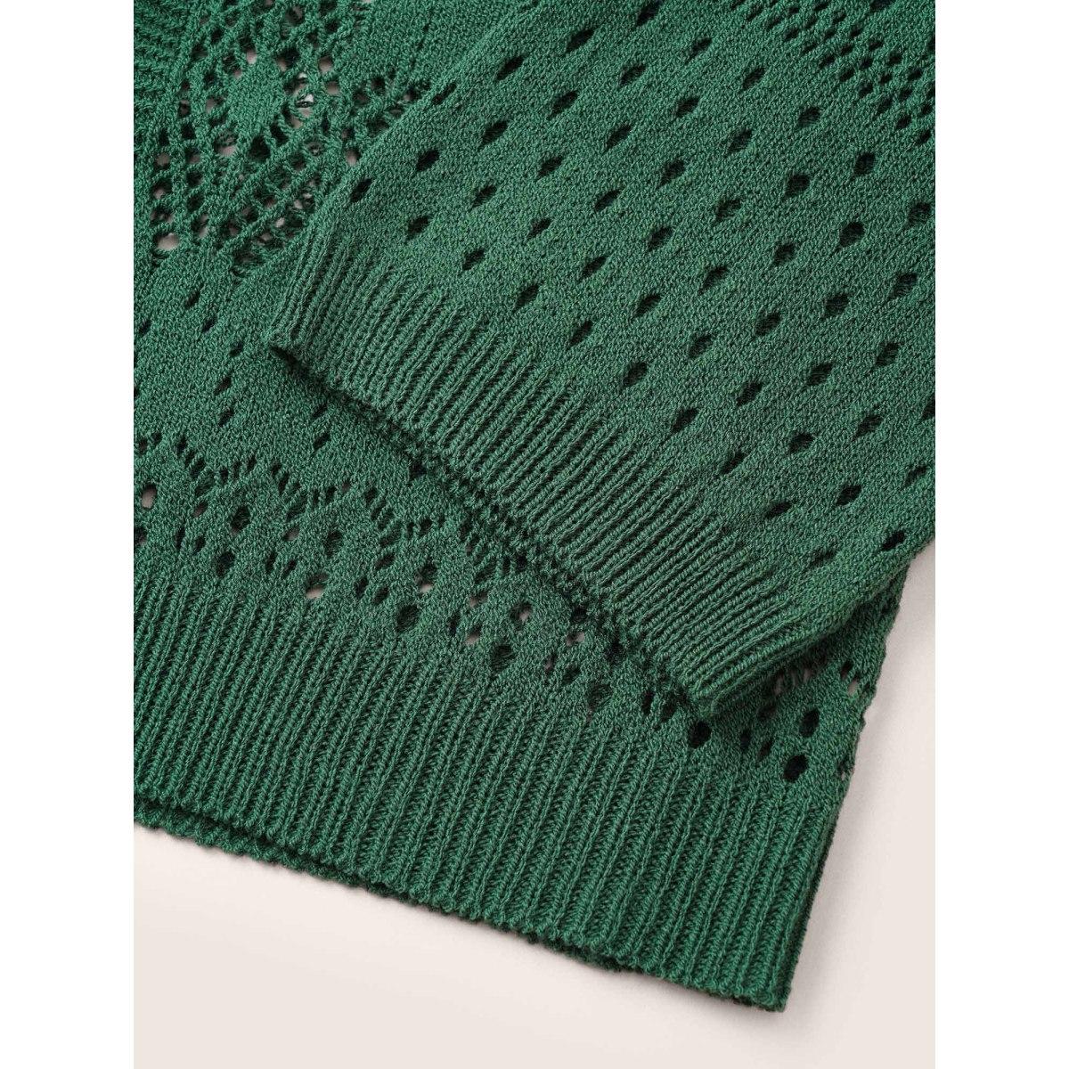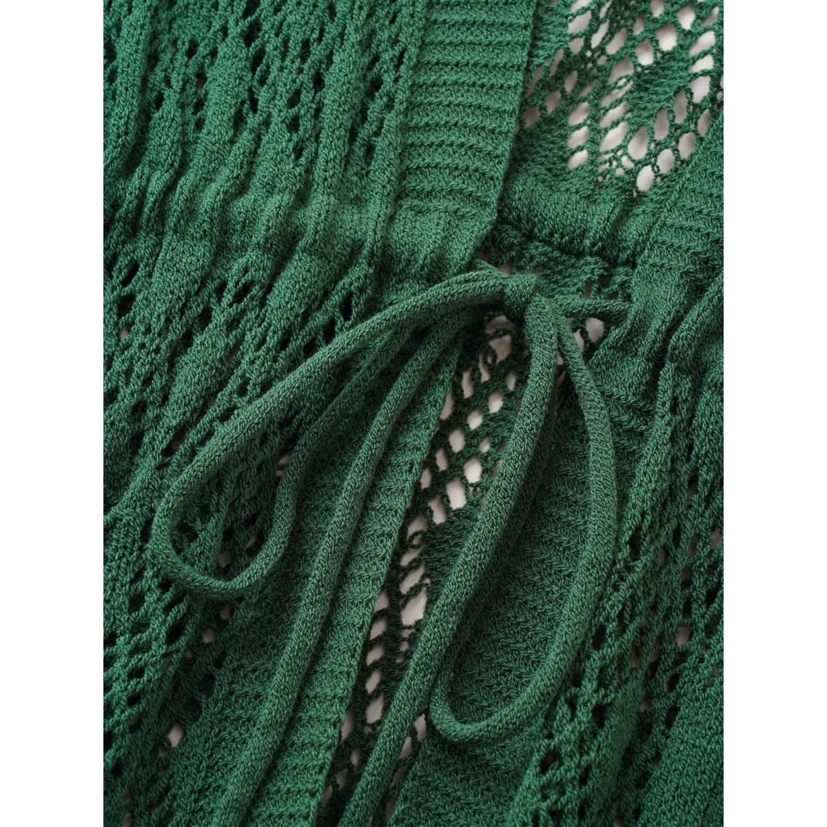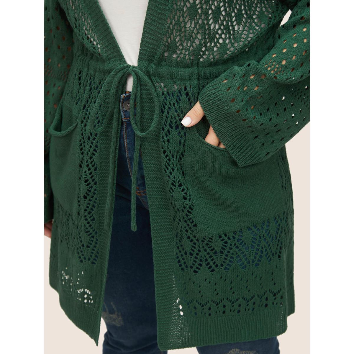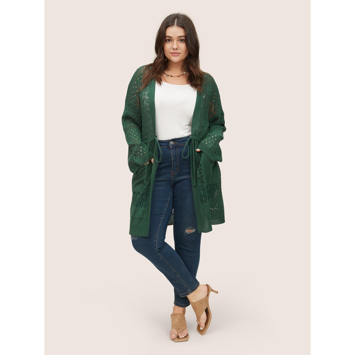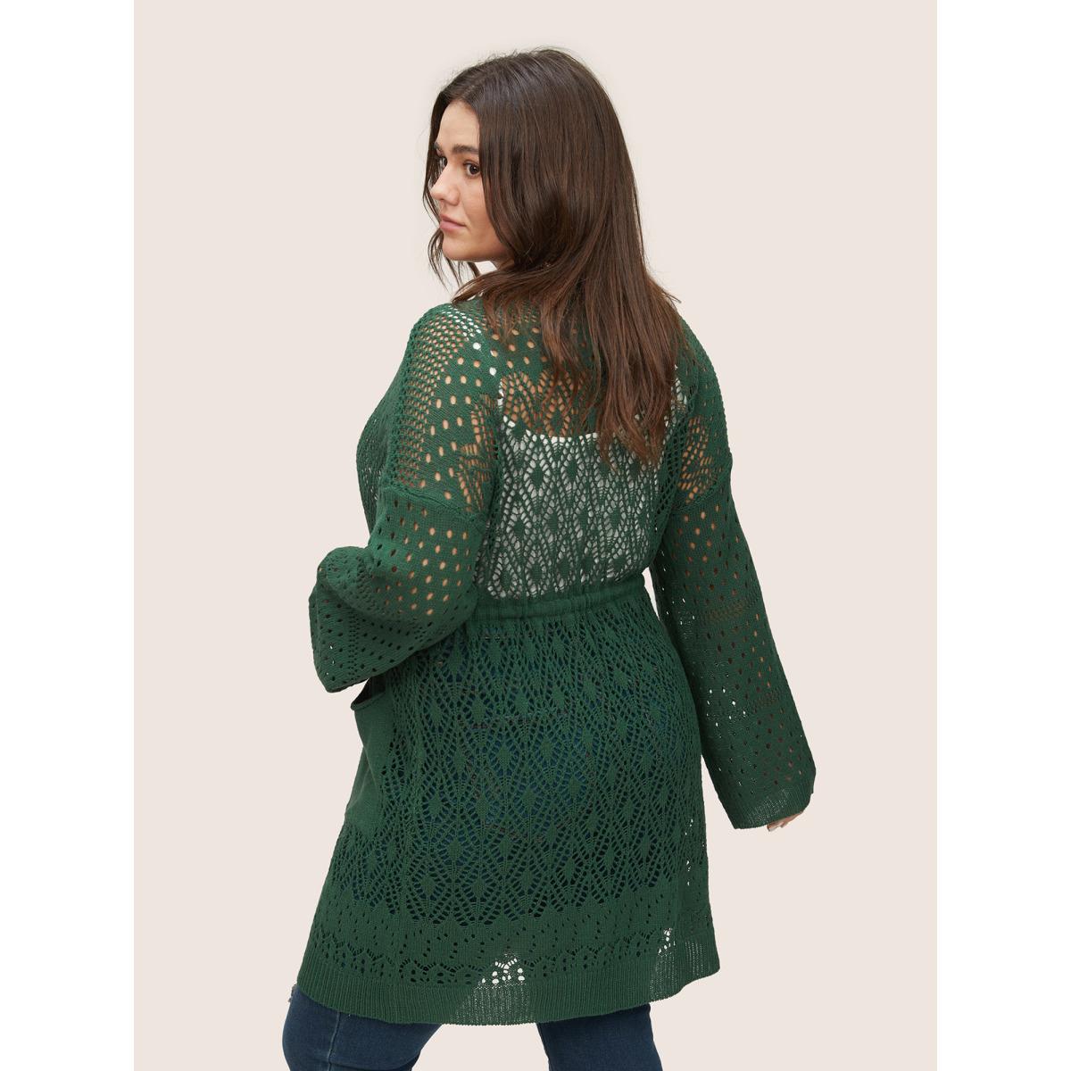 Plus Size Solid Drawstring Pocket Hollow Out Cardigan DarkGreen Women Everyday Elegant Cover Ups Bloomchic 14-16/1X