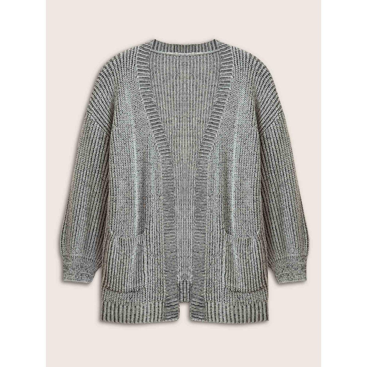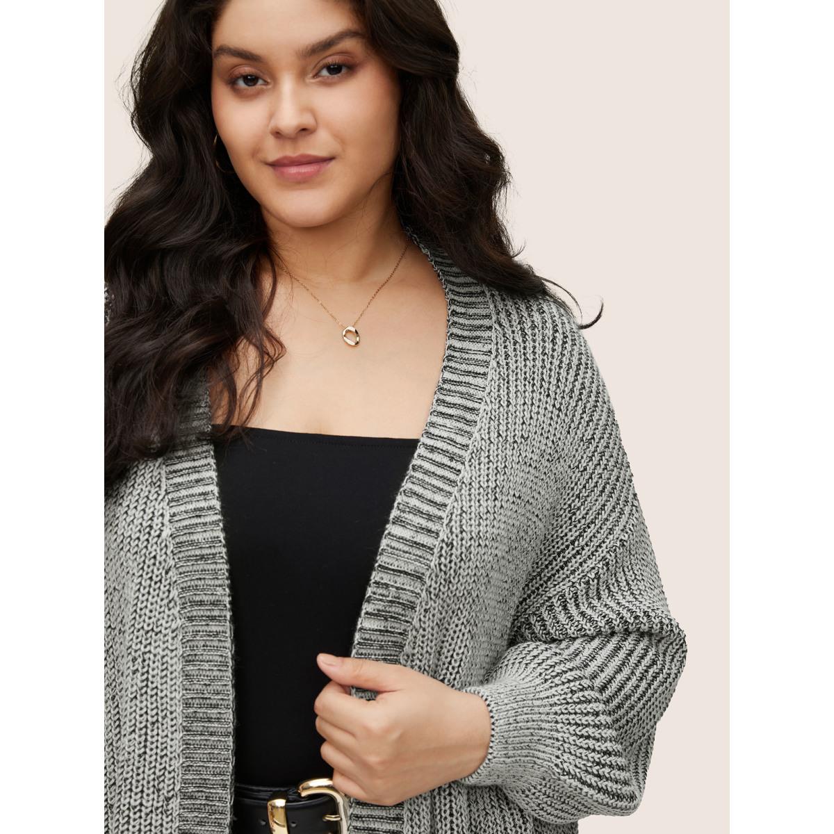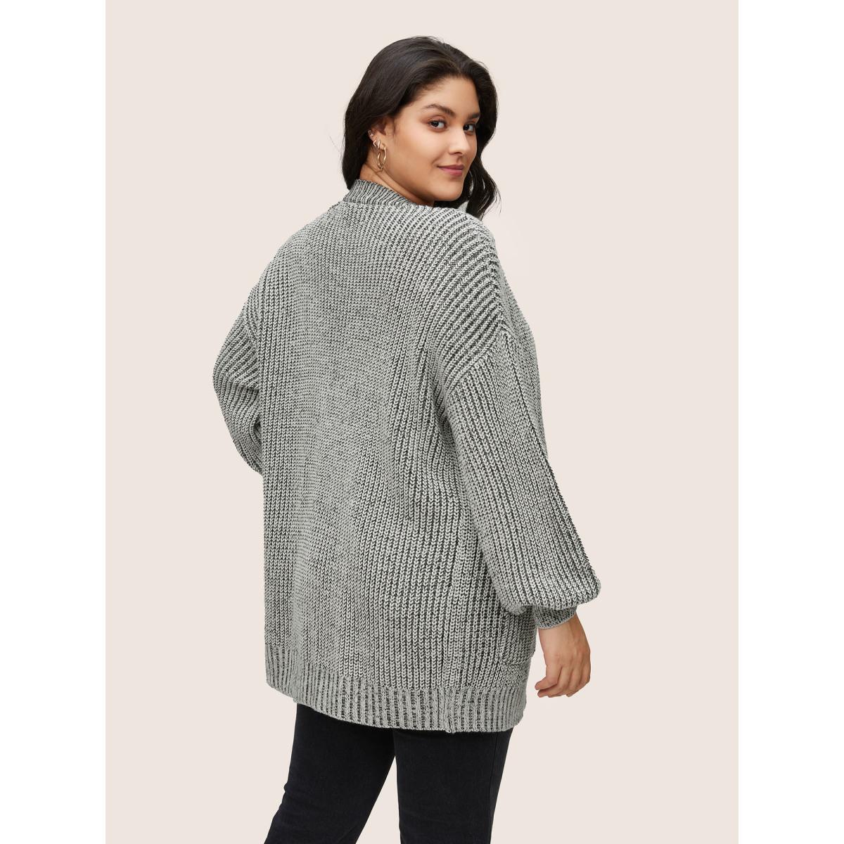 Plus Size Solid Drop Shoulder Puff Sleeve Knit Cardigan Silver Women Casual Loose Long Sleeve Everyday Cardigans BloomChic 30/6X
