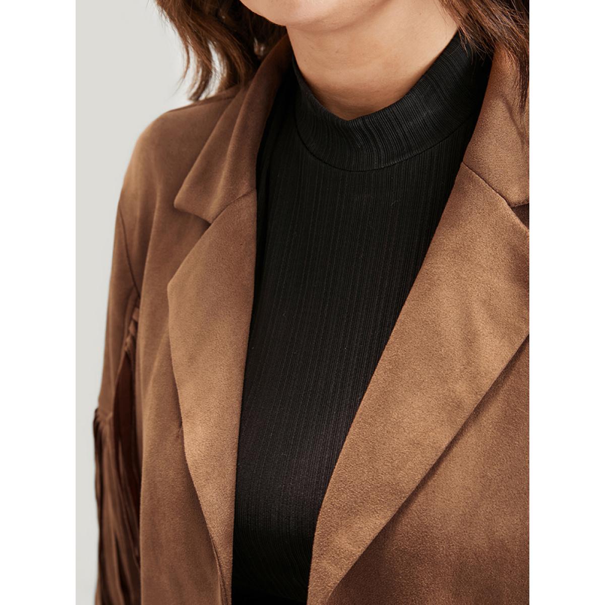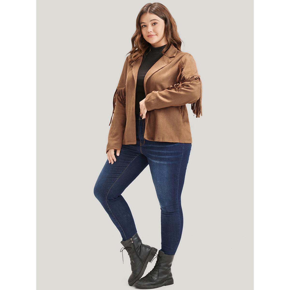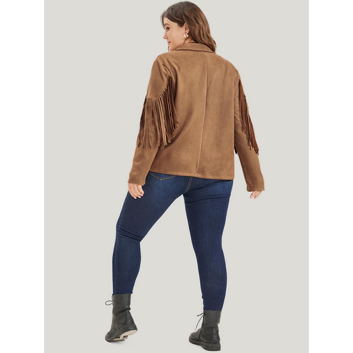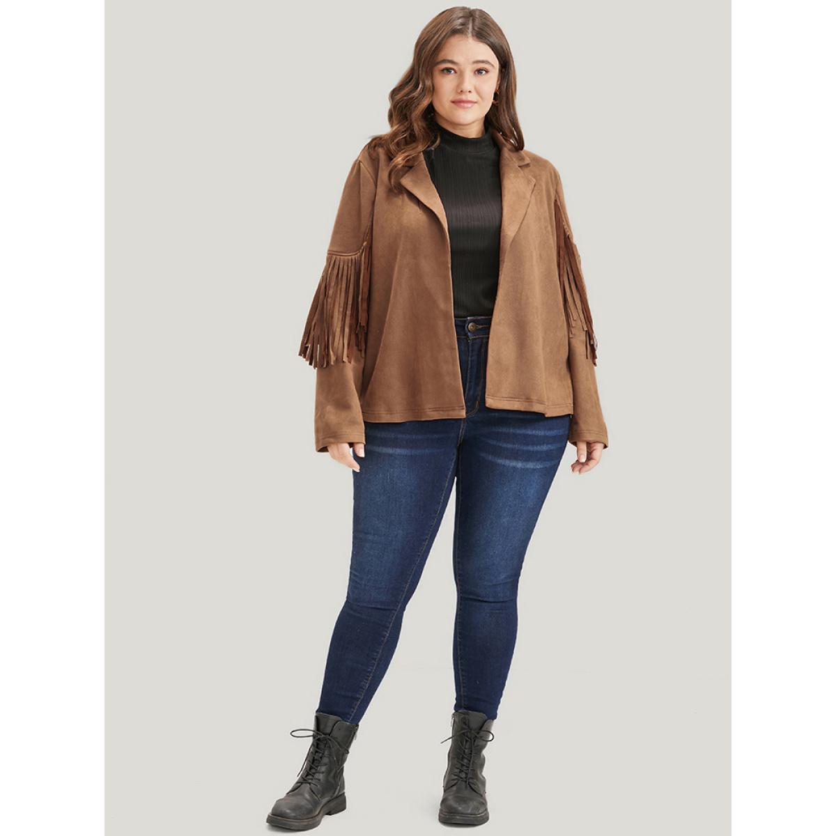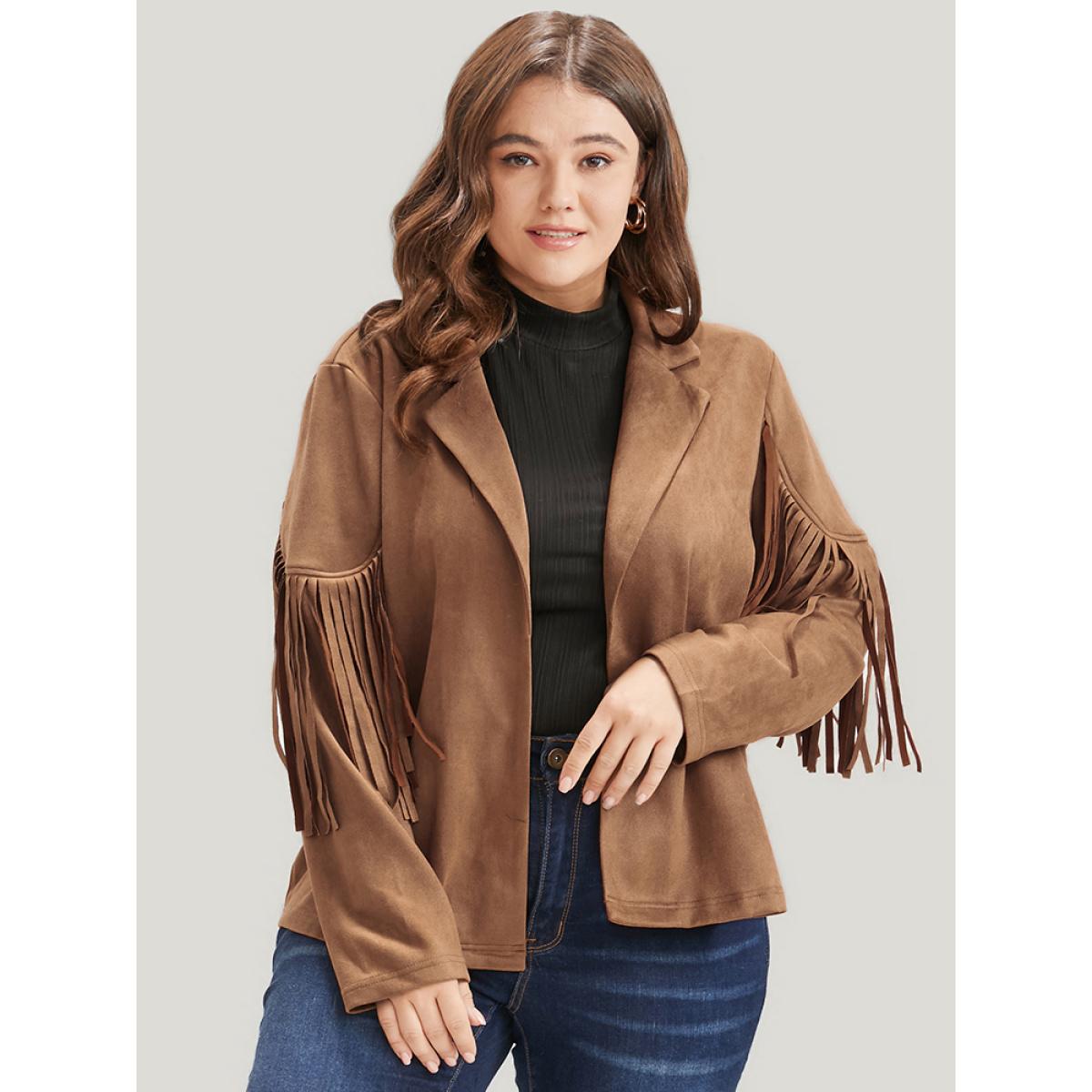 Plus Size Solid Fringe Trim Open Front Coat Women Bronze Party Tassels Ladies Going out Winter Coats BloomChic 14-16/1X