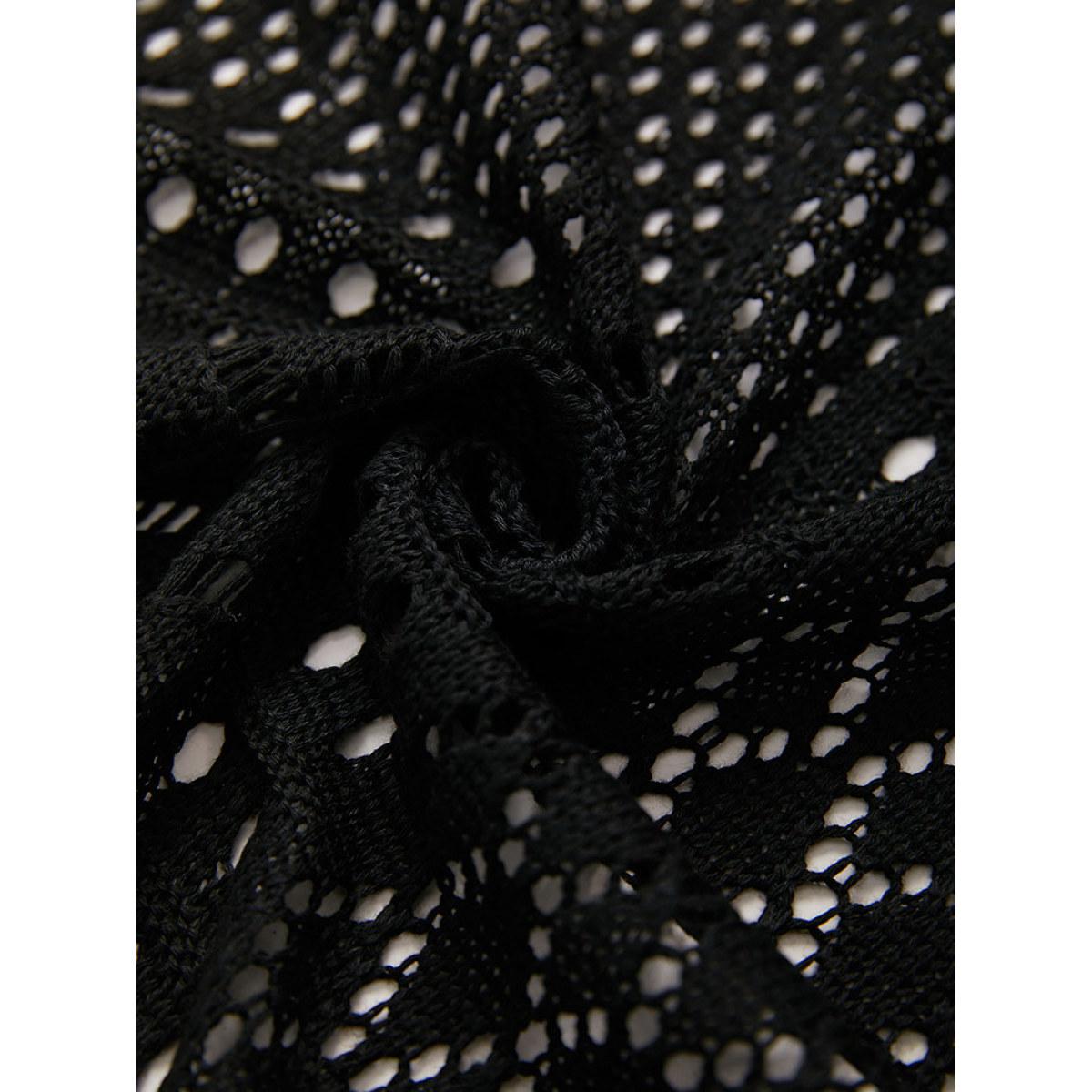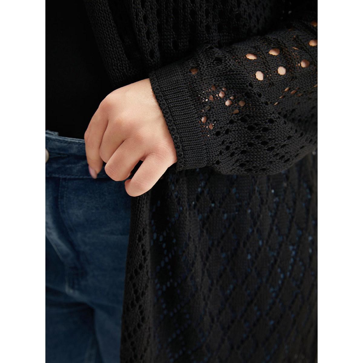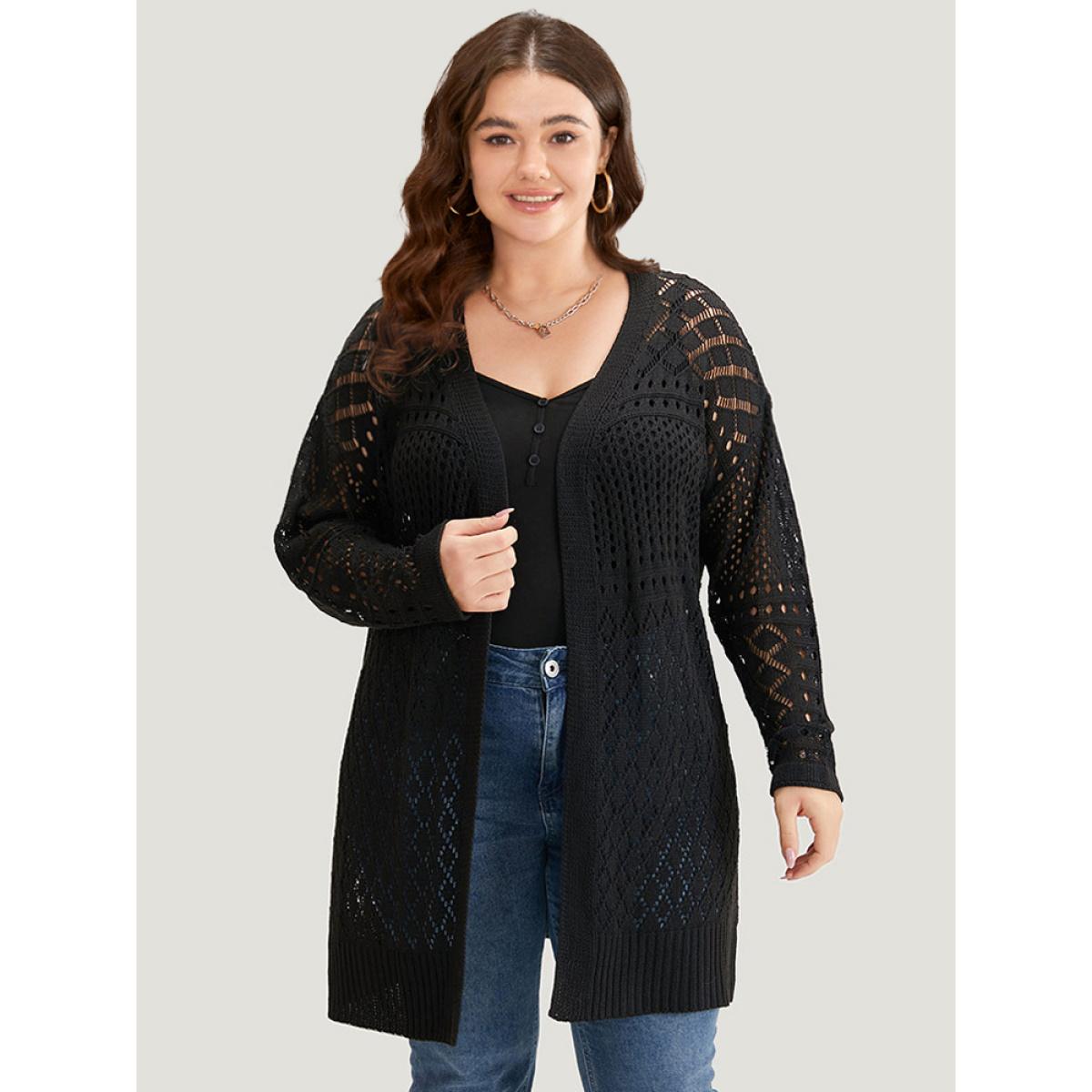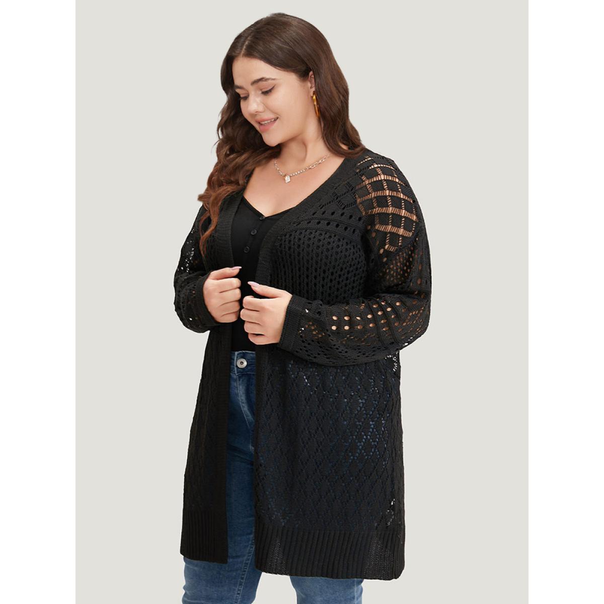Plus Size Solid Geometric Eyelet Batwing Sleeve Elastic Cuffs Cardigan Black Women Basics Loose Long Sleeve Everyday Cardigans BloomChic 10/M