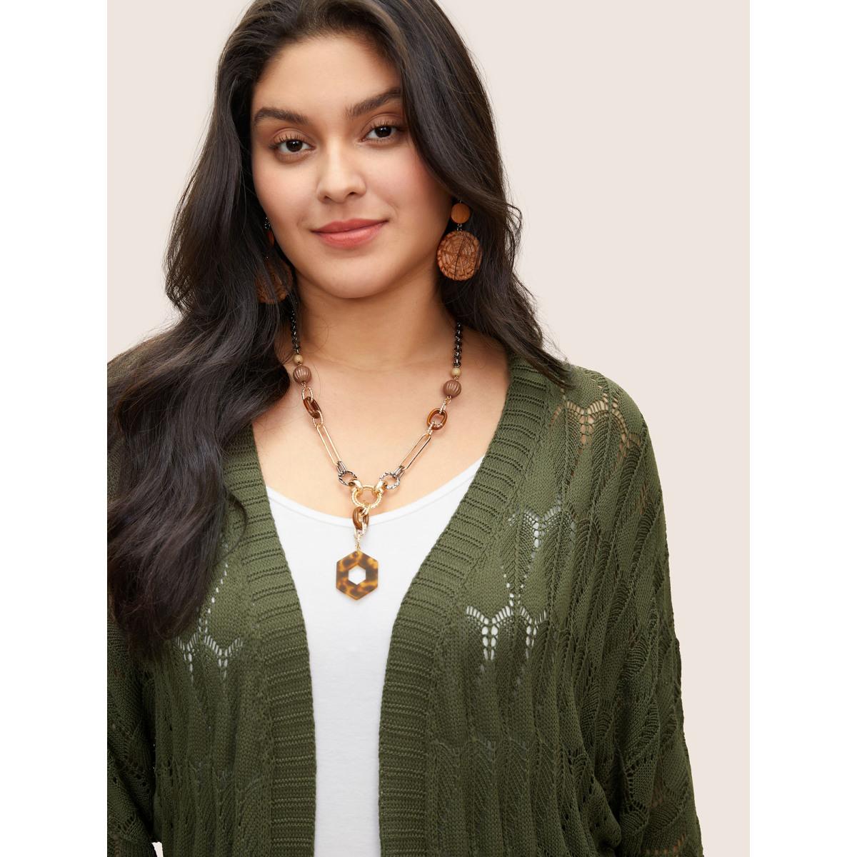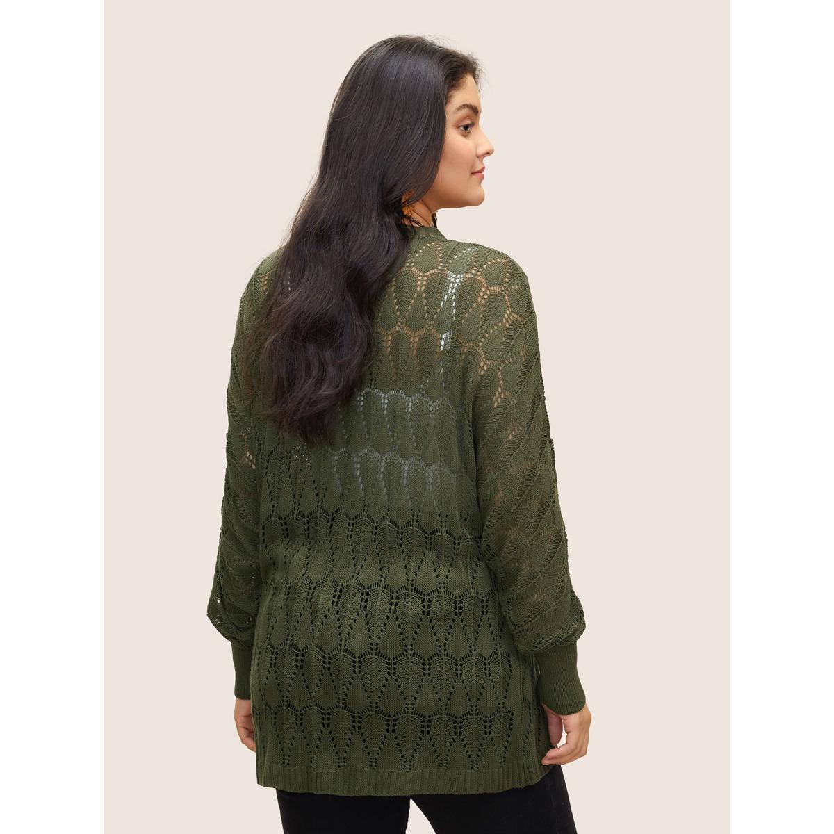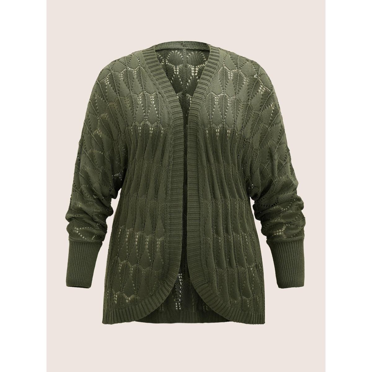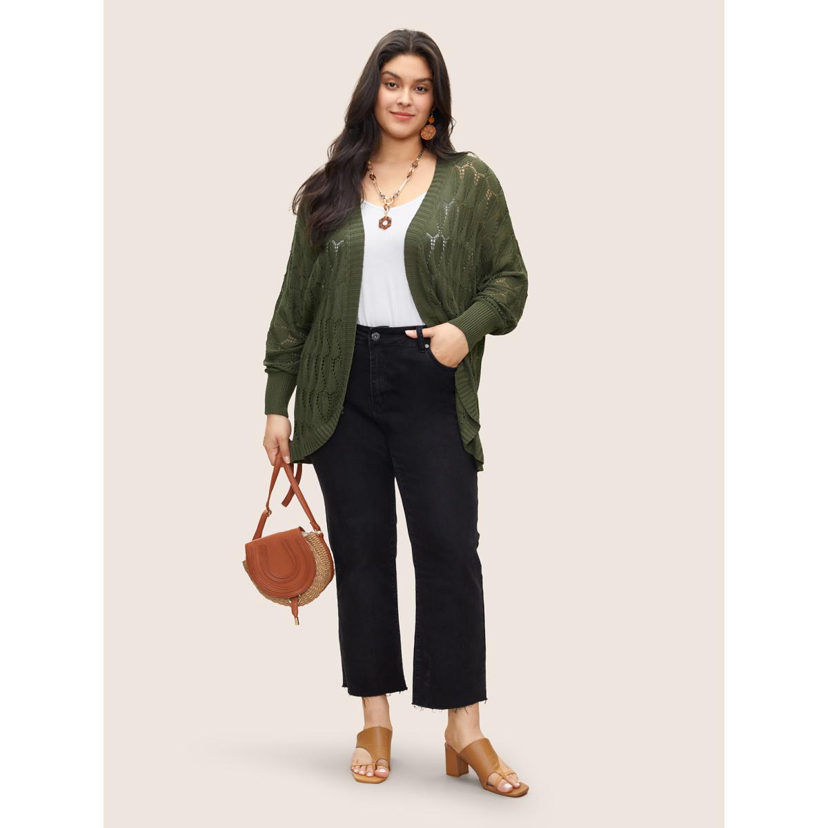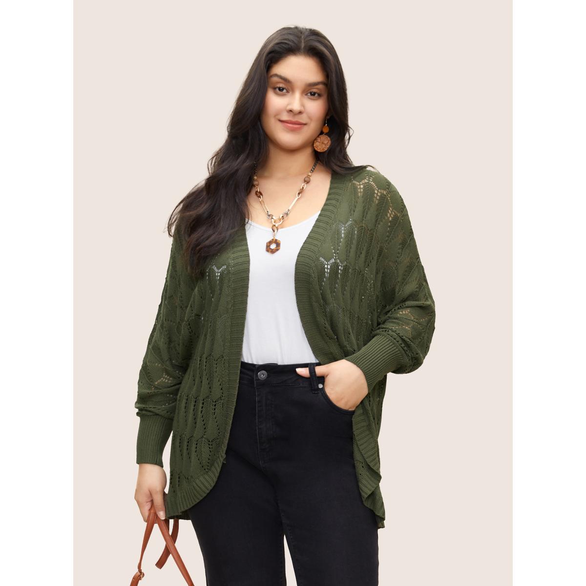 Plus Size Solid Geometric Hollow Out Batwing Sleeve Cardigan ArmyGreen Women Everyday Casual Cover Ups Bloomchic 14-16/1X