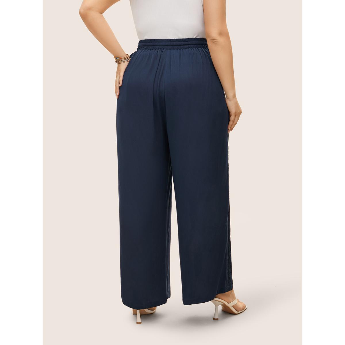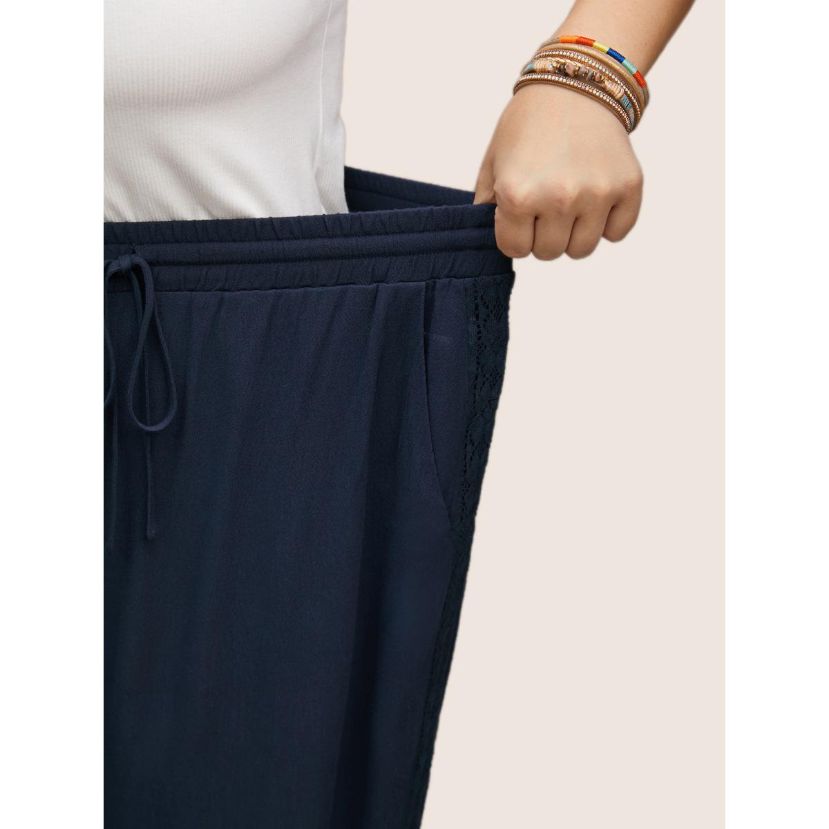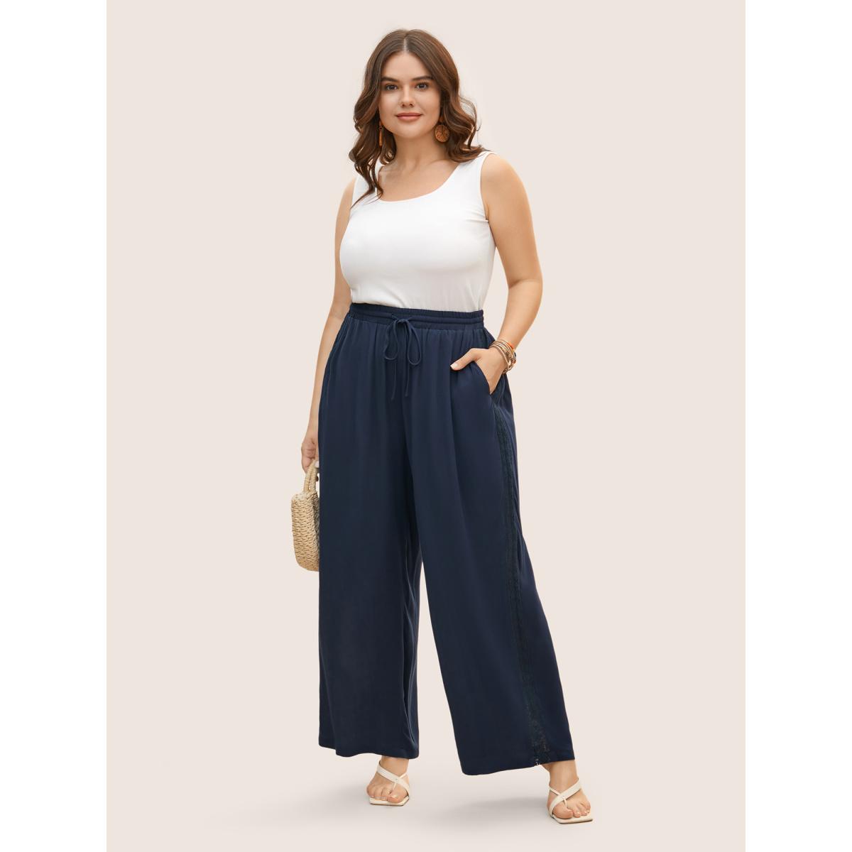 Plus Size Solid Lace Patchwork Elastic Waist Wide Leg Pants Women Aegean Resort Wide Leg Mid Rise Vacation Pants BloomChic 14-16/1X