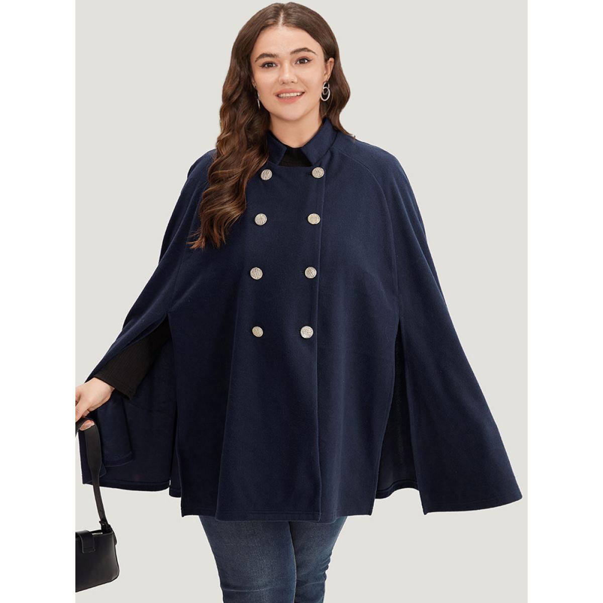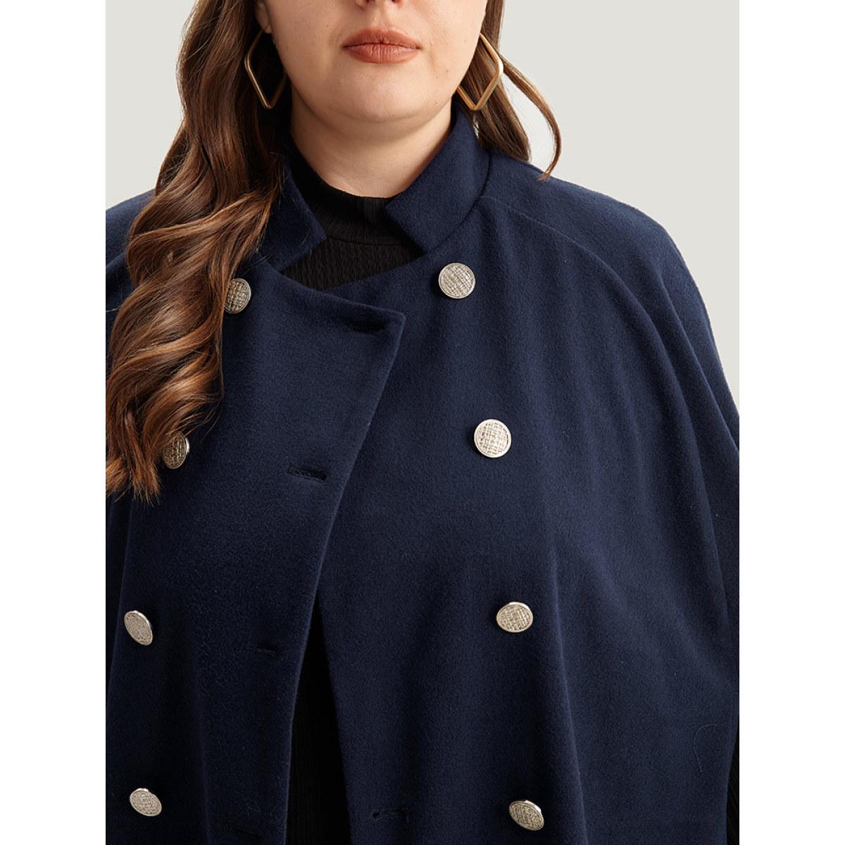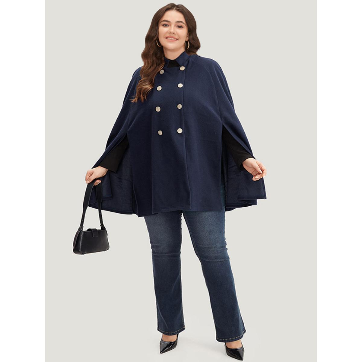 Plus Size Solid Metal Detail Cape Blazer Women Indigo Office Plain Ladies Work Winter Coats BloomChic 14-16/1X