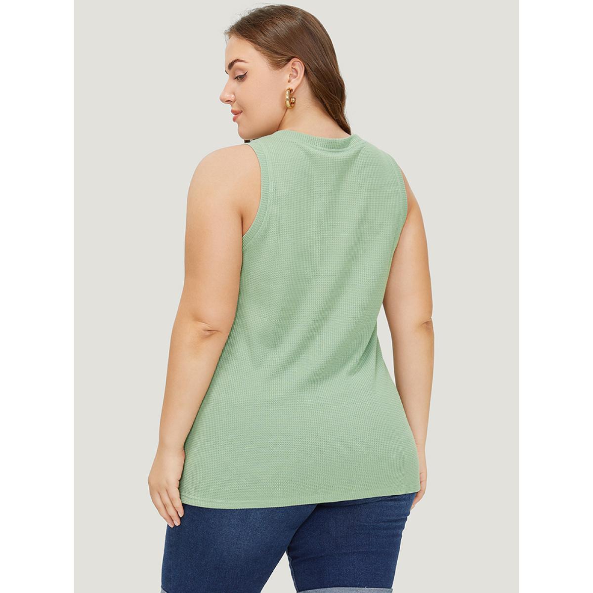 Plus Size Waffle Knit V Neck Button Detail Cami Top Women Green Casual Waffle Knit V-neck Dailywear Tank Tops Camis BloomChic 30/6X
