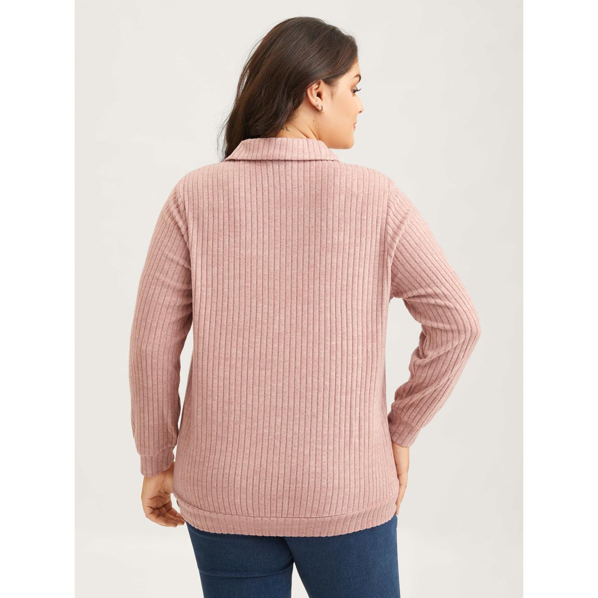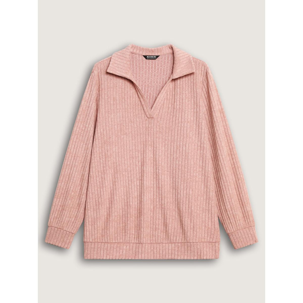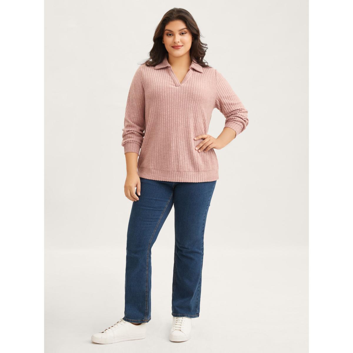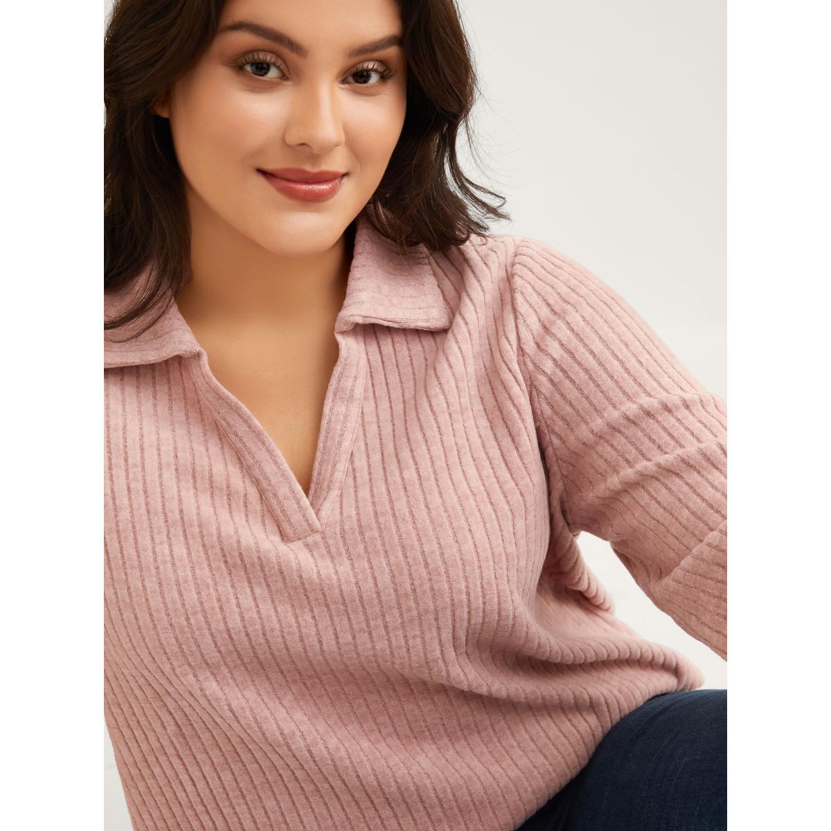 Plus Size Solid Pit Strip Stretch Sweatshirt Women Rouge Leisure Texture V-neck Casual Sweatshirts BloomChic 18-20/2X Product Image