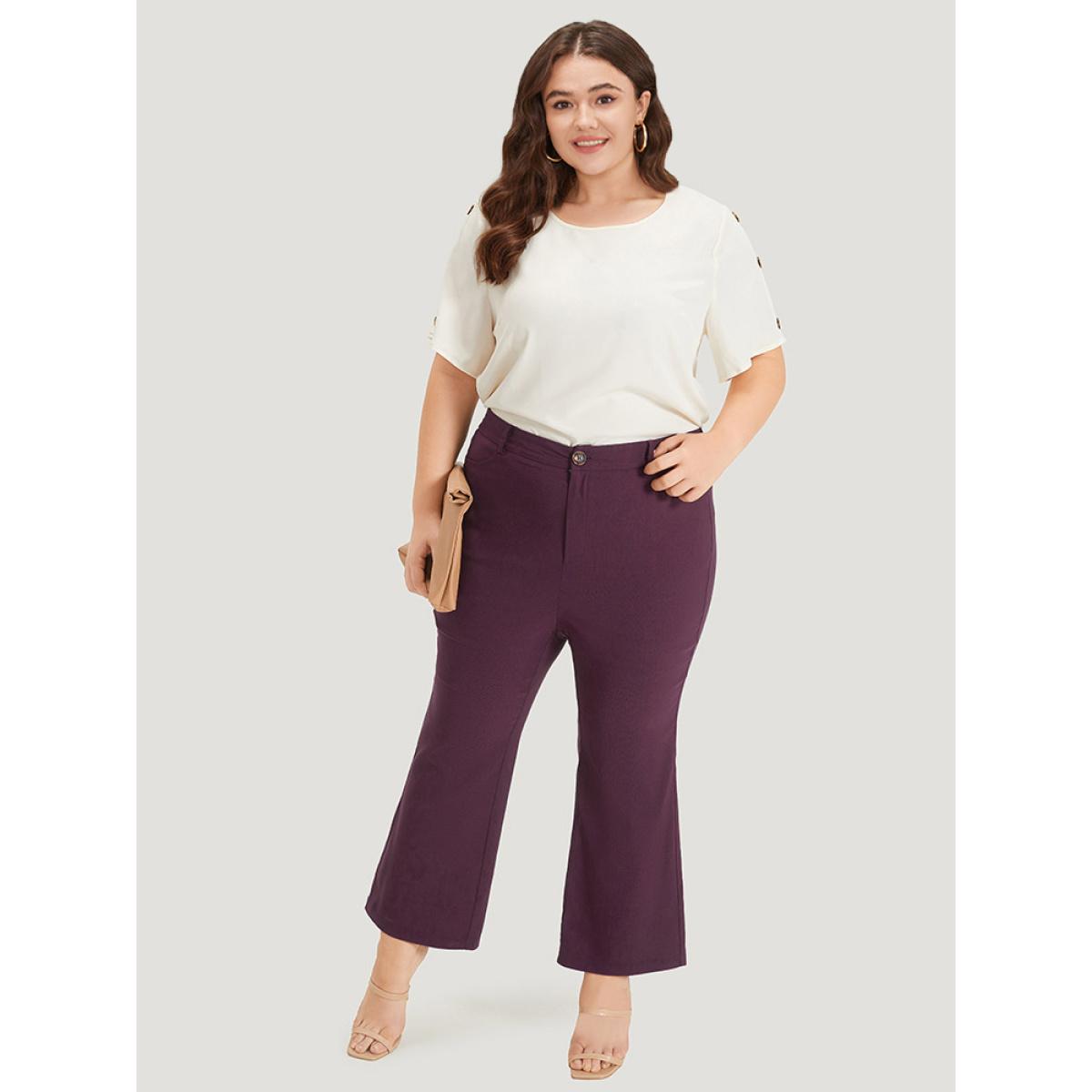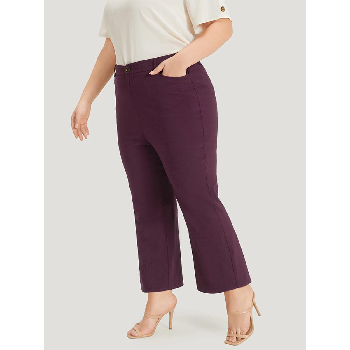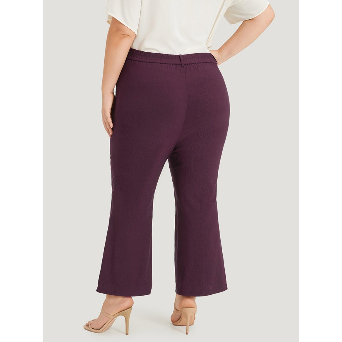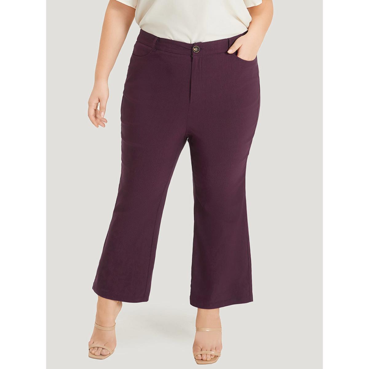 Plus Size Solid Pocket Bootcut Ankle Pants Women Eggplant Office Bootcut High Rise Work Pants BloomChic 10/M