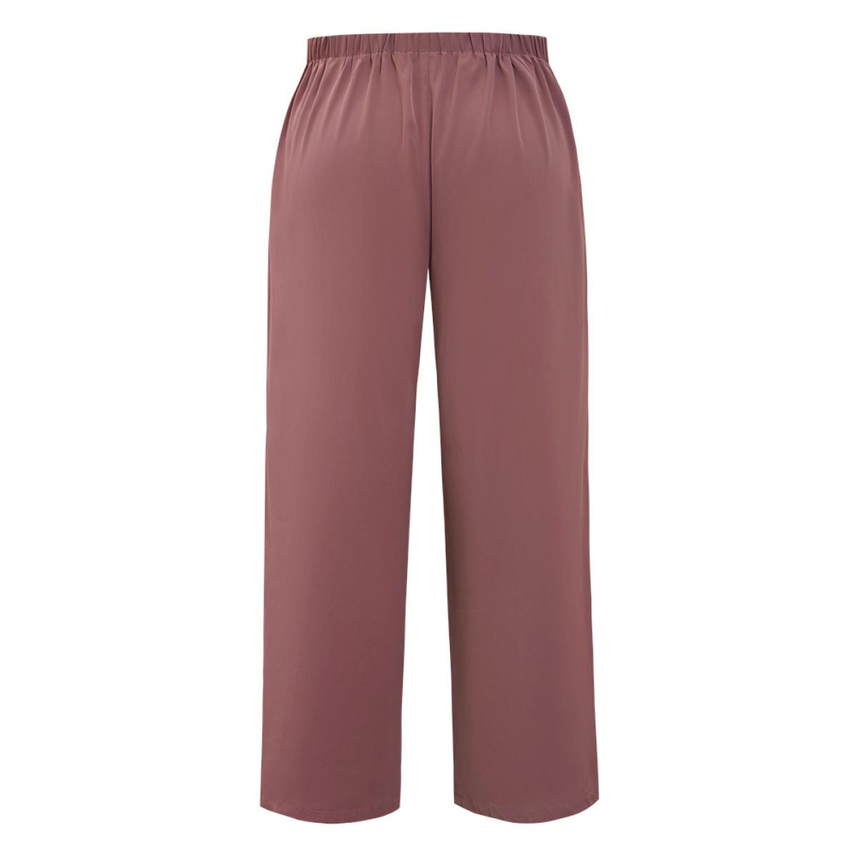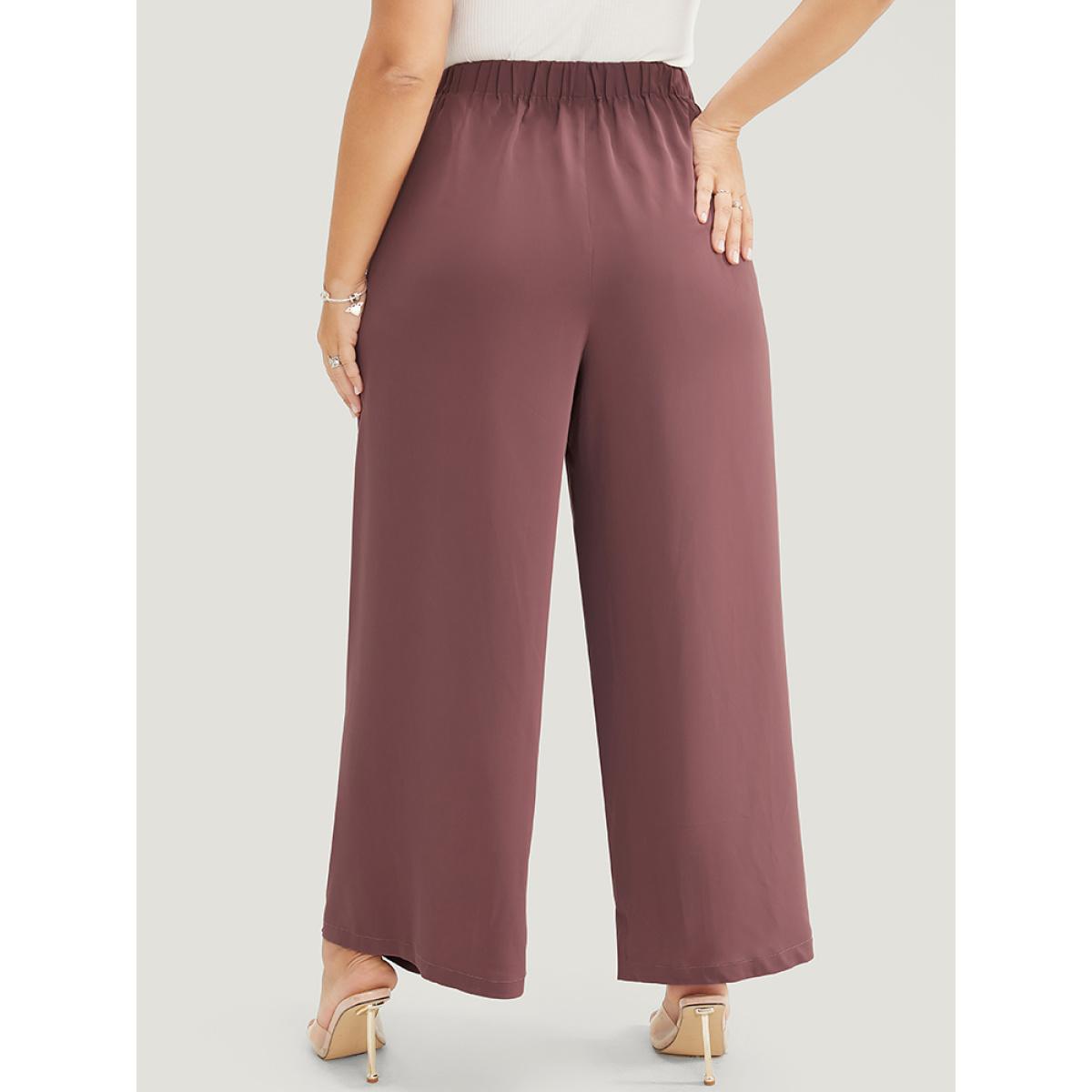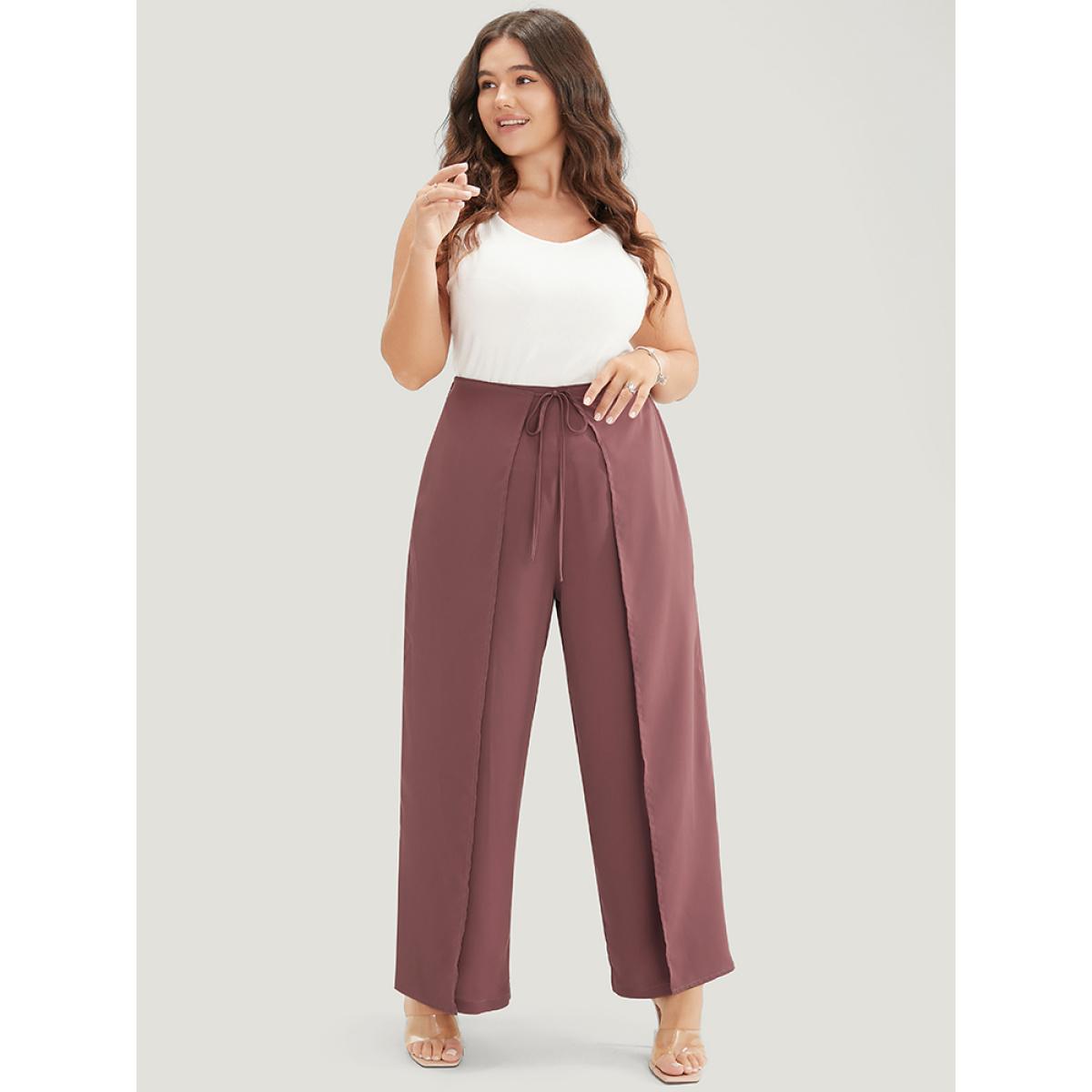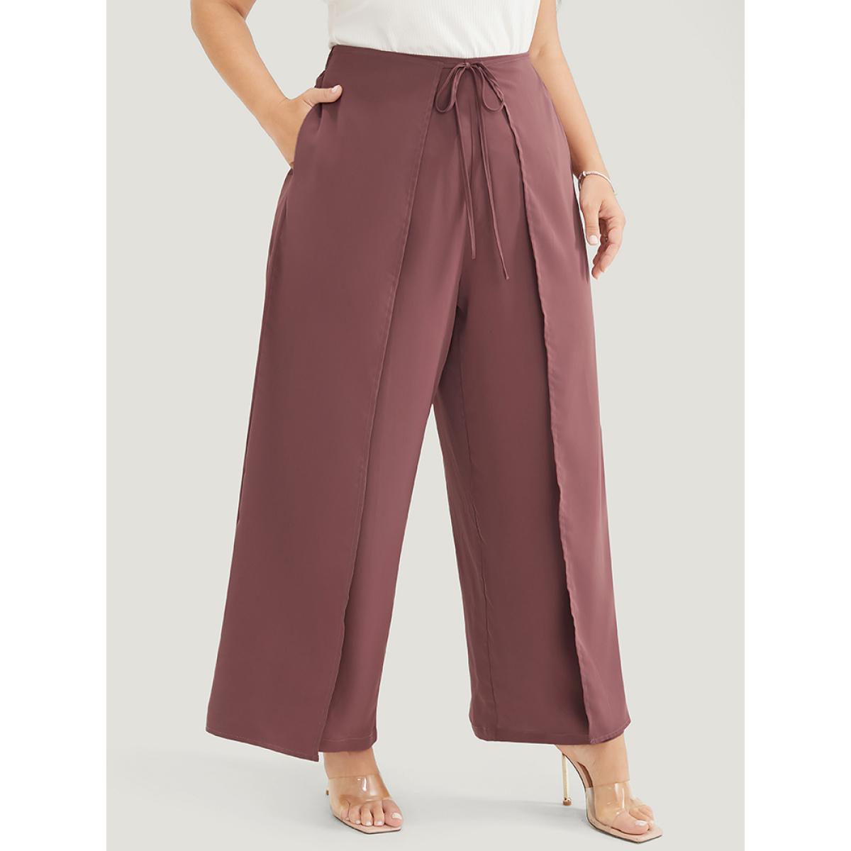 Plus Size Solid Pocket Cape Detail Ties Pants Women Mauve Elegant Mid Rise Dailywear Pants BloomChic 28/5X