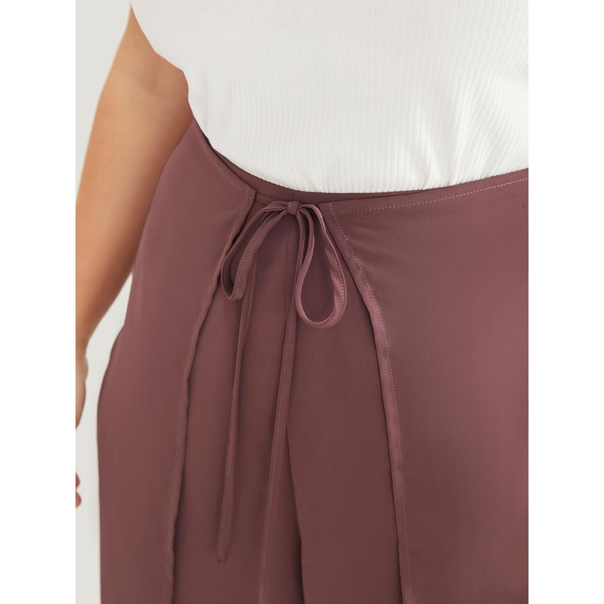 Plus Size Solid Pocket Cape Detail Ties Pants Women Mauve Elegant Mid Rise Dailywear Pants BloomChic 28/5X Product Image