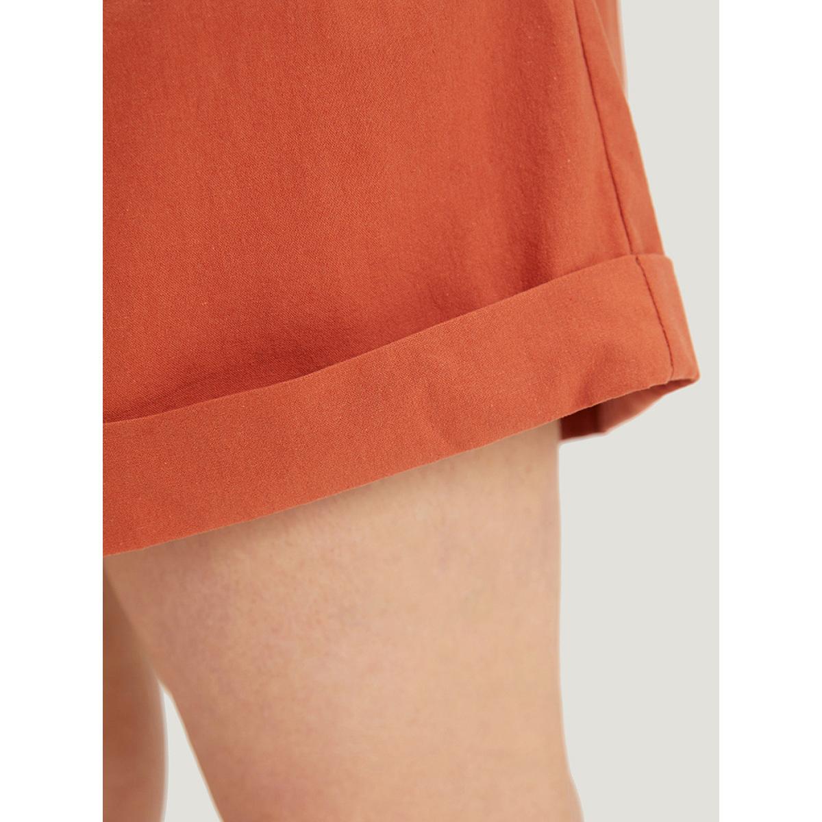 Plus Size Solid Pocket Pleated Roll Hem Button Detail Shorts Women Rust Elegant Plain Dailywear Shorts BloomChic 14-16/1X