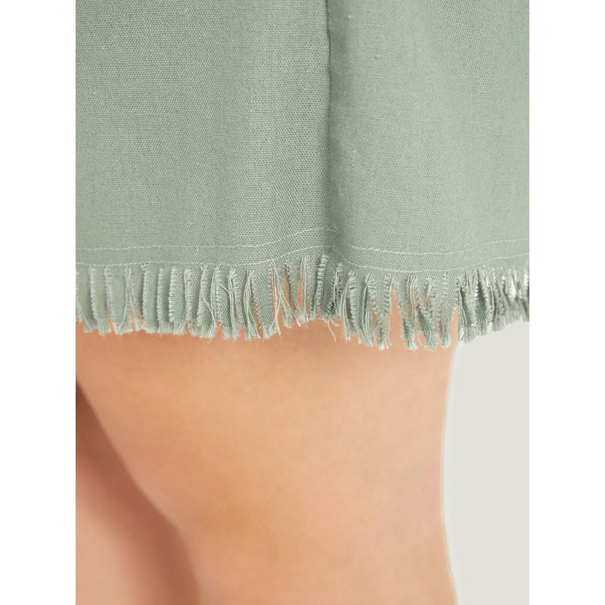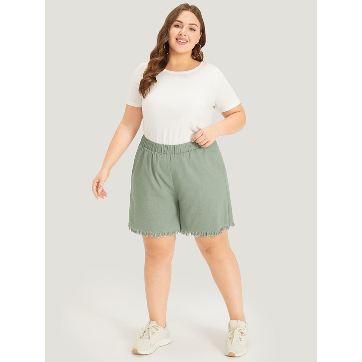 Plus Size Solid Pocket Raw Edges Elastic Waist Shorts Women Mint Casual Plain Dailywear Shorts BloomChic 22-24/3X