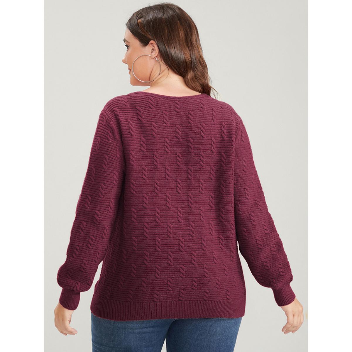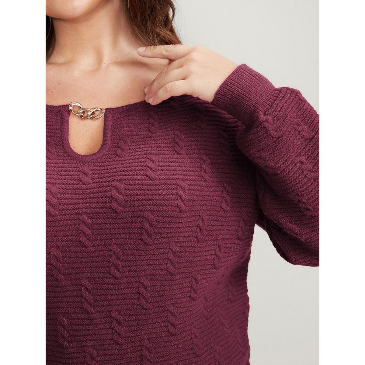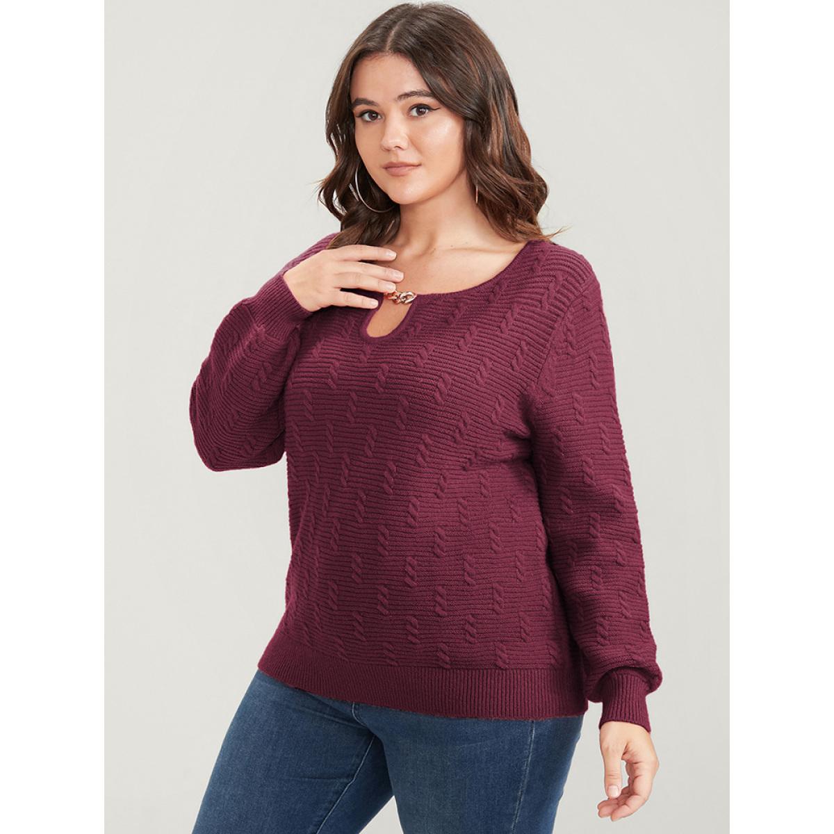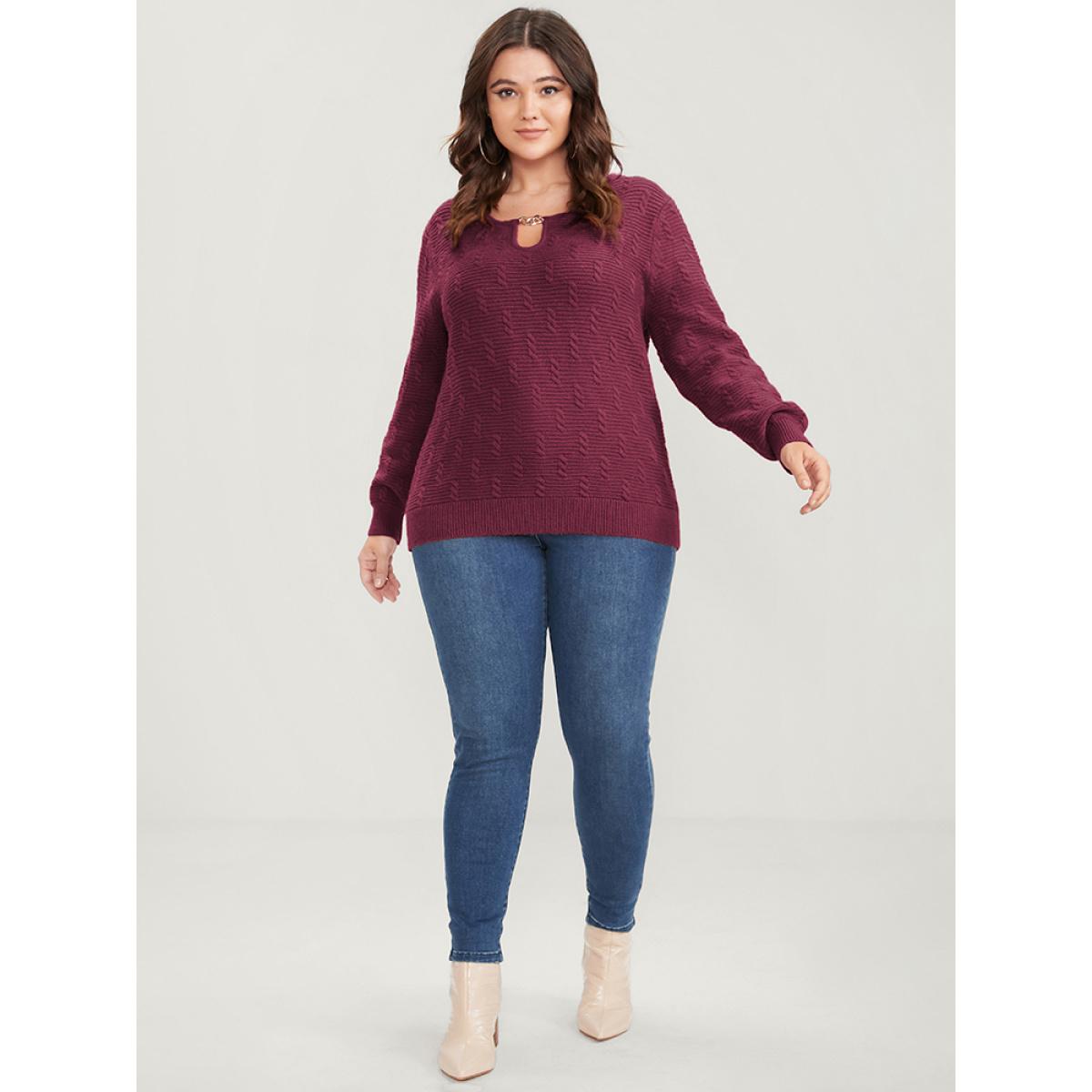 Plus Size Solid Pointelle Knit Chain Neck Knit Top Rouge Women Elegant Long Sleeve Round Neck Dailywear Pullovers BloomChic 30/6X