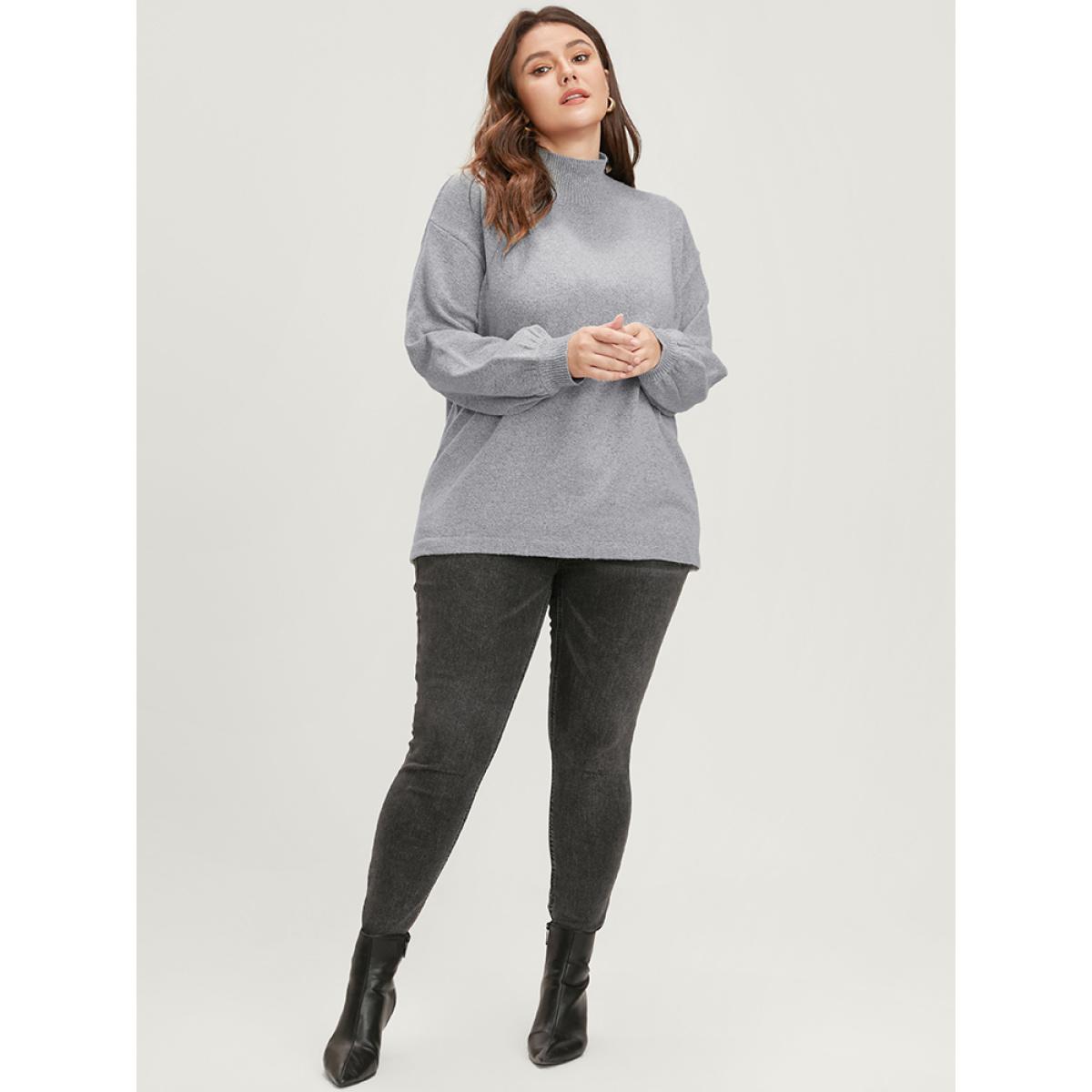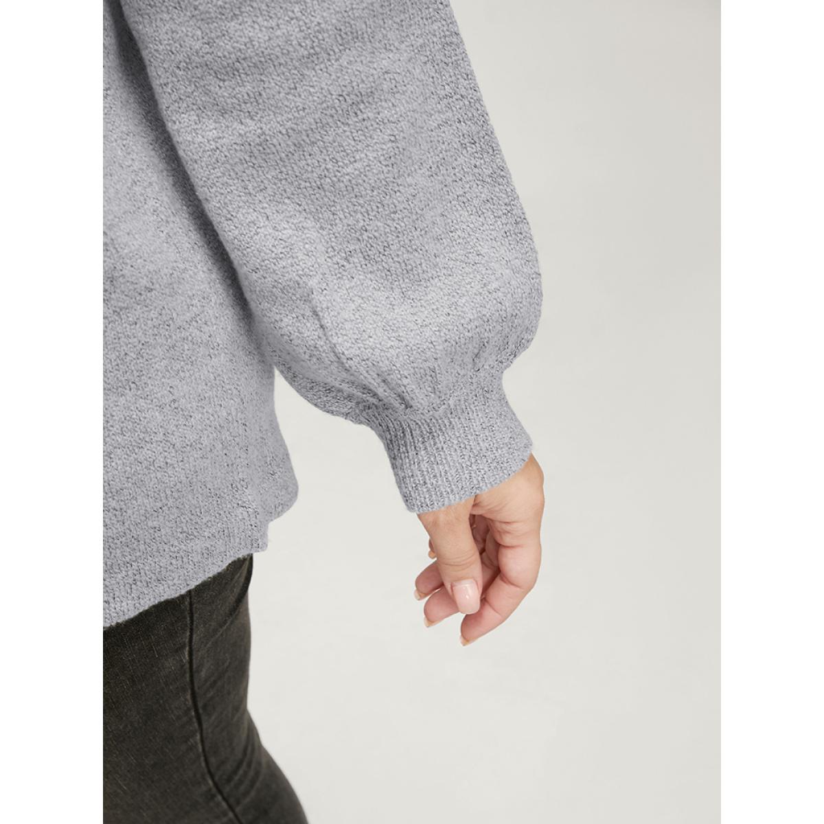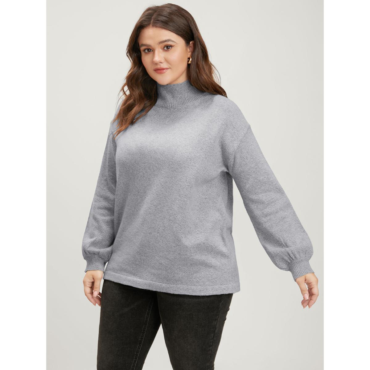 Plus Size Solid Pointelle Knit Lantern Sleeve Mock Neck Heather Knit Top LightGray Women Casual Long Sleeve Mock Neck Dailywear Pullovers BloomChic 30/6X