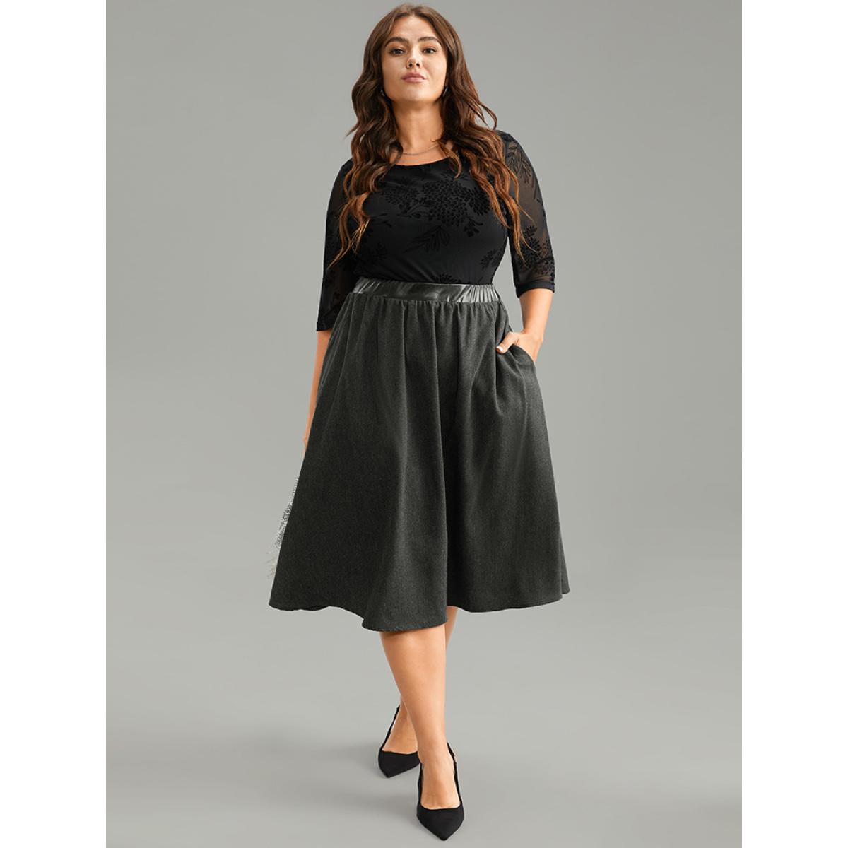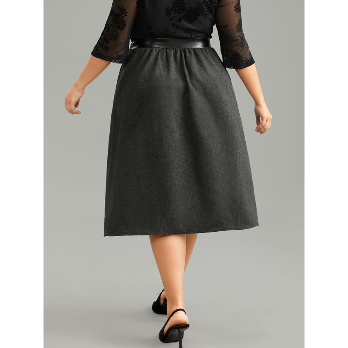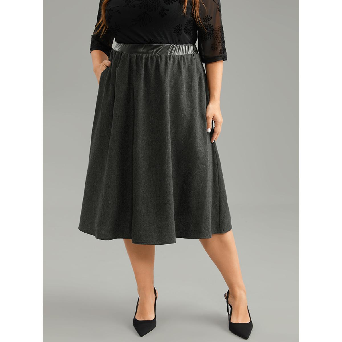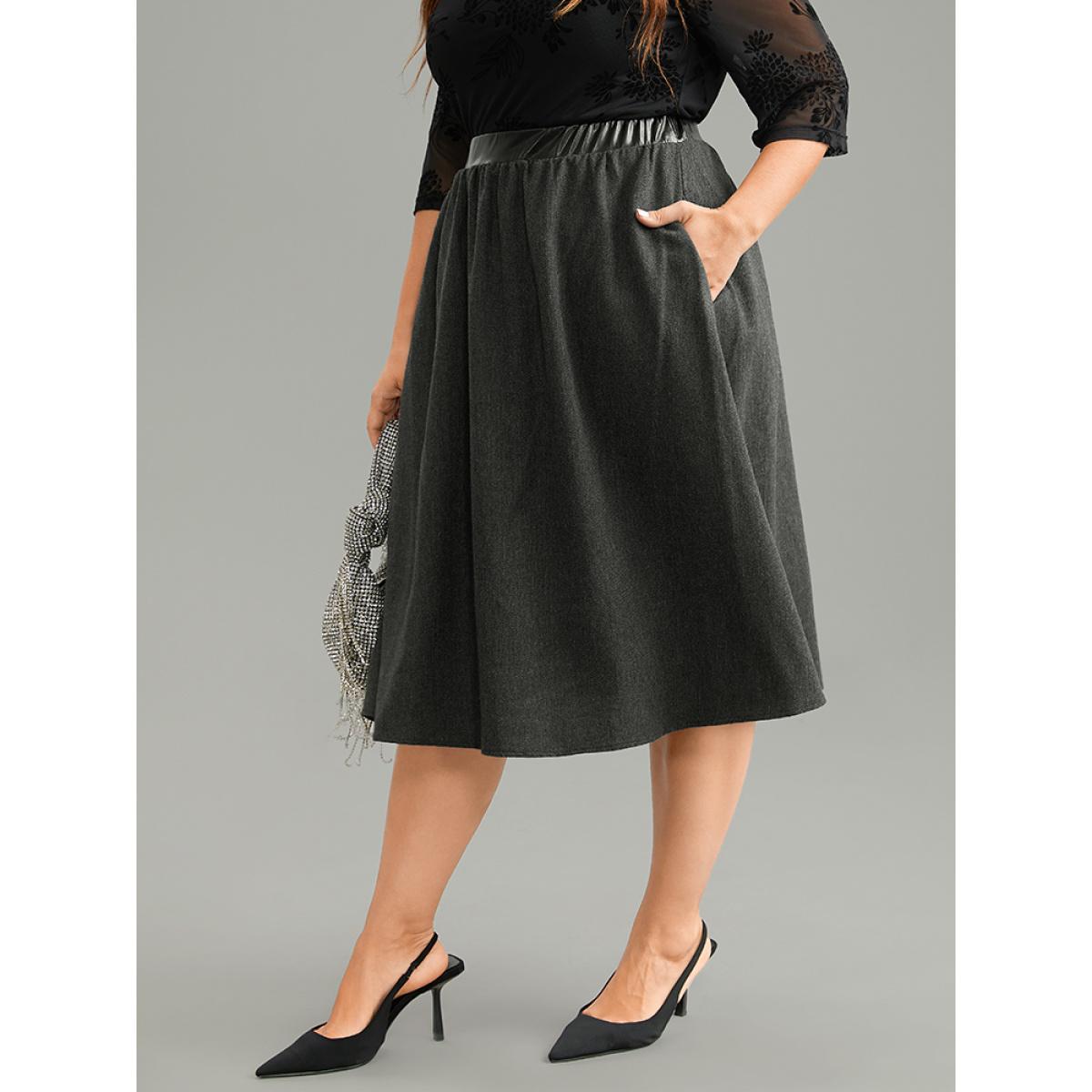 Plus Size Solid PU Patchwork Pocket Elastic Waist Skirt Women DimGray Office Texture No stretch Pocket Office Skirts BloomChic 28/5X