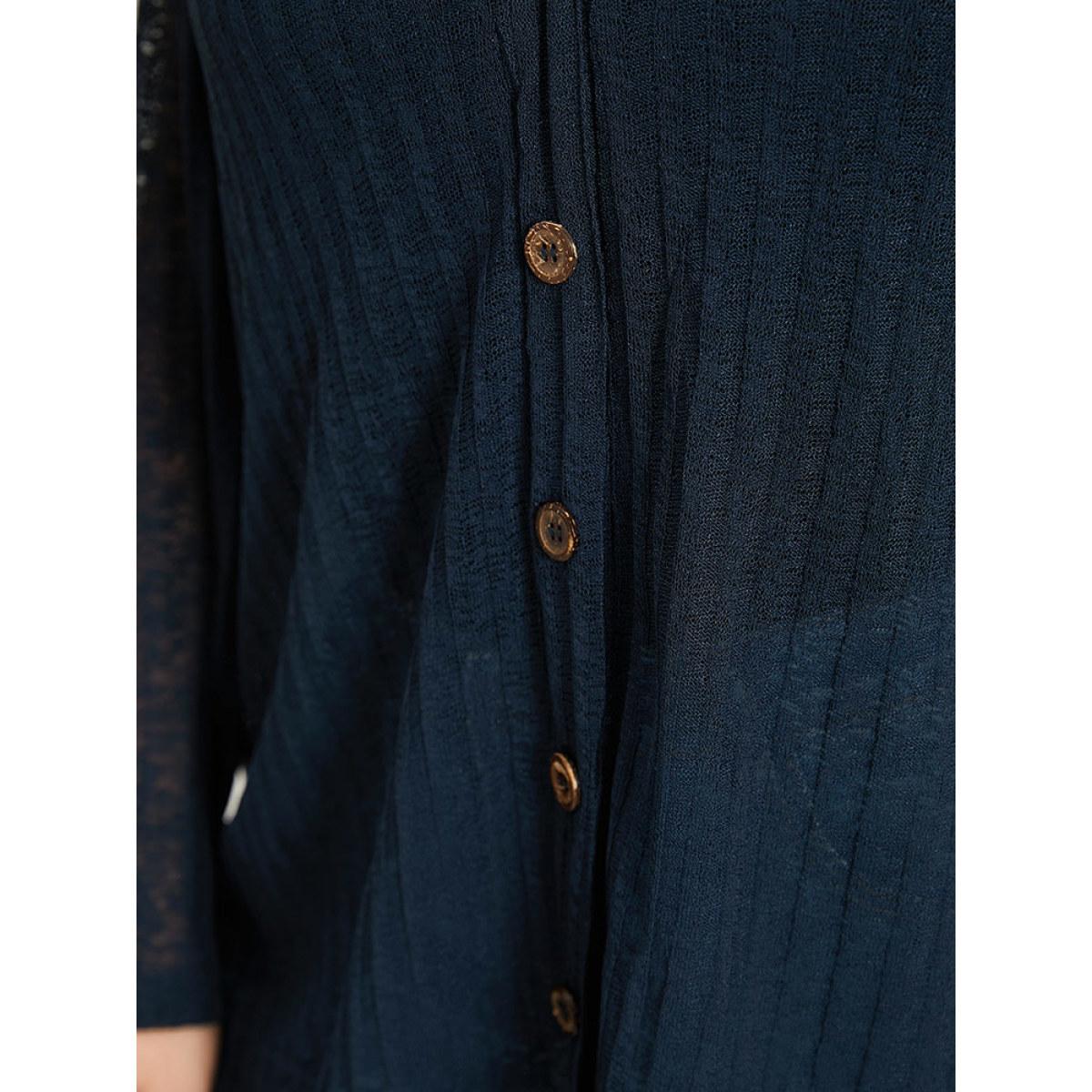 Plus Size Solid Rib Knit Button Through Mesh Kimono Women DarkBlue Casual See through Dailywear Kimonos BloomChic 14-16/1X