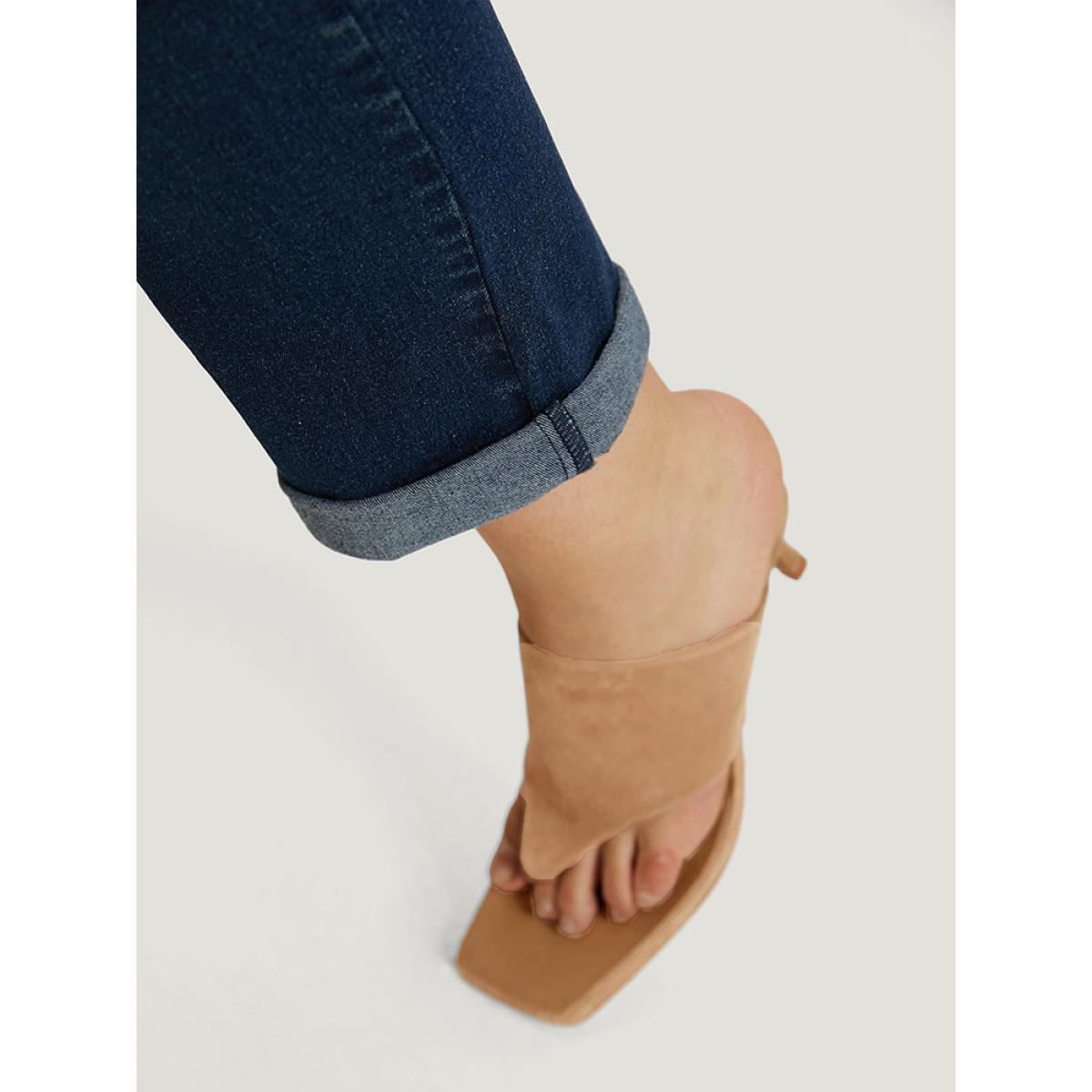Plus Size Very Stretchy Pocket Dark Wash Roll Hem Jeans Women Midnight Casual Plain Roll Hem High stretch Pocket Jeans BloomChic 26/4X