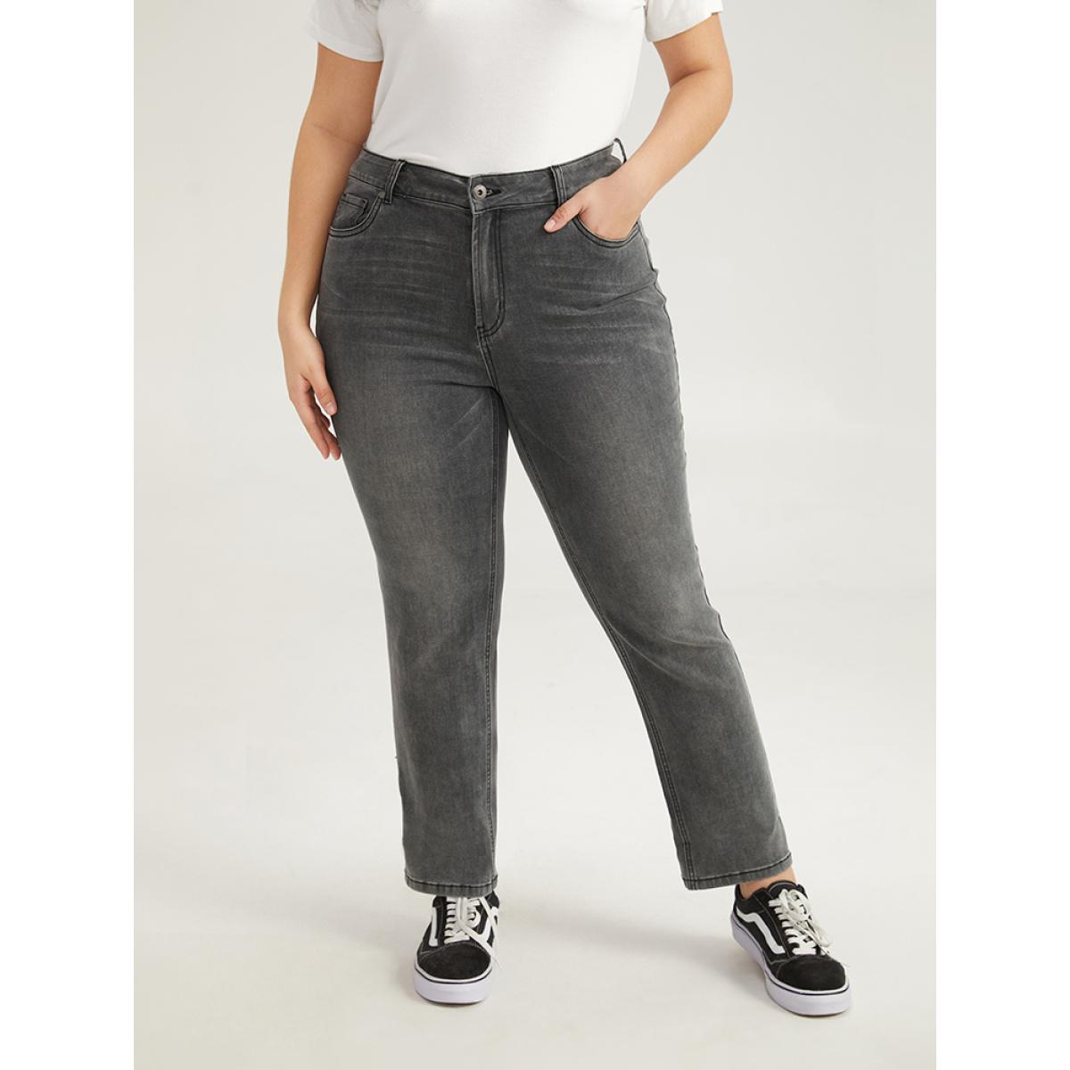 Plus Size Straight Leg Very Stretchy High Rise Dark Wash Jeans Women Gray Casual Plain High stretch Pocket Jeans BloomChic 12/L