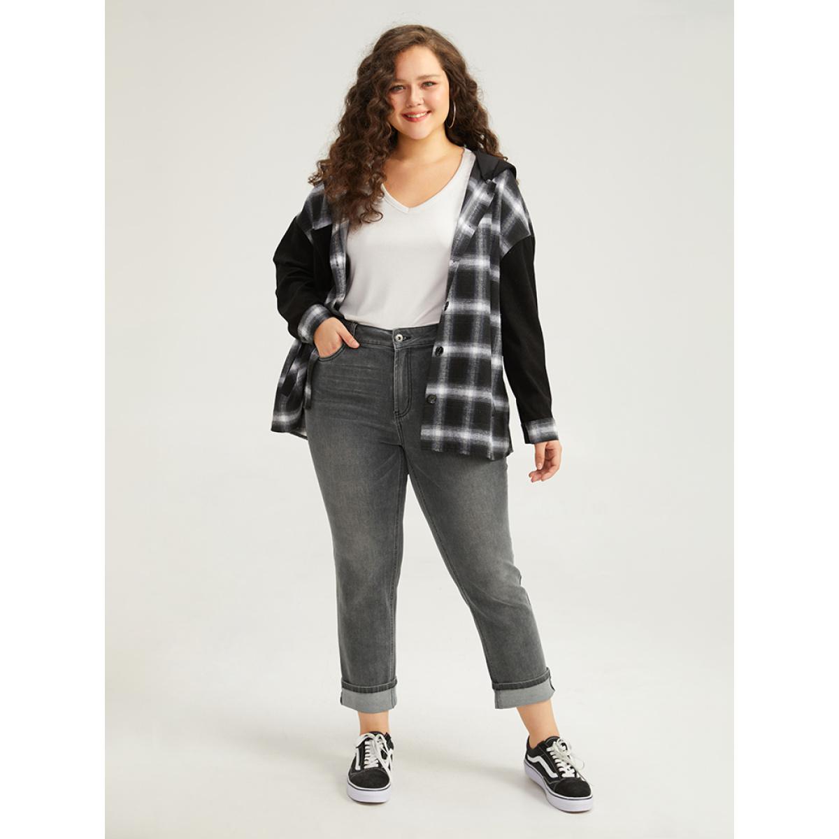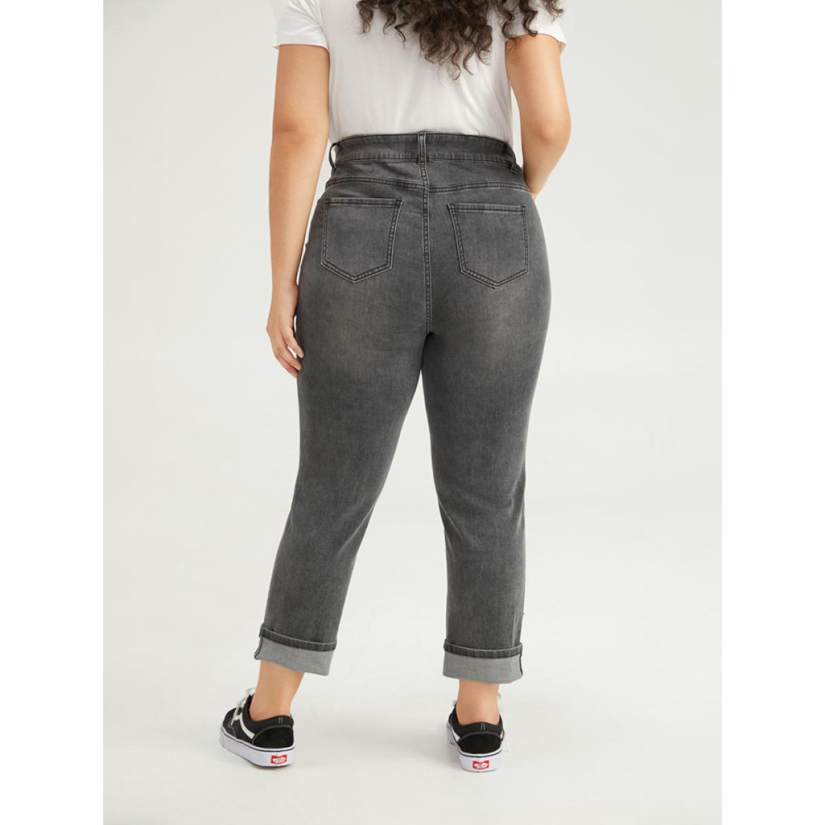 Plus Size Solid Roll Hem Black Wash Jeans Women LightGray Casual Plain Roll Hem High stretch Pocket Jeans BloomChic 22/3X